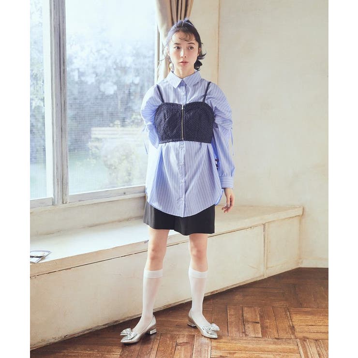 2wayショルダードロストリボンシャツ