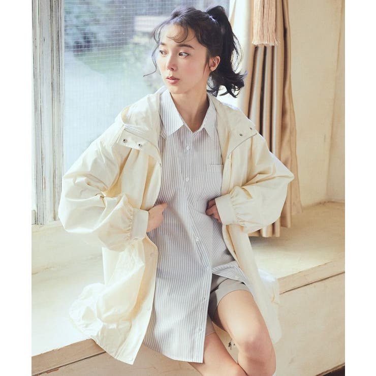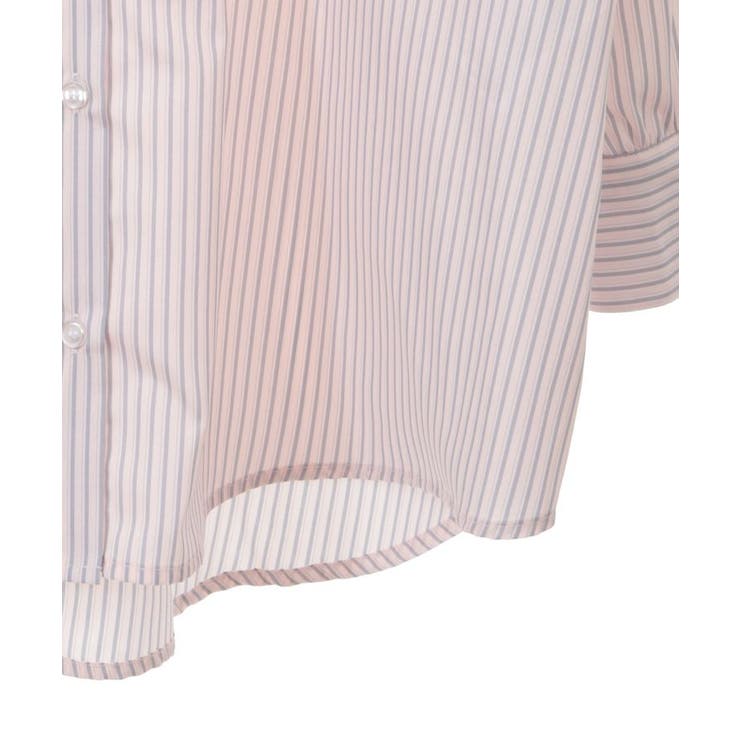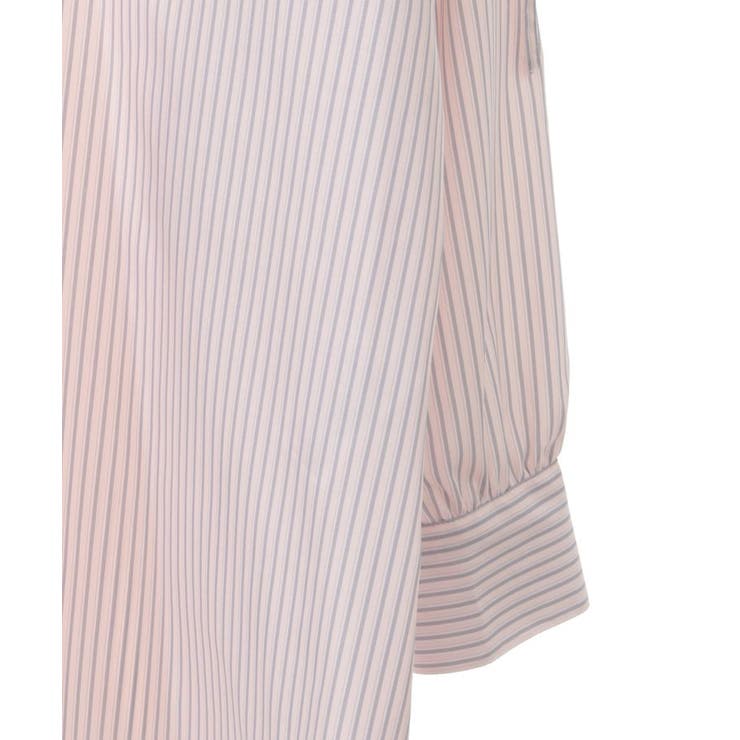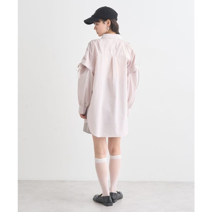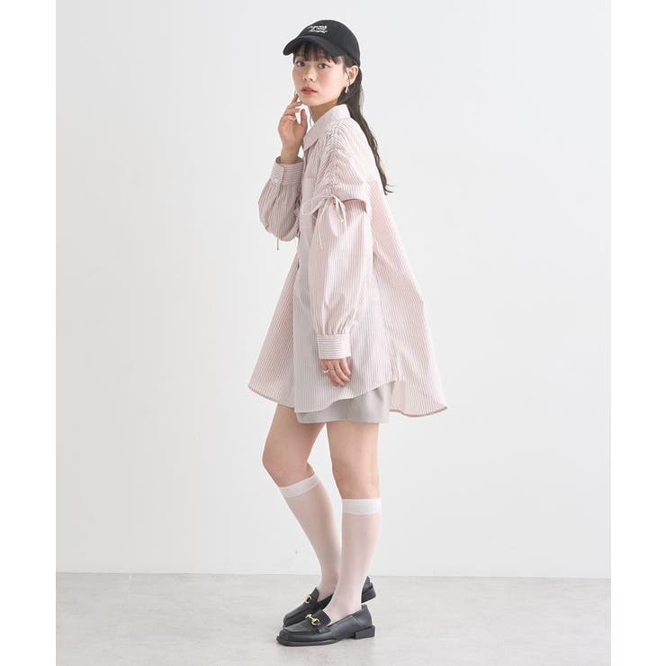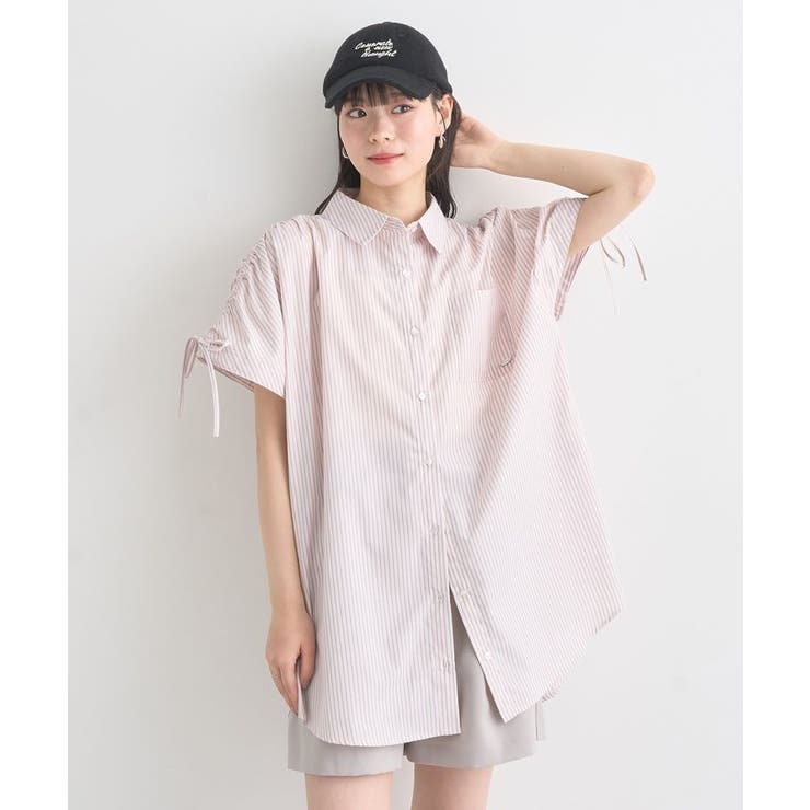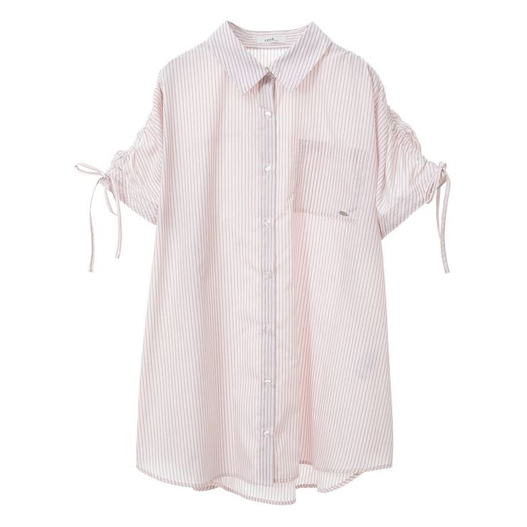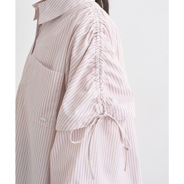 シャリ感のある爽やかなテキスタイルで仕立たデザインシャツ。カジュアルな雰囲気のストライプ柄でゆったりとしたシルエットがこなれた雰囲気です。ドロストリボンで甘さを加えたショルダーはボタン着脱で袖を外すことが可能。フレンチスリーブにアレンジが出来るユニークな2WAY仕様で着回しの幅を広げてくれるおしゃれ度の高い一枚です。透け感[ややあり]