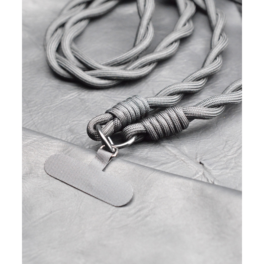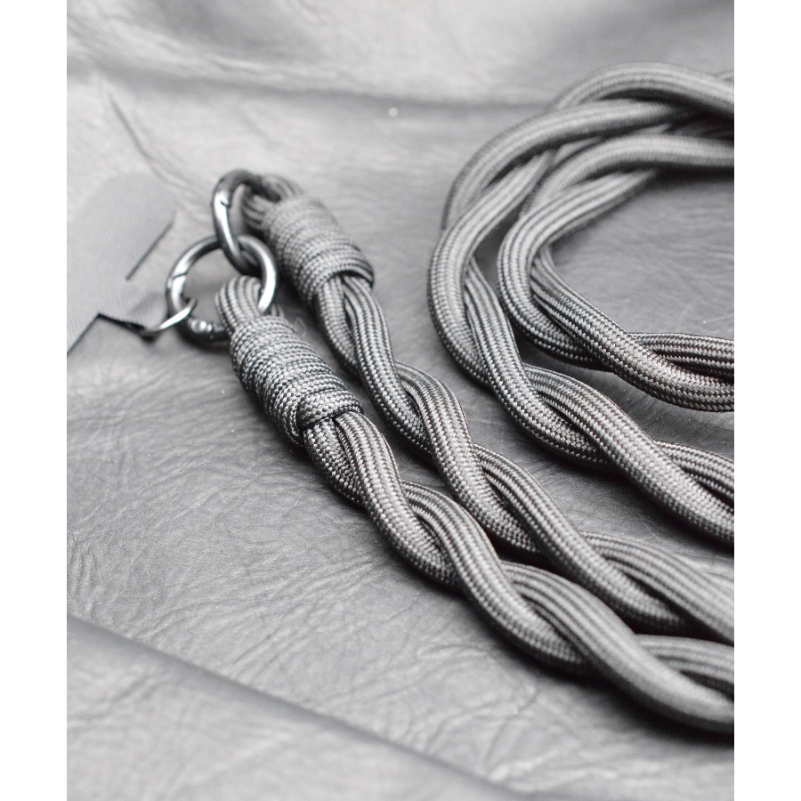 立体感のあるツイストデザインが印象的な、ロープ仕様のショルダーストラップ。ミリタリーテイストを感じさせる太めのコードは、スタイリングにタフなアクセントをプラス。スマホケースやミニバッグと合わせるだけで、こなれたムードを演出。ジェンダーレスで使えるシンプルなトーンと、デザイン性の高さが魅力の一本です。