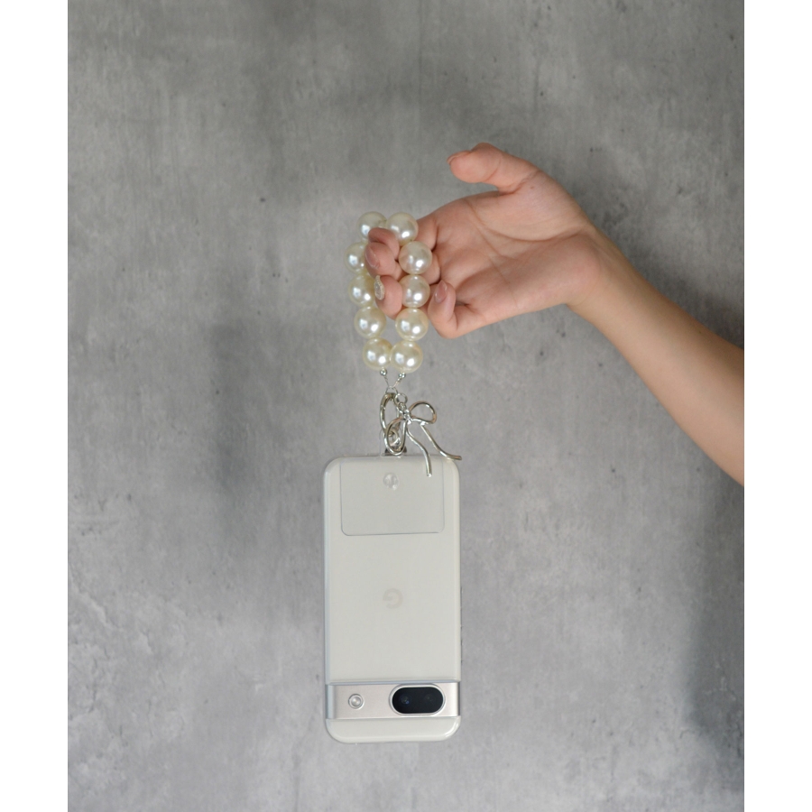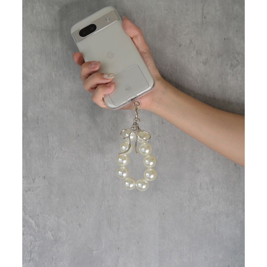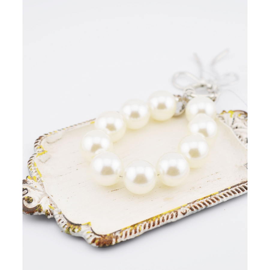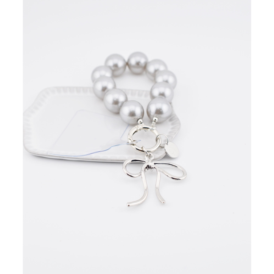 存在感のある大粒ビーズが手元を華やかに演出してくれる、バブルビーズのリストチャーム。軽やかなつけ心地ながら、コーディネートのアクセントになる主役級アイテムです。シルバーのリボンチャームがフェミニンなニュアンスをプラスし、上品さと可愛らしさを両立。カラビナ仕様なので、バッグチャームやキーリングとしても使える2WAYデザインです。