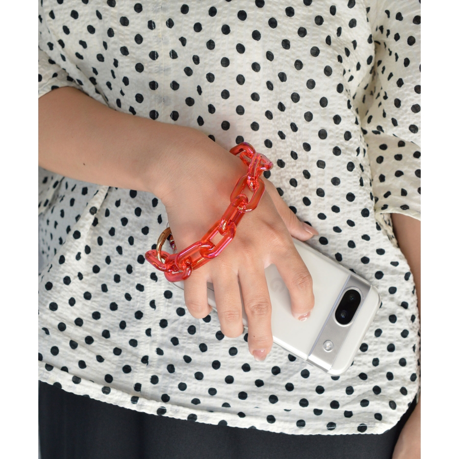 全12色展開で、スタイルや気分に合わせてチョイス可能。そのまま手首に付ければブレスレット感覚で楽しめるほか、スマホケースやポーチのチャーム、バッグのハンドルとしても活躍。軽量かつ丈夫なアクリル素材だから、普段使いにも安心。カラフルで遊び心のあるデザインは、大切な方へのプチギフトにもぴったりです。