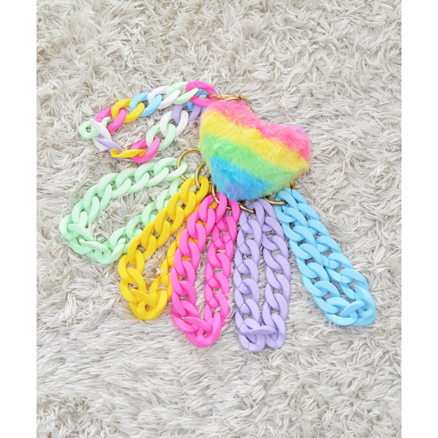 Rainbow Heart Charm & Chain Wrist Strap