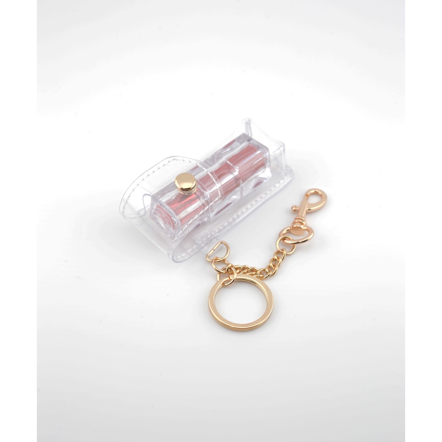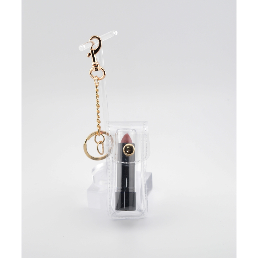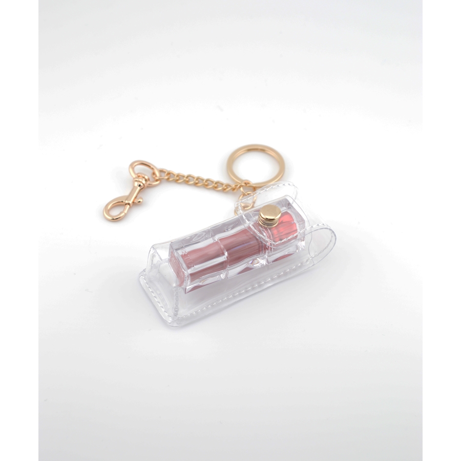 透明感のあるクリアポーチに、リップスティックをそのまま閉じ込めたような遊び心のあるミニサイズチャーム。