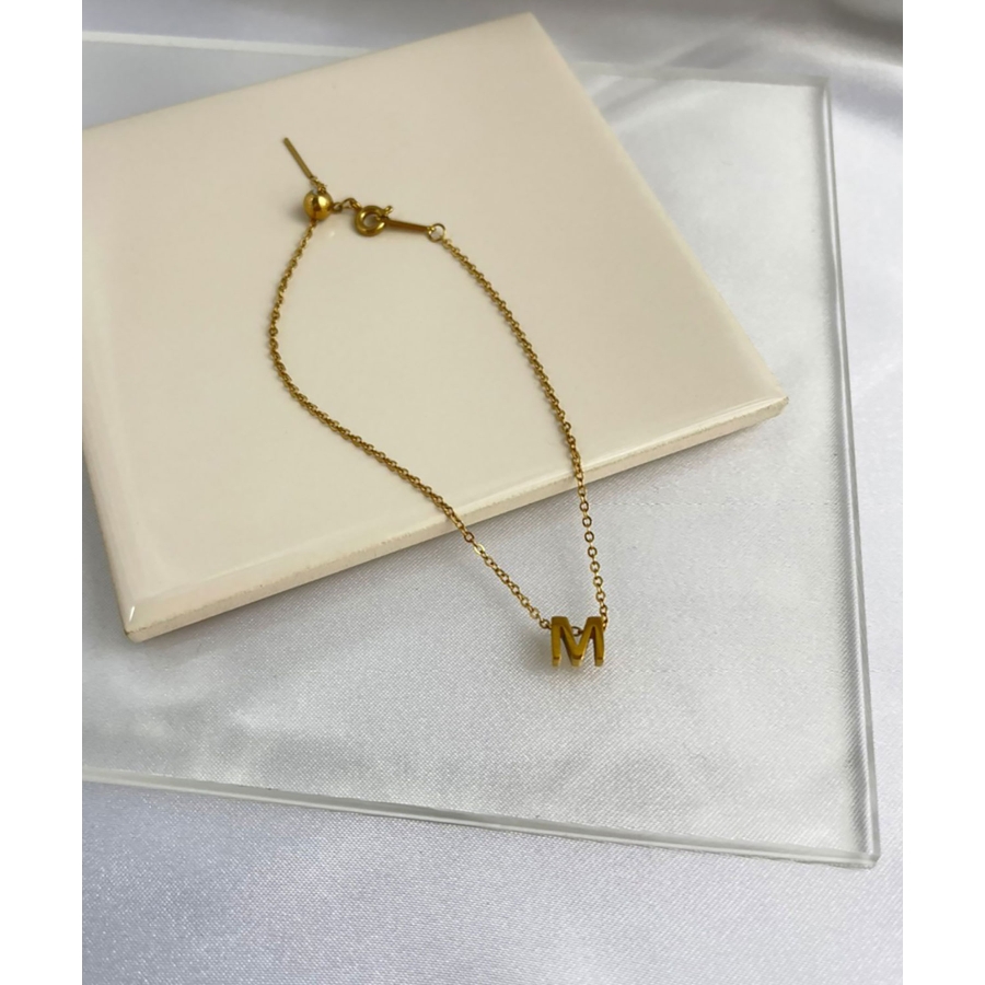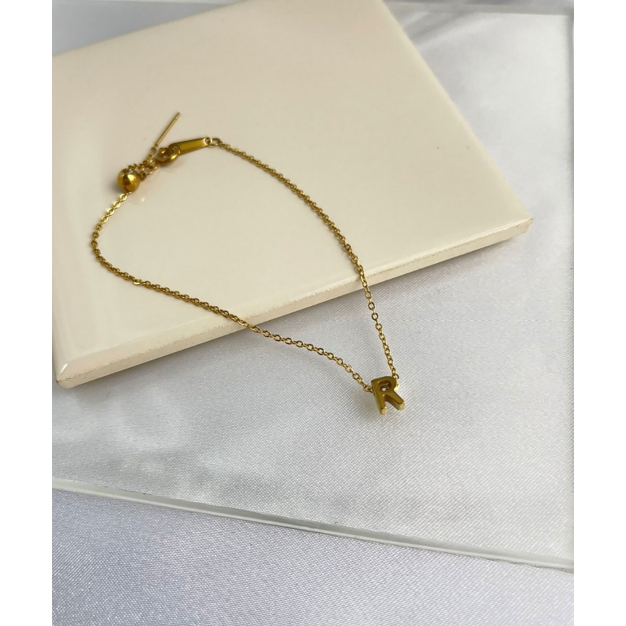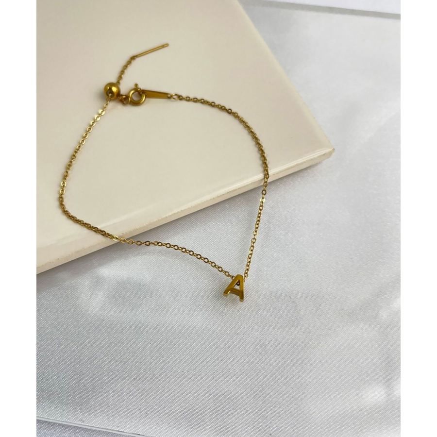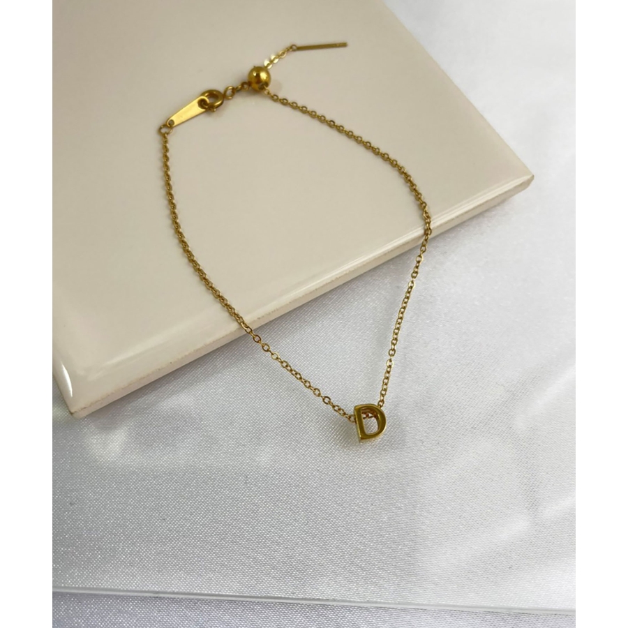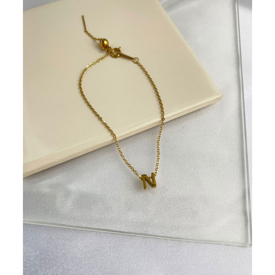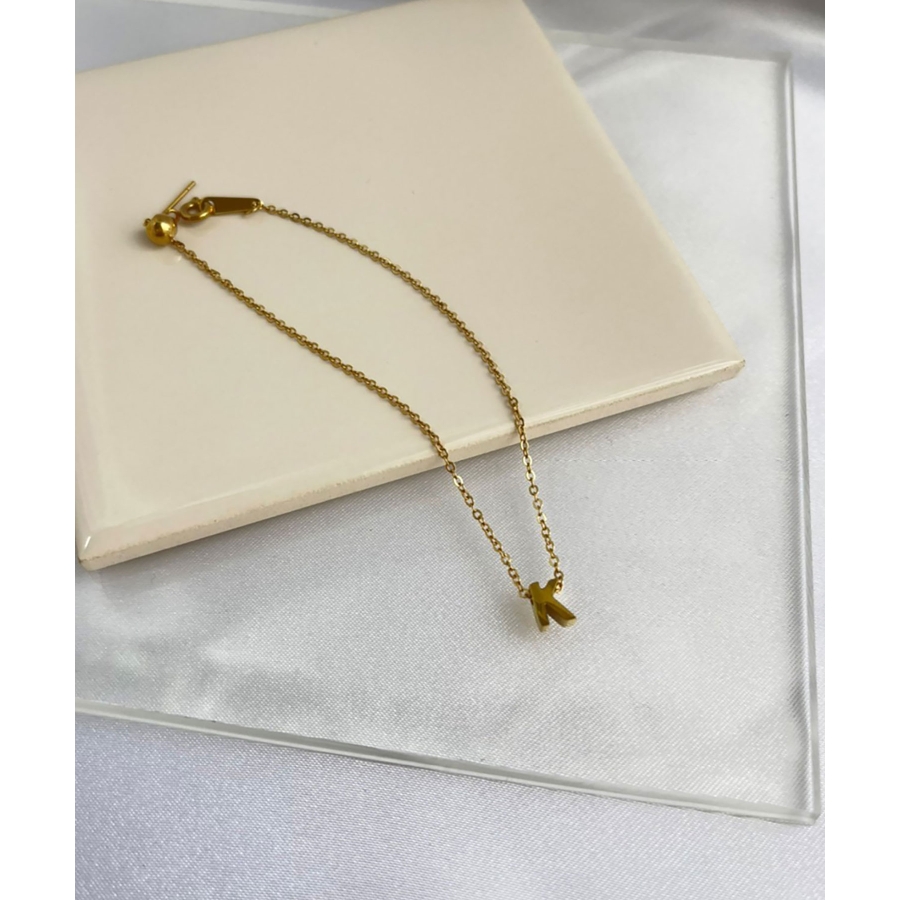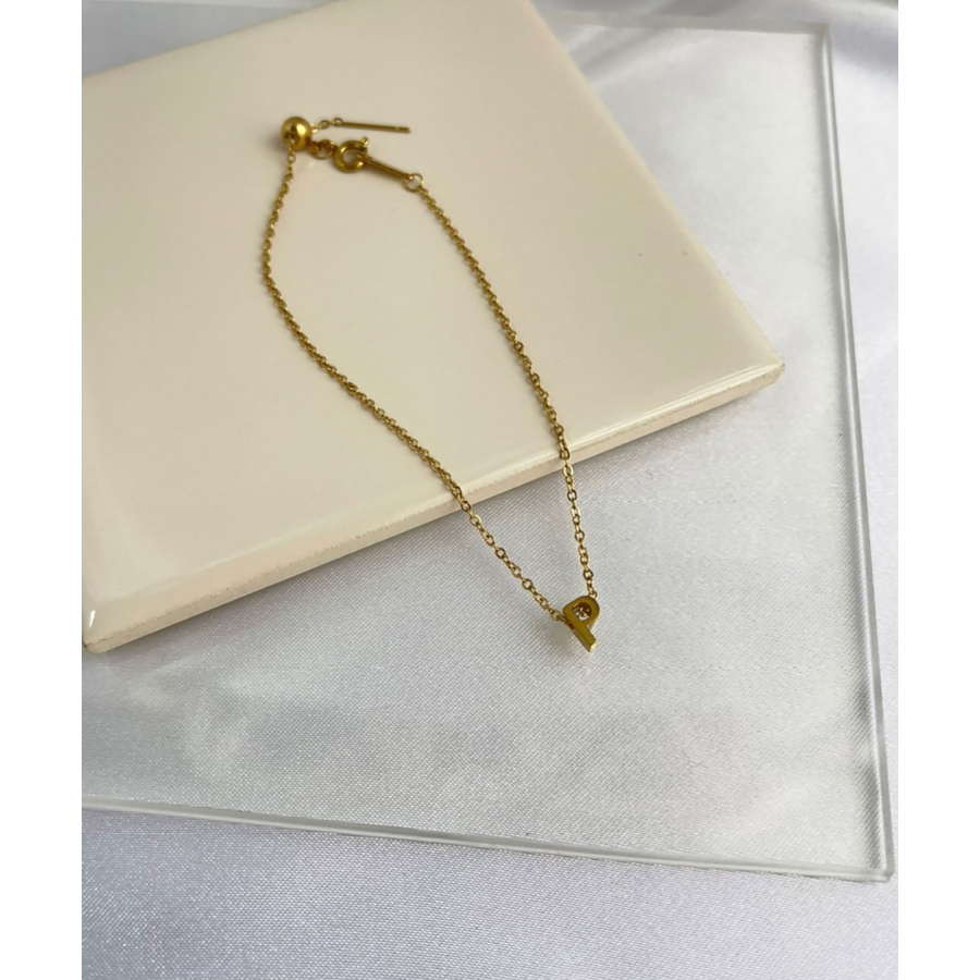 華奢なイニシャルチャームのブレスレット。ご自身のイニシャルやお好きなアルファベットでご着用いただけます。控えめサイズのチャームなので、さりげなく身に付けるのにぴったりです。