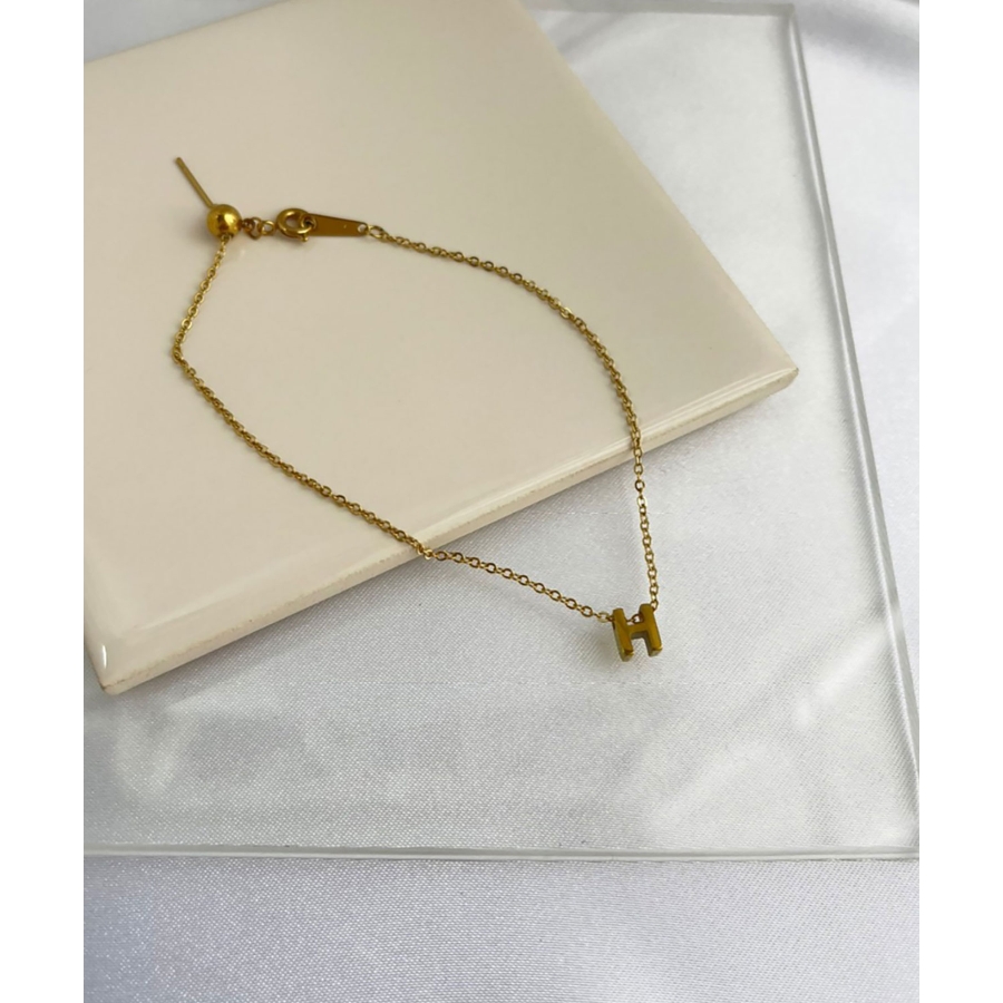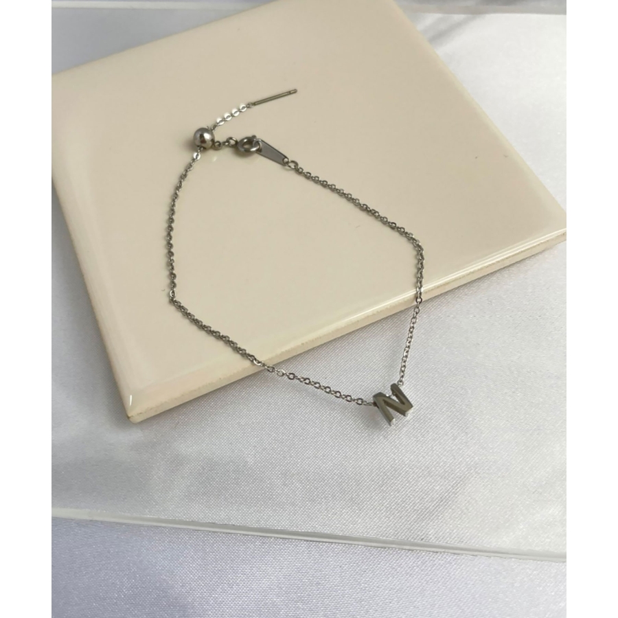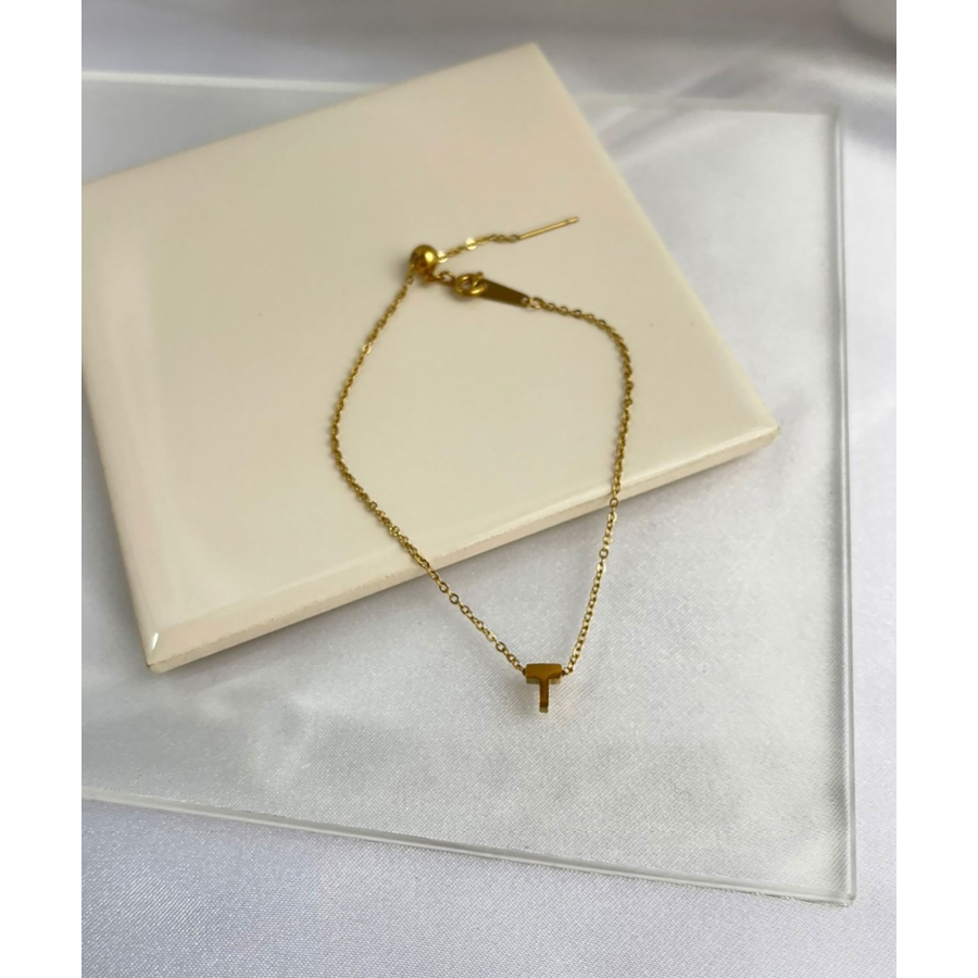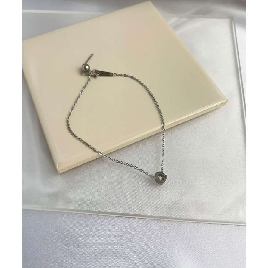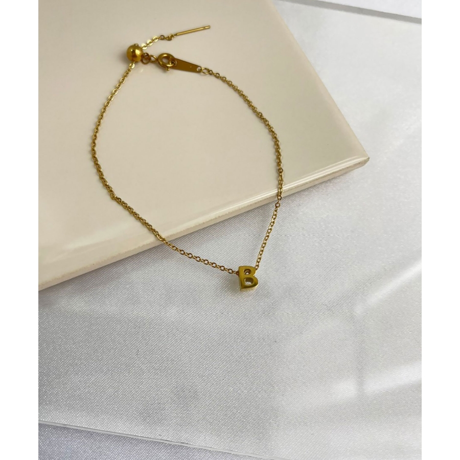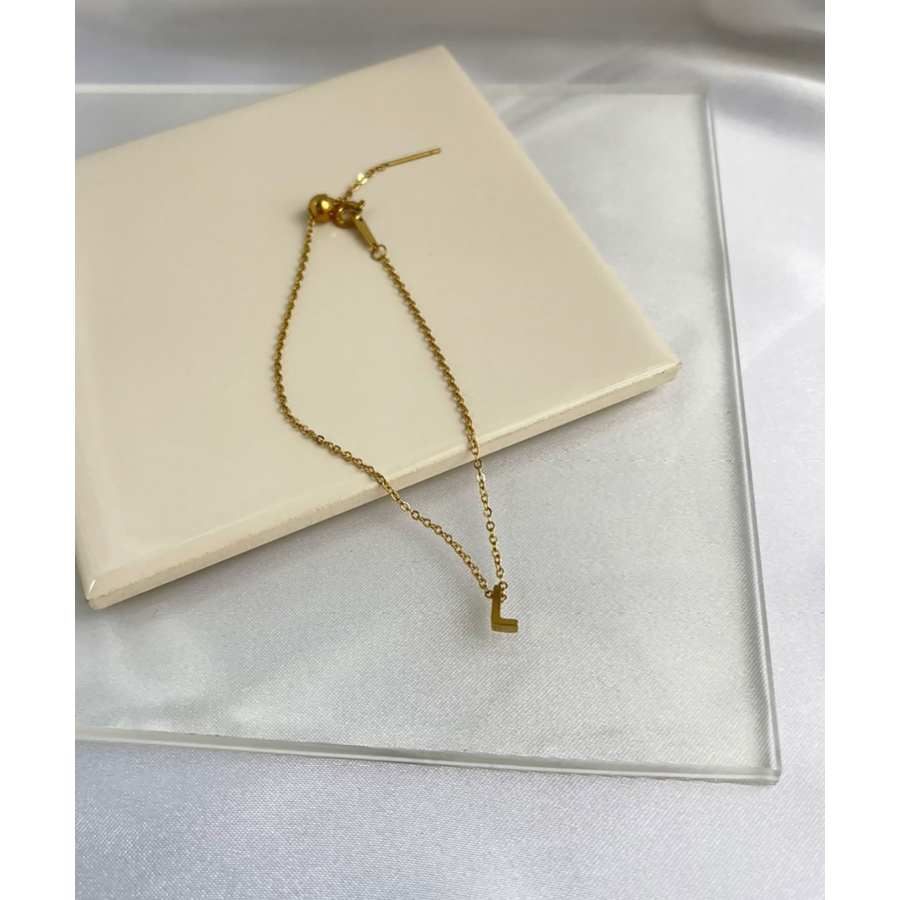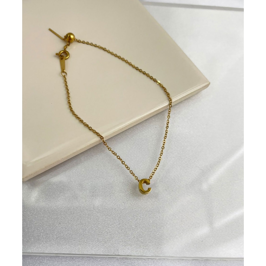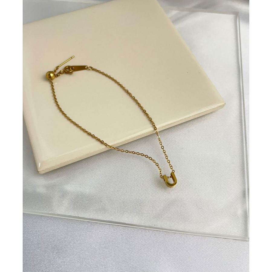 華奢なイニシャルチャームのブレスレット。ご自身のイニシャルやお好きなアルファベットでご着用いただけます。控えめサイズのチャームなので、さりげなく身に付けるのにぴったりです。