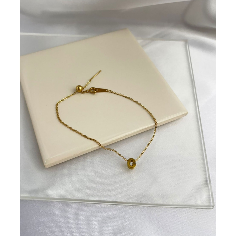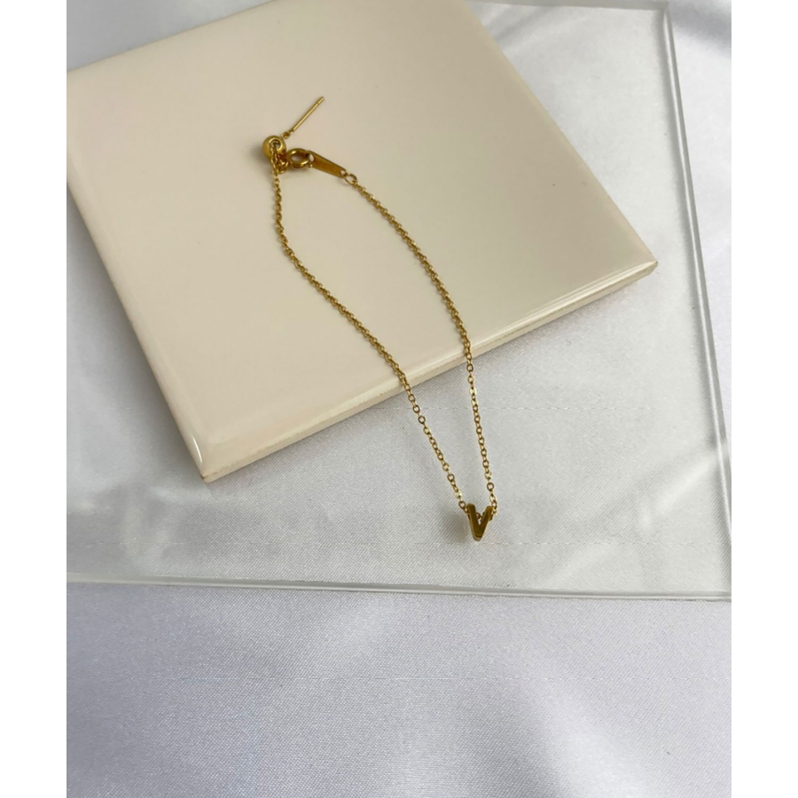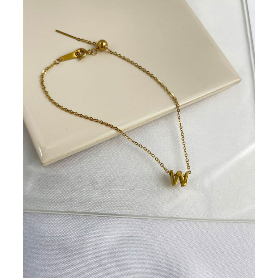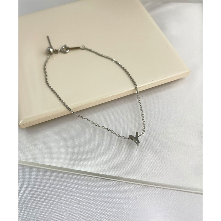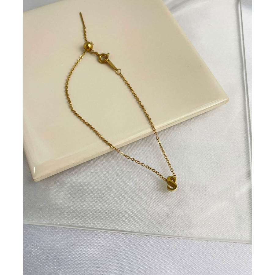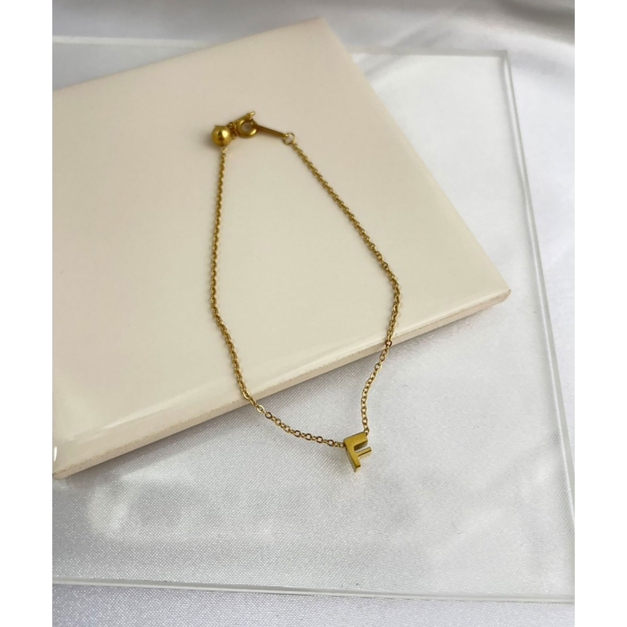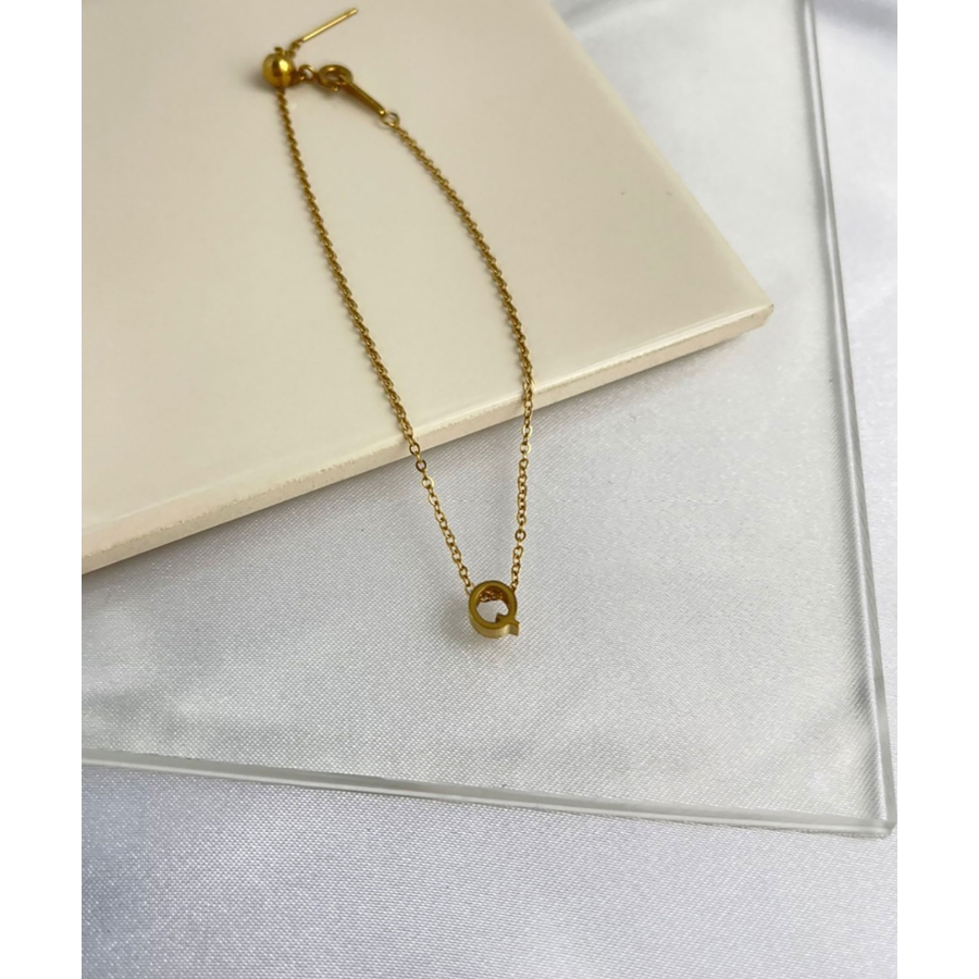 華奢なイニシャルチャームのブレスレット。ご自身のイニシャルやお好きなアルファベットでご着用いただけます。控えめサイズのチャームなので、さりげなく身に付けるのにぴったりです。
