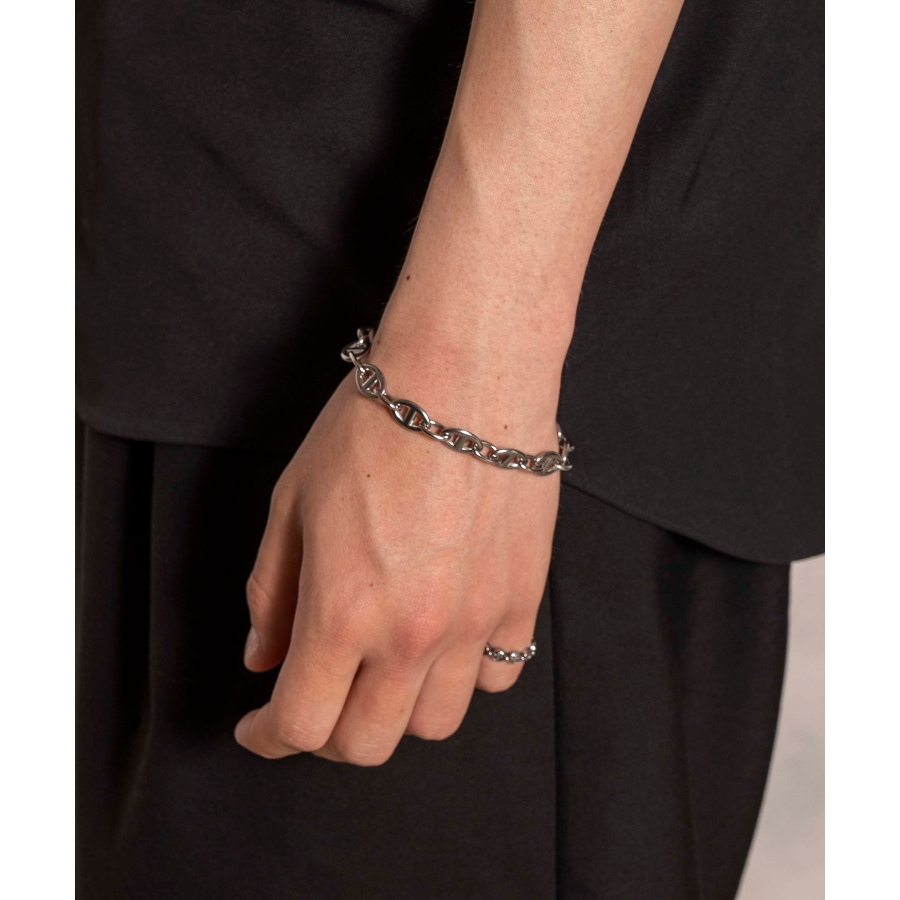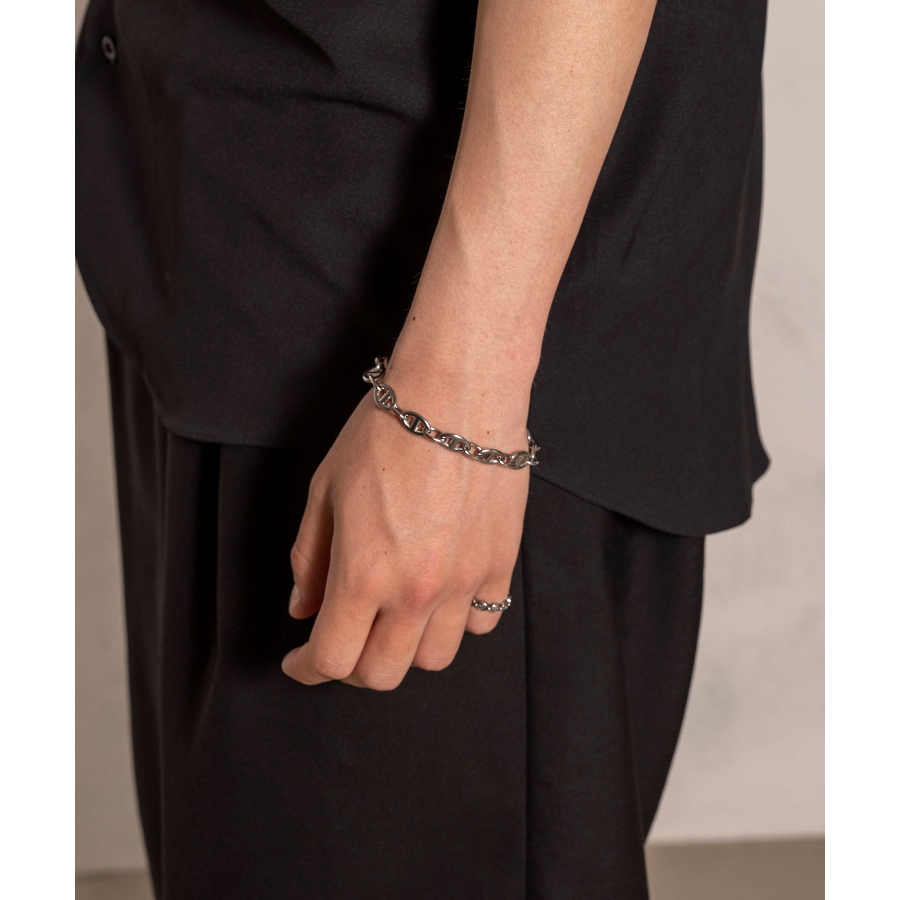 サージカルステンレス316Lで作られたブレスレット。シンプルながら絶妙にデザインされ日常遣いに最適。さりげないコーデにアクセントに加えるとセンスアップ間違えなし。カジュアルからきれいめ、韓国ファッションかつモードなコーデなど、幅広く対応してくれます。ユニセックスアイテムなので、男女の性別を問わず、さりげないペアアクセにもおすすめです。