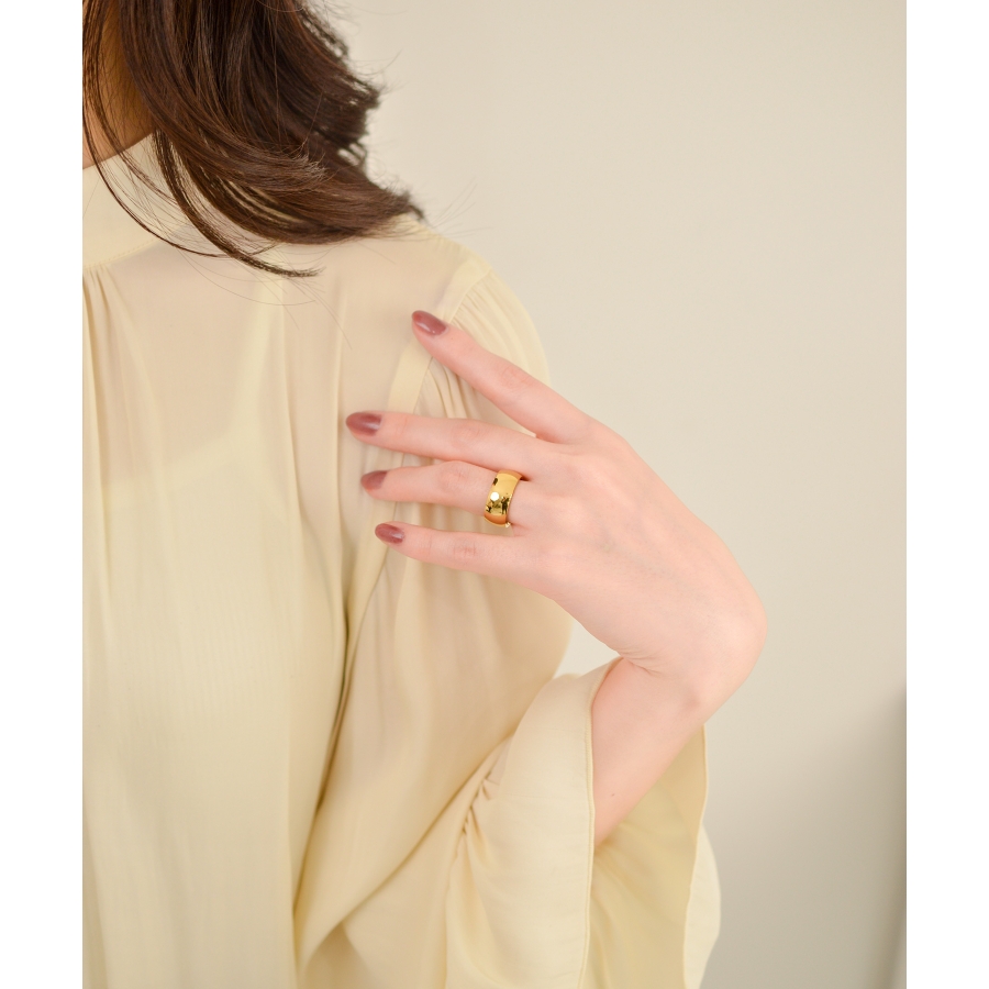 耐久性抜群のサージカルステンレス316LでつくられたChubby Plain Ring。シルバーとゴールドの2色展開で、オフィスカジュアルからアフター5の装いまで、あらゆるシーンにマッチ。