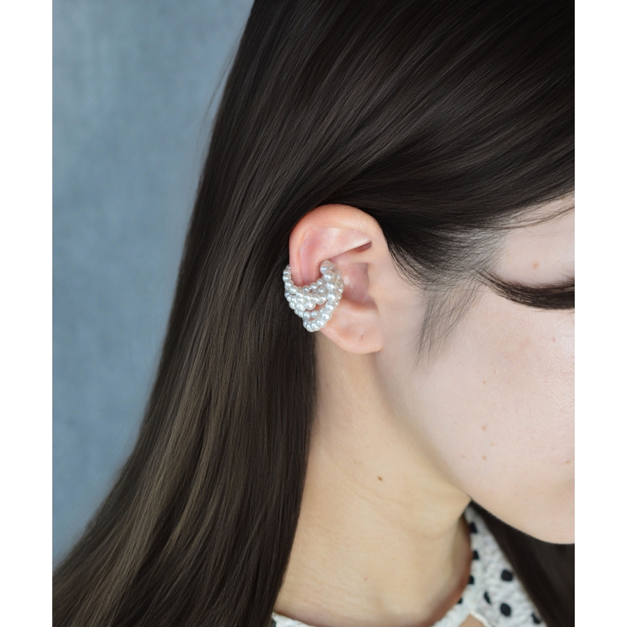耳元を包み込むようにカーブを描いたスパイラルシルエットが、印象的な立体感を演出。繊細なパールが連なり、女性らしい柔らかさとモードな個性を絶妙に両立します。どの角度から見ても美しく見えるように計算されたフォルムで、洗練された横顔に。ひとつ取り入れるだけで、いつものスタイリングに華やかなアクセントを添えてくれます。デイリーからドレスアップまで活躍する、頼れる万能アイテム。