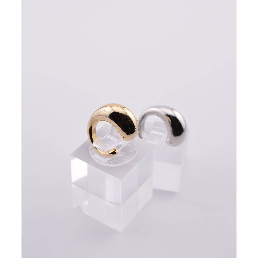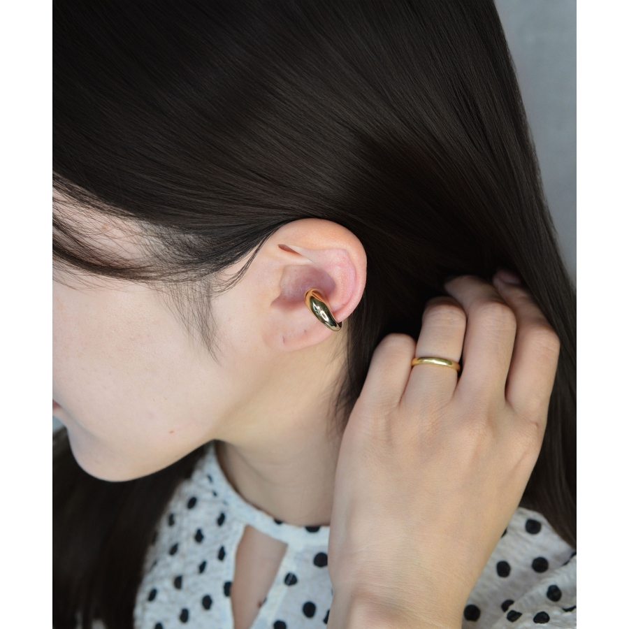 とろけるような曲線が特徴の、ぽってりシルエットが愛らしいイヤーカフ。艶やかなメタルが光を受けてきらりと輝き、耳元に存在感を添えます。柔らかな曲線美は、どんなスタイリングにもなじみつつ、ほどよいアクセントに。モードな装いにも、カジュアルな日常にもすっと溶け込む万能デザインです。ゴールドで女性らしく、シルバーで洗練された印象に仕上げて。