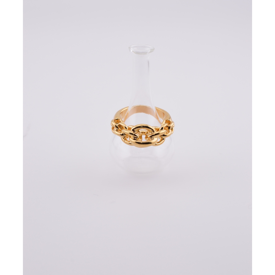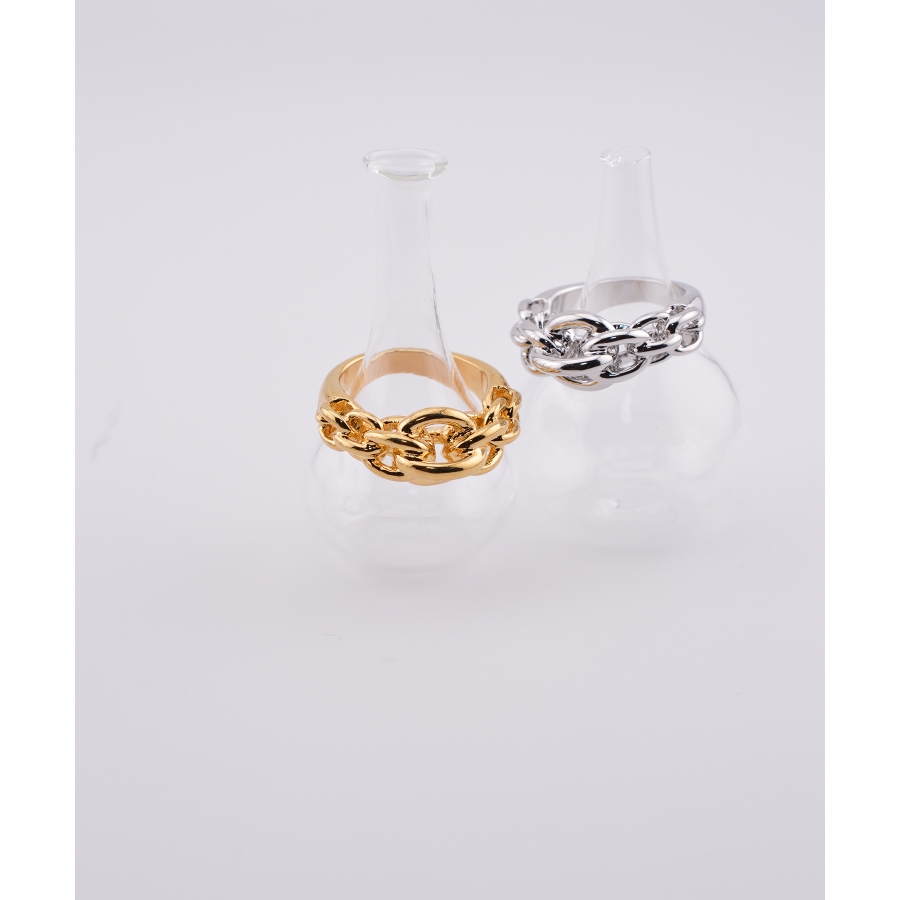 大胆で重厚感のあるチェーンモチーフが、存在感たっぷりのレイヤード風デザインリング。1点投入するだけでスタイリングにエッジが効き、手元を華やかに引き立てます。程よいボリューム感がありながらも、丸みを帯びたフォルムで指なじみも◎。カジュアルにもモードにもマッチし、デイリーからお出かけコーデまで幅広く活躍。