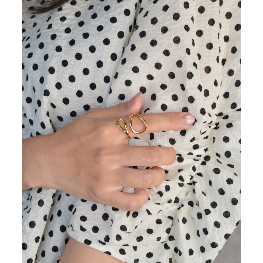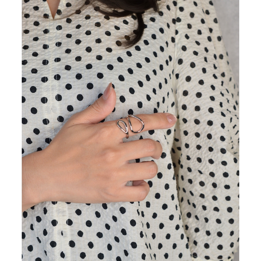 有機的なカーブラインが印象的な、ミニマルモードなメルトラインリング。シンプルでありながら、指先にアートのような存在感をプラスしてくれるデザイン。角度によって雰囲気が変わり、ワンランク上のスタイリングに。ほどよいボリューム感で単品使いはもちろん、他リングとのレイヤードにも好相性。モードにもフェミニンにも振れる、自由度の高いアクセントアイテム。