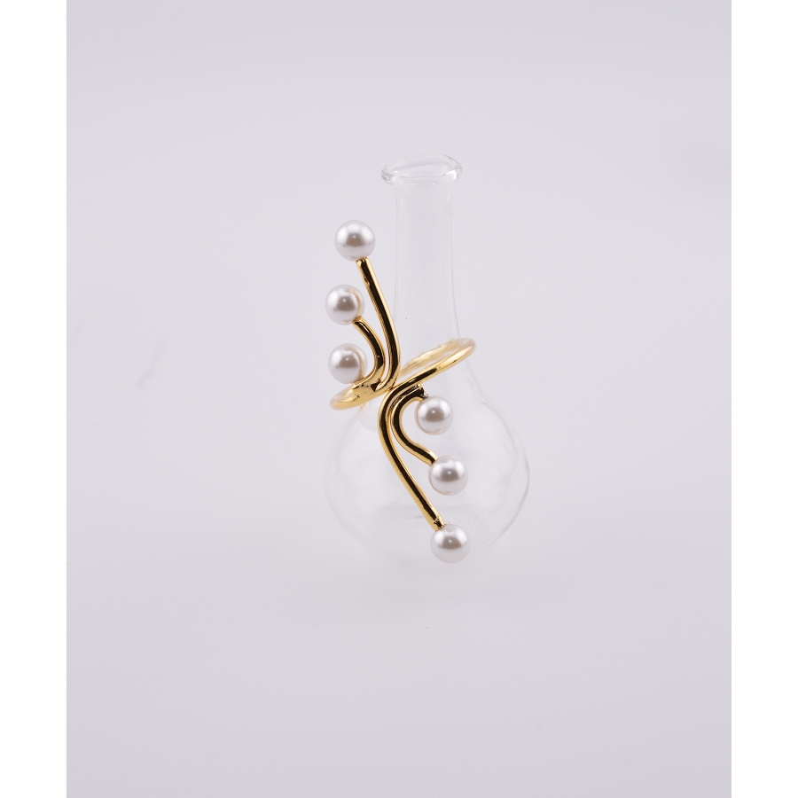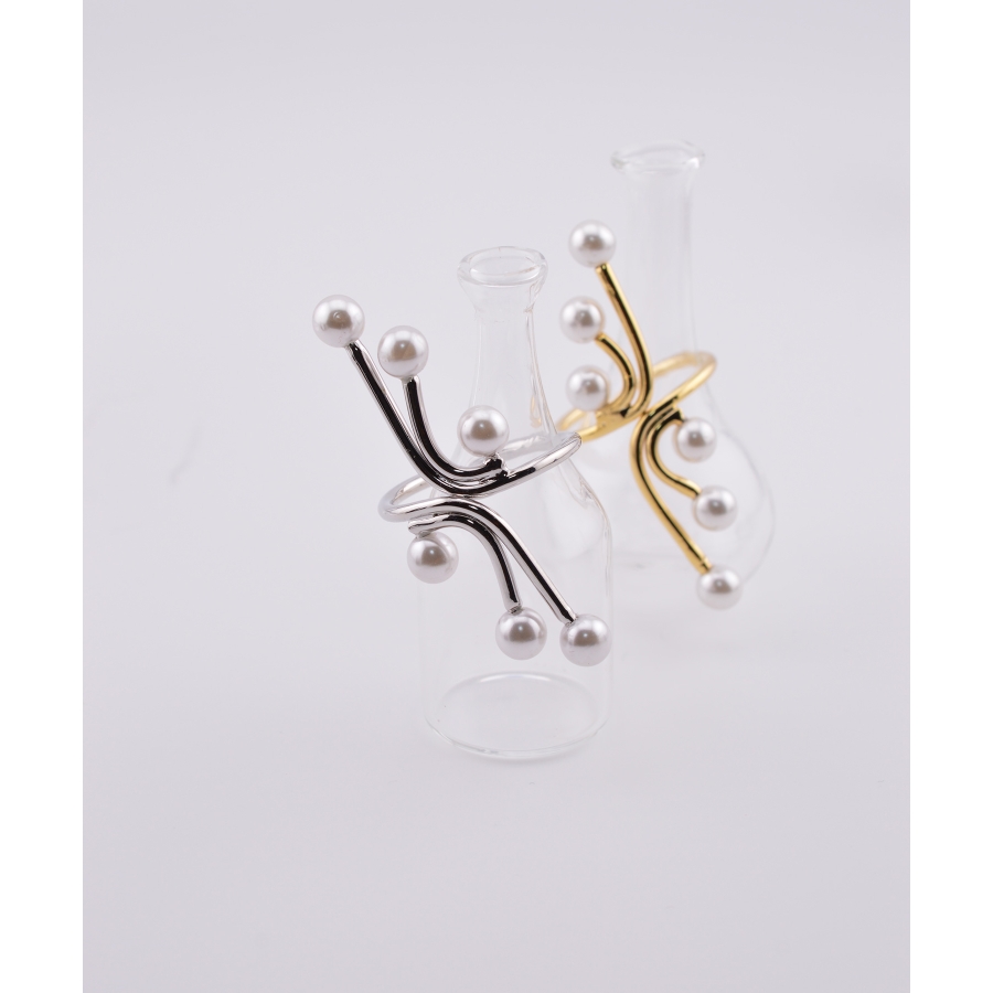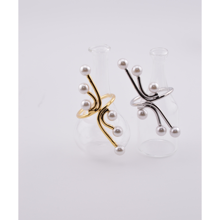 滑らかなメタルラインが指先を包み込むように巻きつく、印象的なラップデザインリング。センターに配されたパールモチーフが上品なアクセントを添え、1点投入で洗練された手元に。ゴールド・シルバーの2色展開で、気分やスタイルに合わせて選べるのも魅力。存在感がありながらも抜け感のあるデザインで、デイリーにもドレスアップにもおすすめのアイテムです。