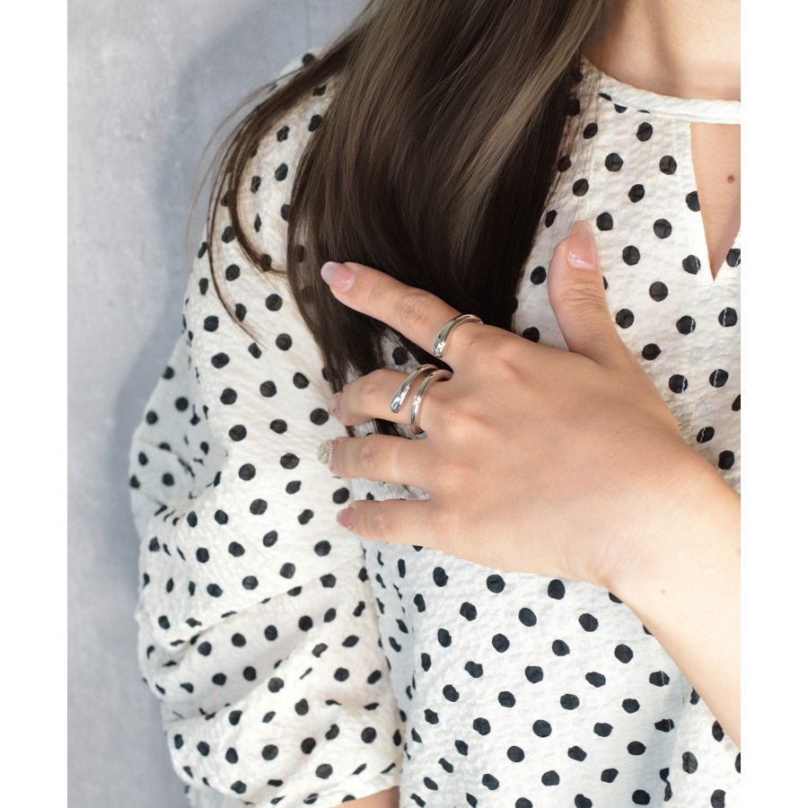 まるで2つのリングを重ねづけしているような、トリックアートのようなデザイン。滑らかなカーブと立体フォルムが指元に独特の陰影を生み、シンプルながらも印象的なアクセントに。ボリュームがありながらも抜け感のある造形で、スタイリングの邪魔をせず、指先を洗練されたムードに。「重ねづけしてるの?」と聞かれそうな、ちょっぴりイタズラ心のあるリングです。普段使いからオケージョンまで、幅広く活躍するアイテム。