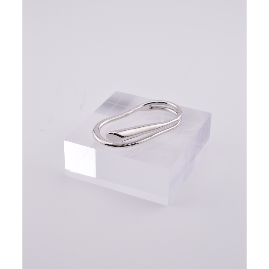 フラットな板状バーと、緩やかなウェーブラインを幾何学的に融合。2本の指をまたぐ構造で、手元に静かなインパクトを宿します。無機質でミニマルな造形が、どこか彫刻的な佇まいを醸し出し、洗練された指先を演出。華美な装飾を排したことで、造形美が際立ちます。角度によって表情が変わる立体構造も、このリングならではの魅力です。