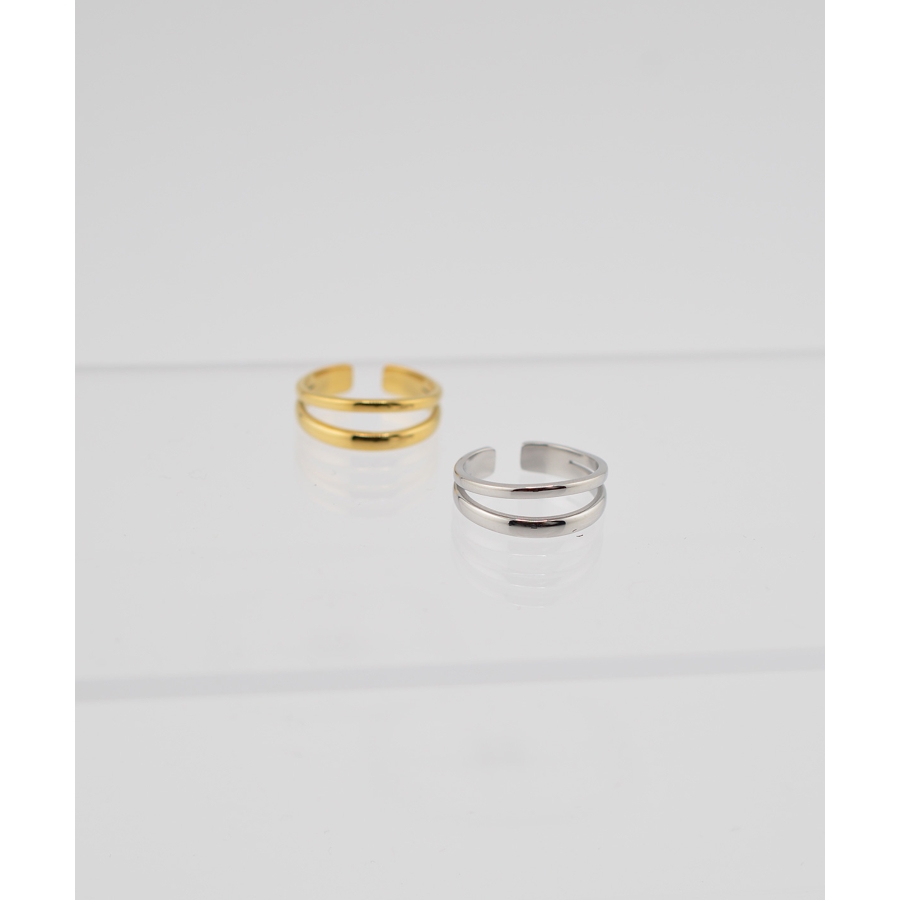 シンプルながらも存在感を放つダブルラインデザインのオープンリング。サージカルステンレス316Lを使用し、アレルギー対応で肌に優しい高品質アイテムです。洗練されたミニマルなデザインが、手元をスタイリッシュに演出。サイズ調整が可能なオープンタイプで、ユニセックスにお使いいただけます。