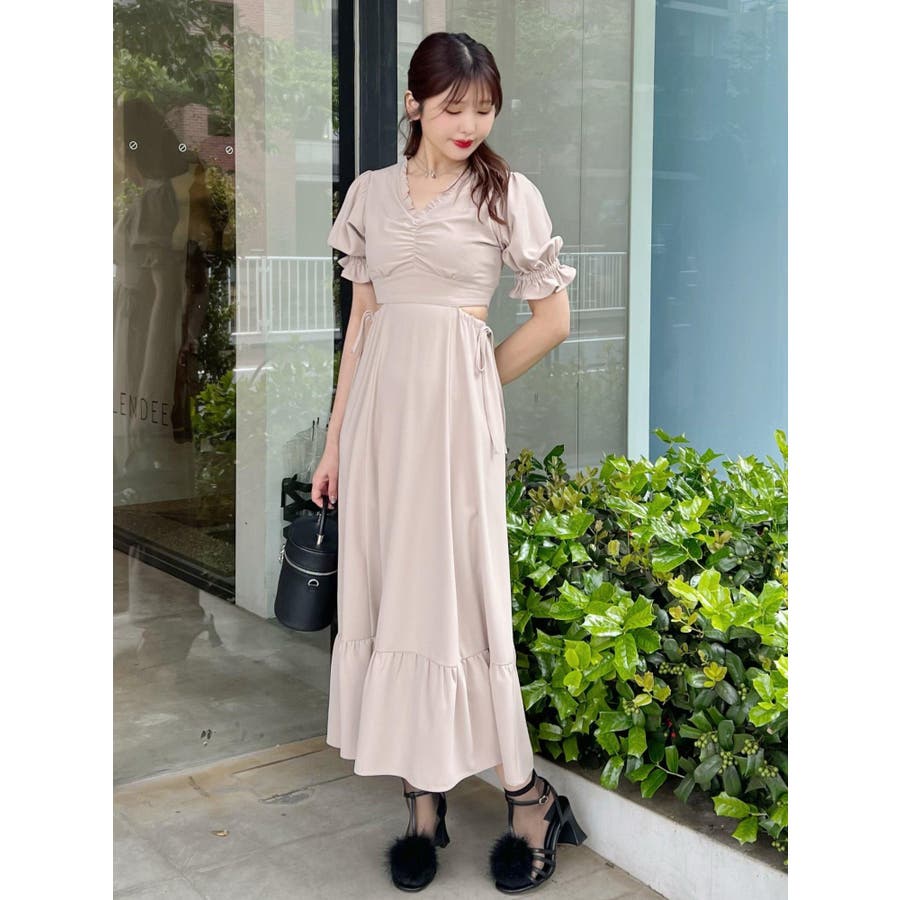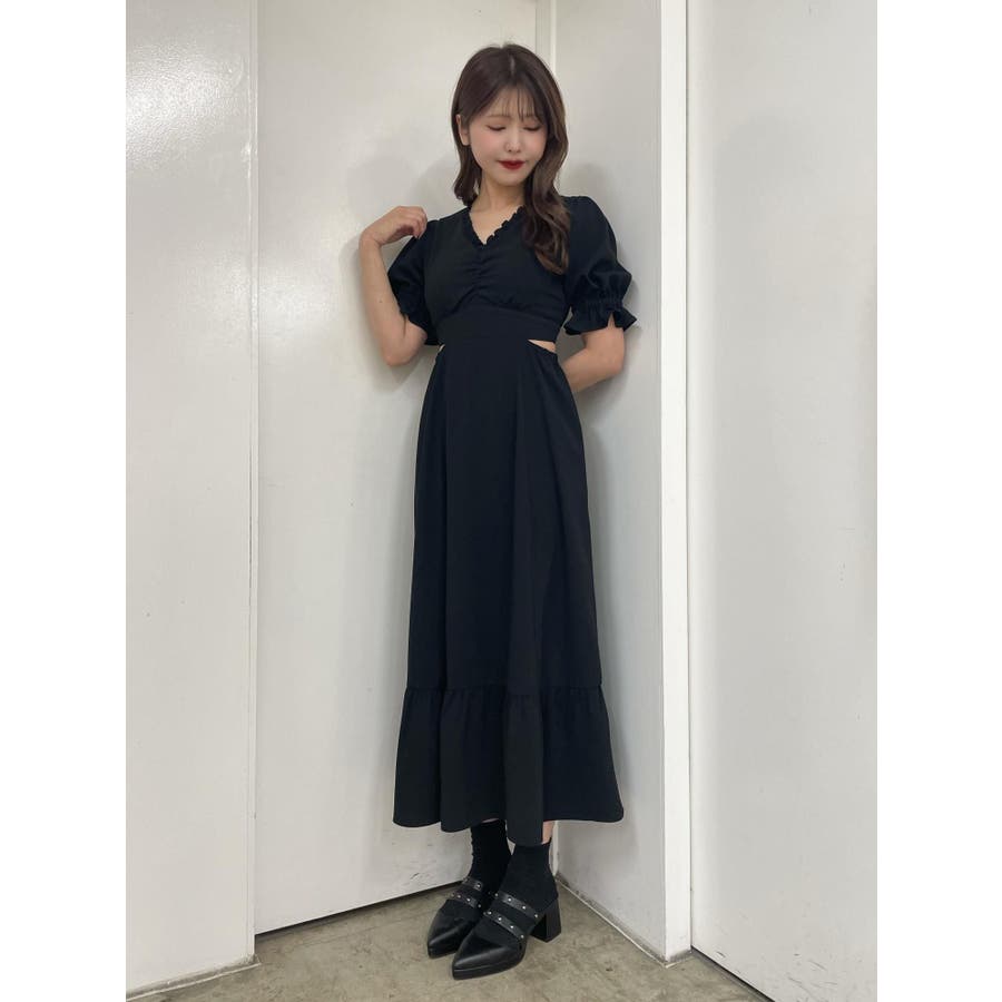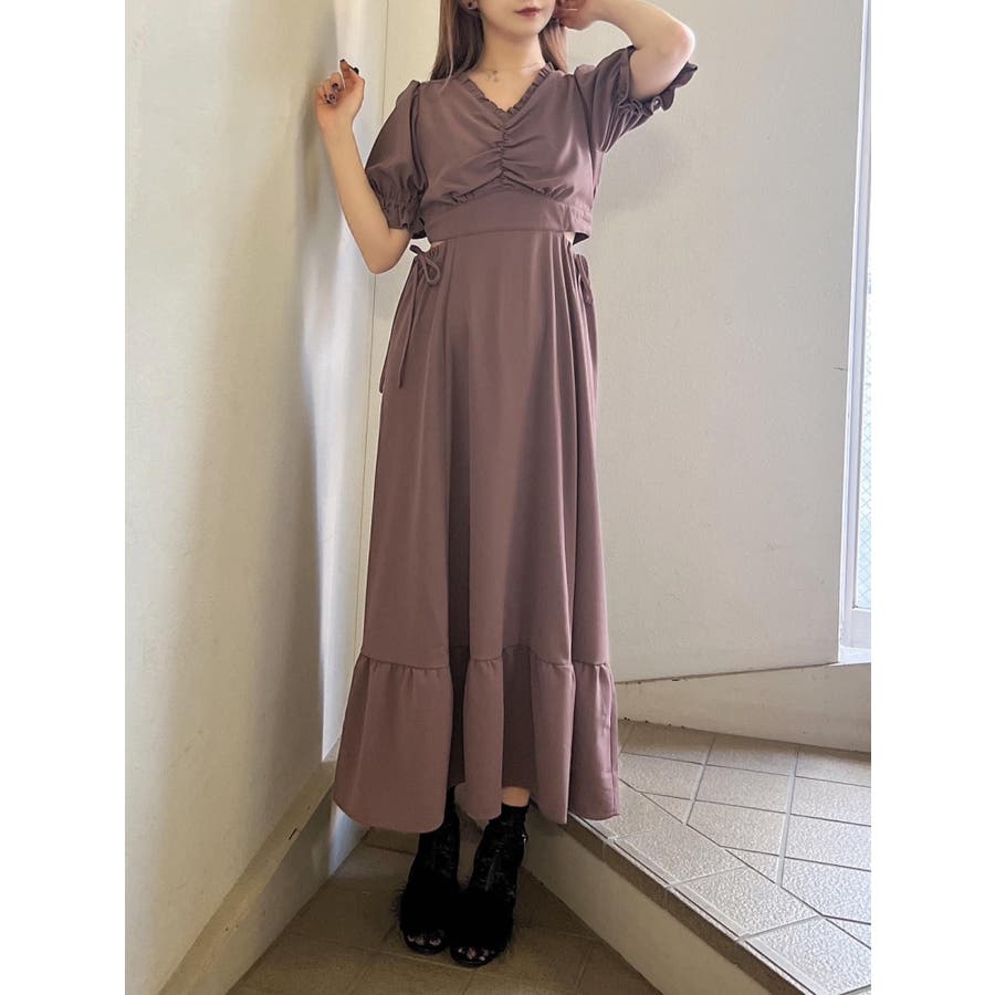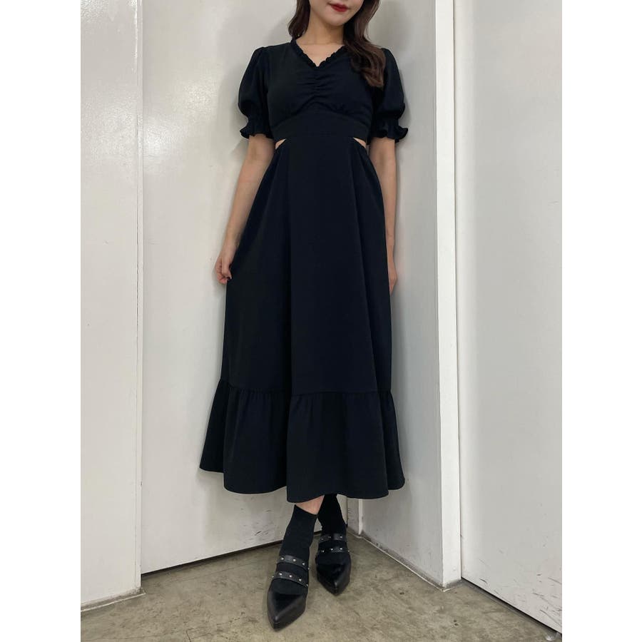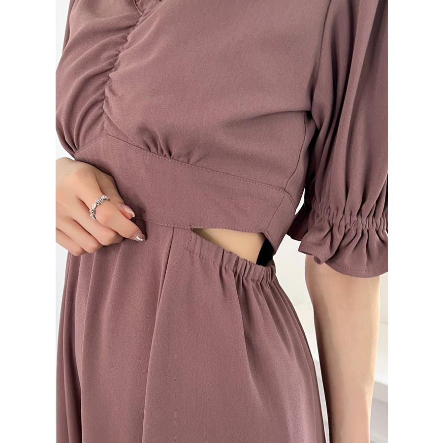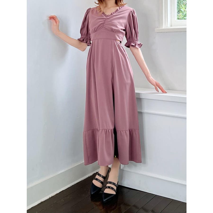 Vネックカットアウトロングワンピース