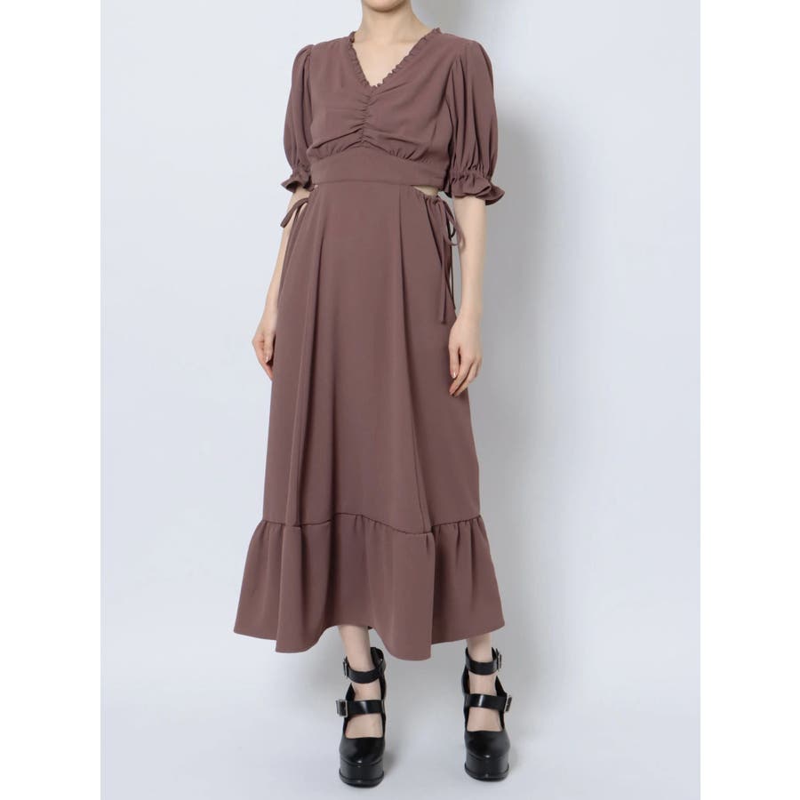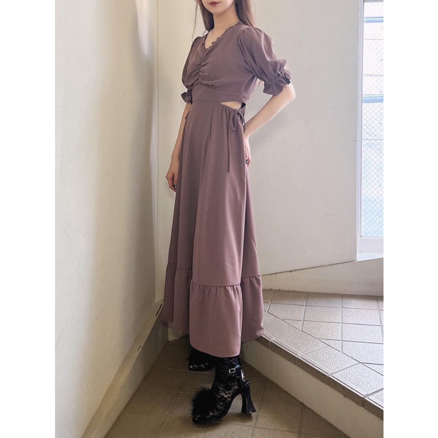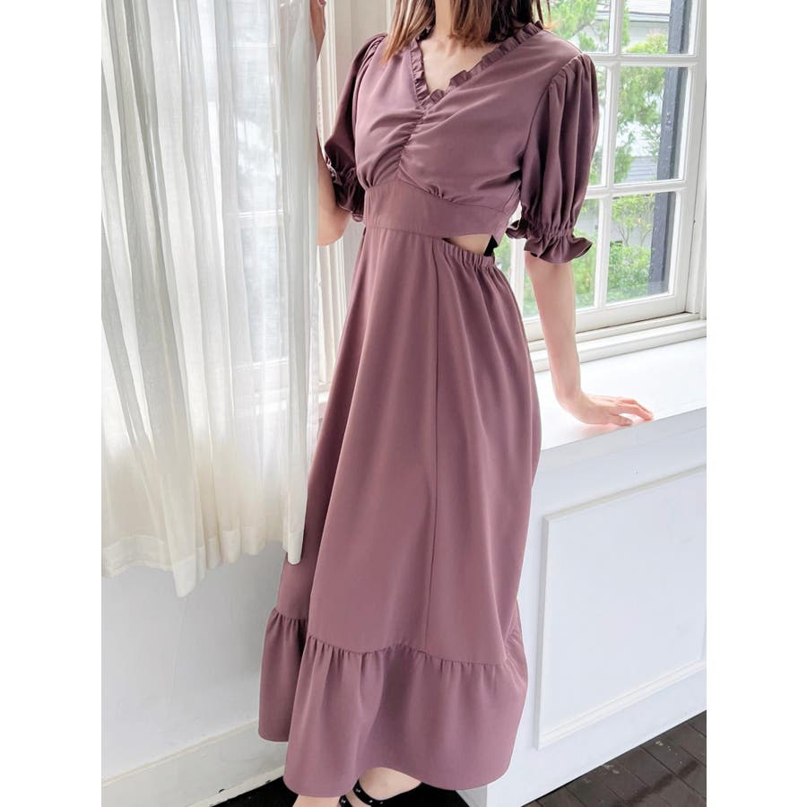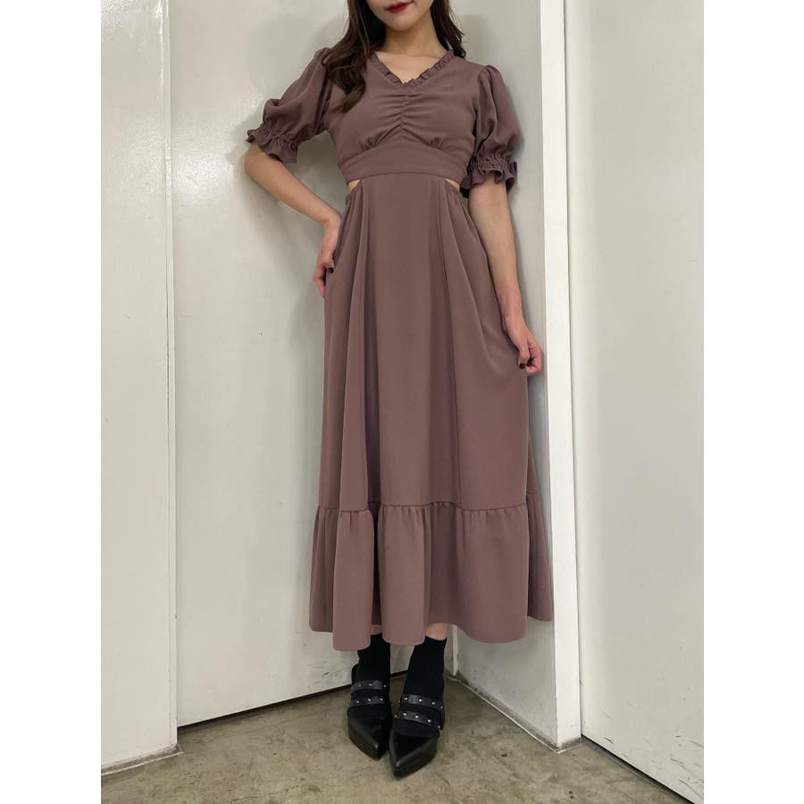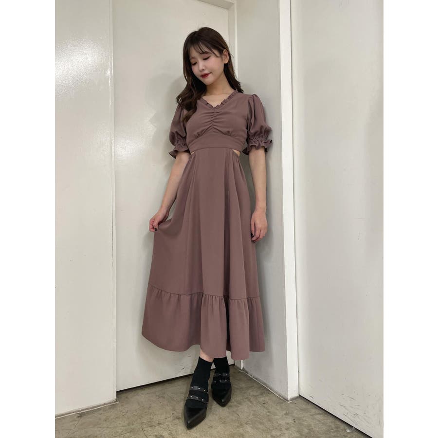 Vネックカットアウトロングワンピース