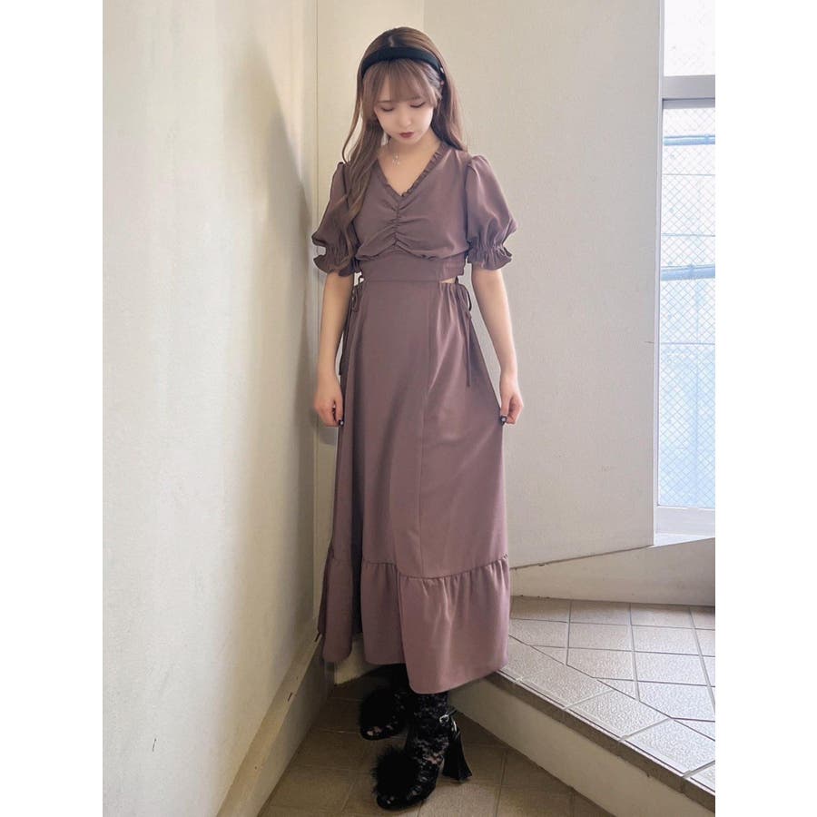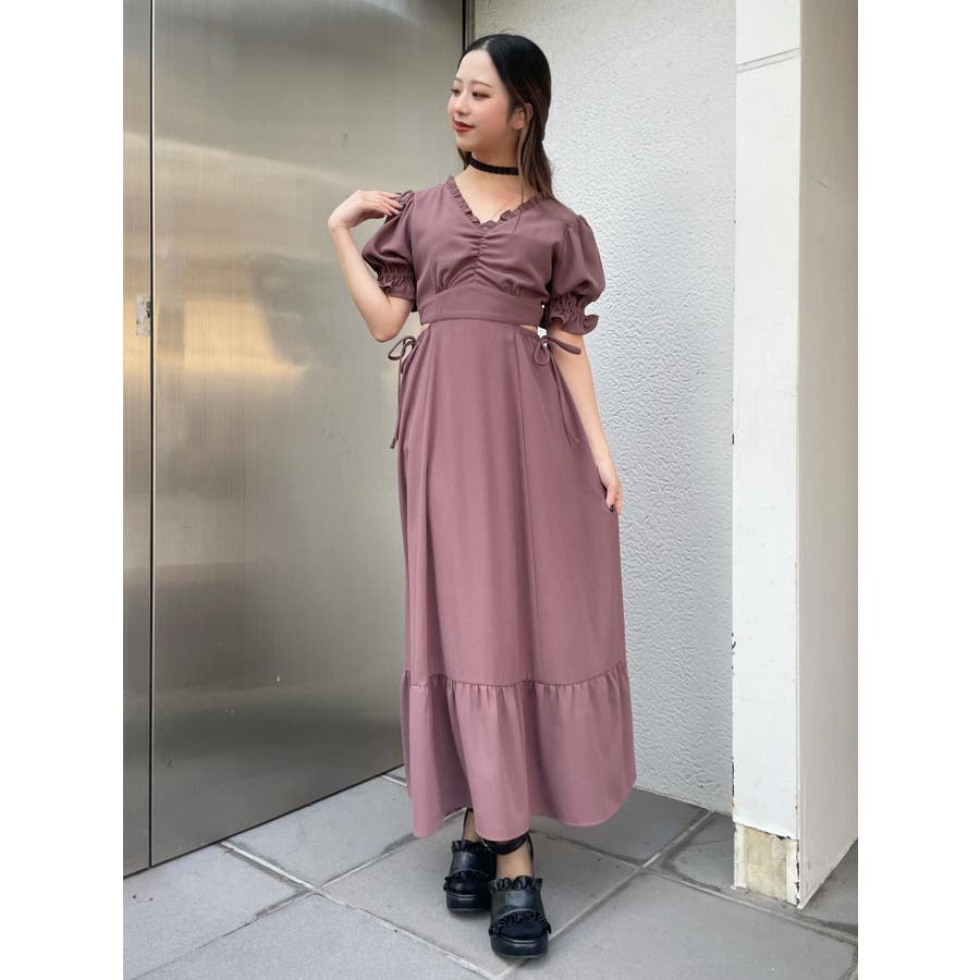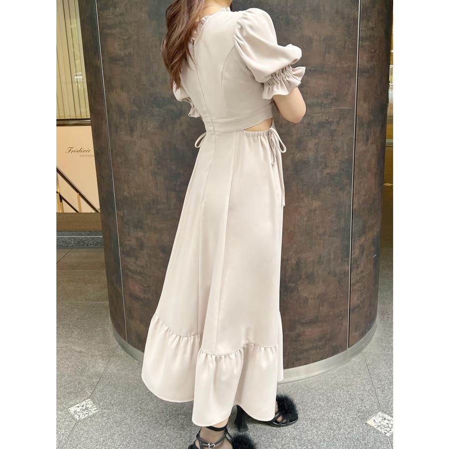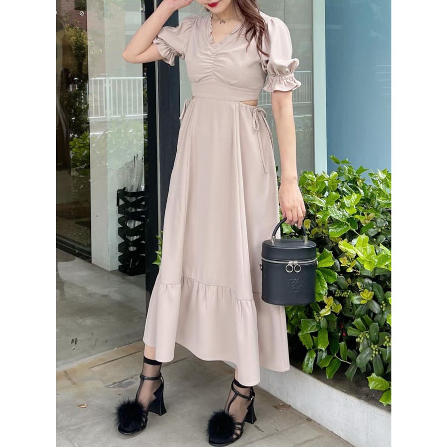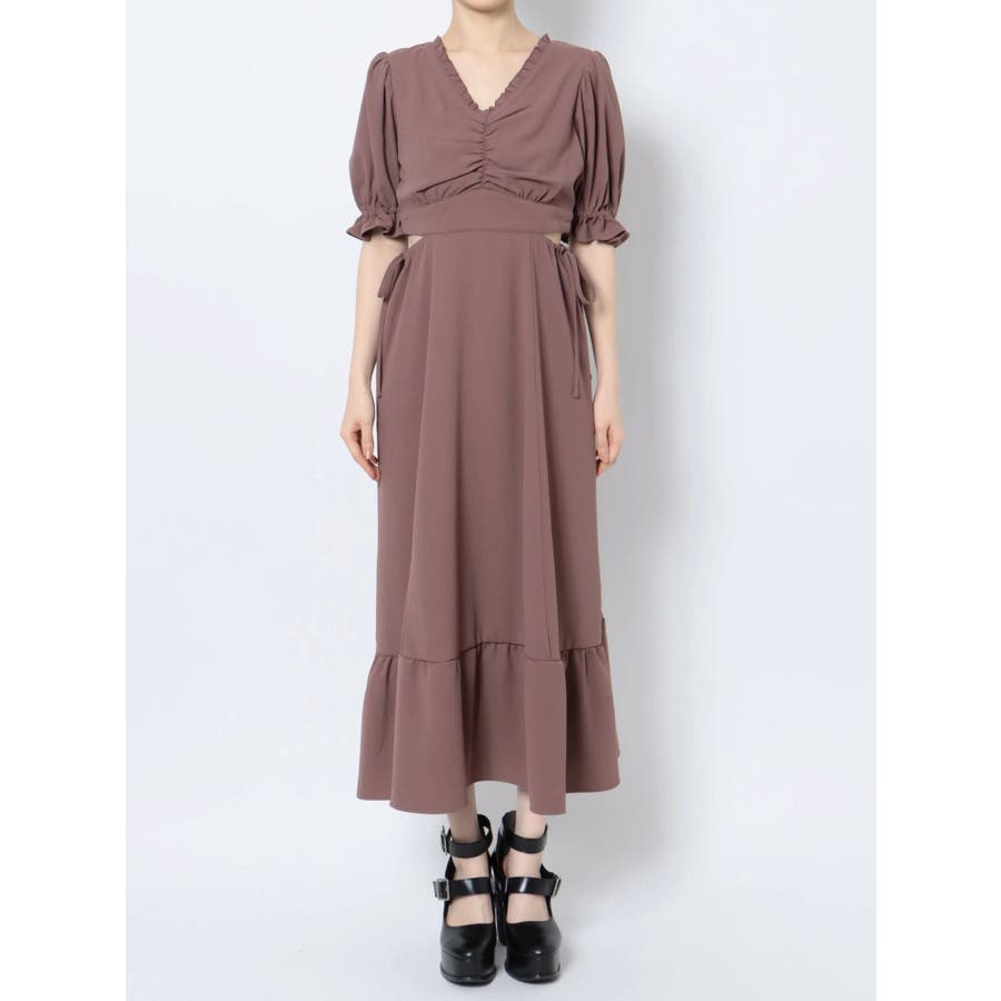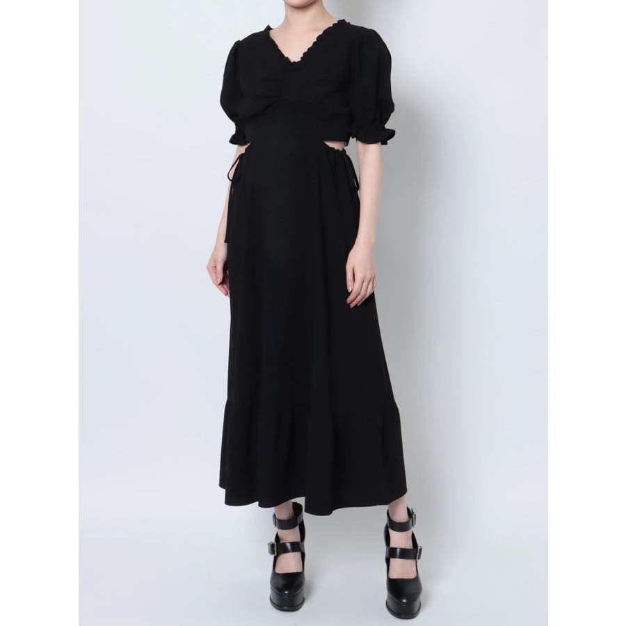 Vネックカットアウトロングワンピース
