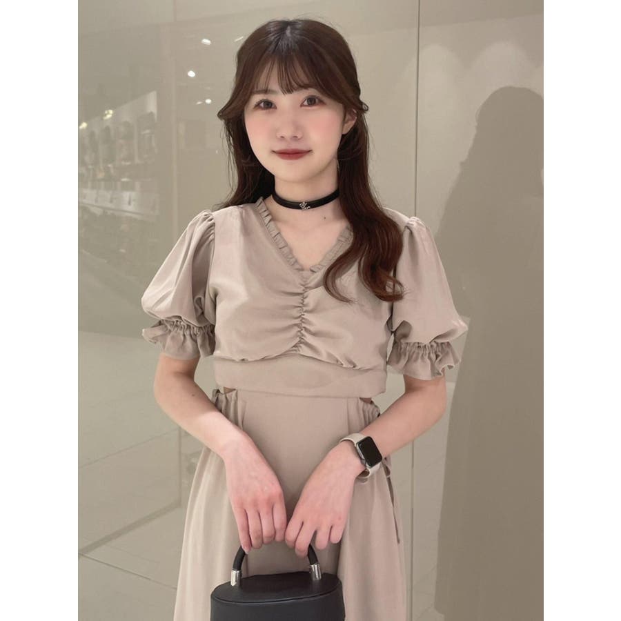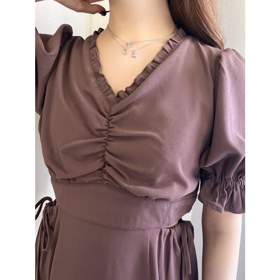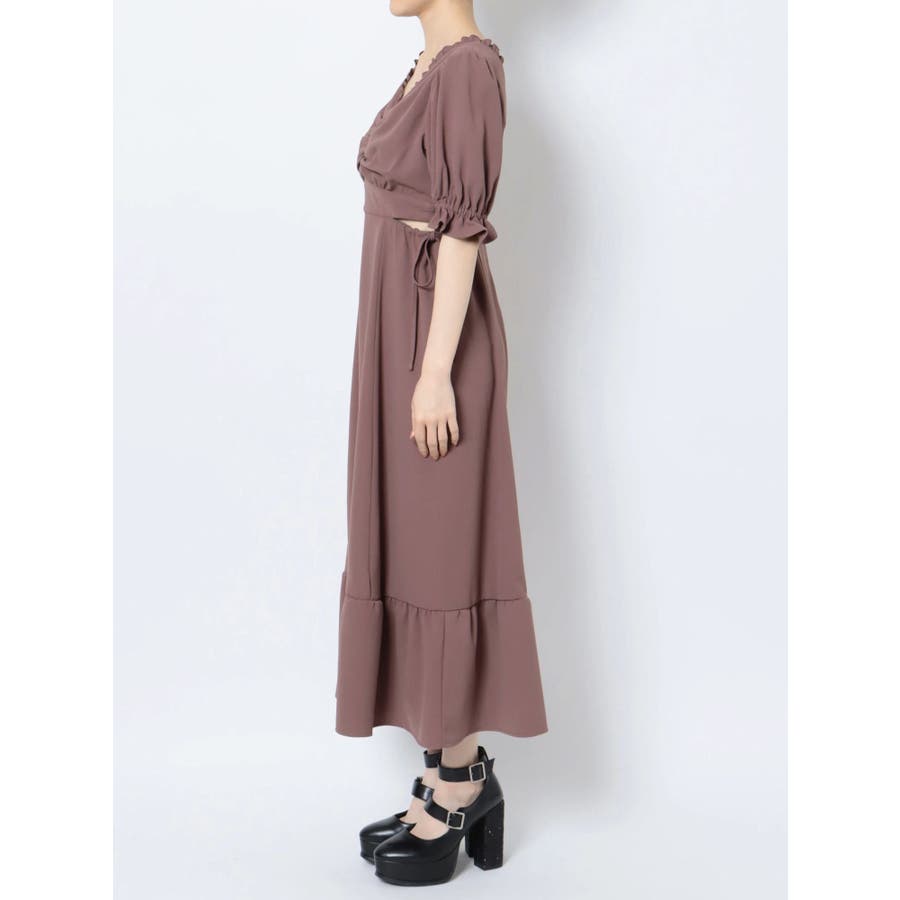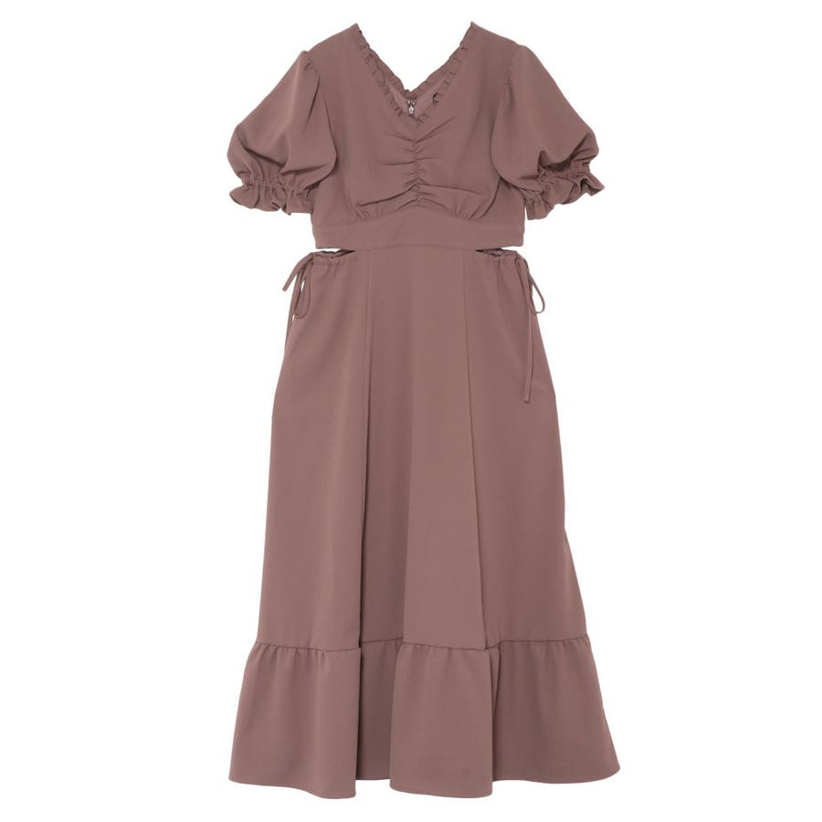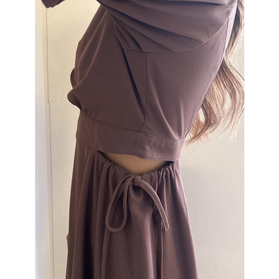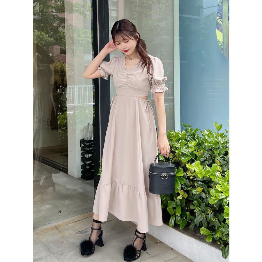 Vネックカットアウトロングワンピース