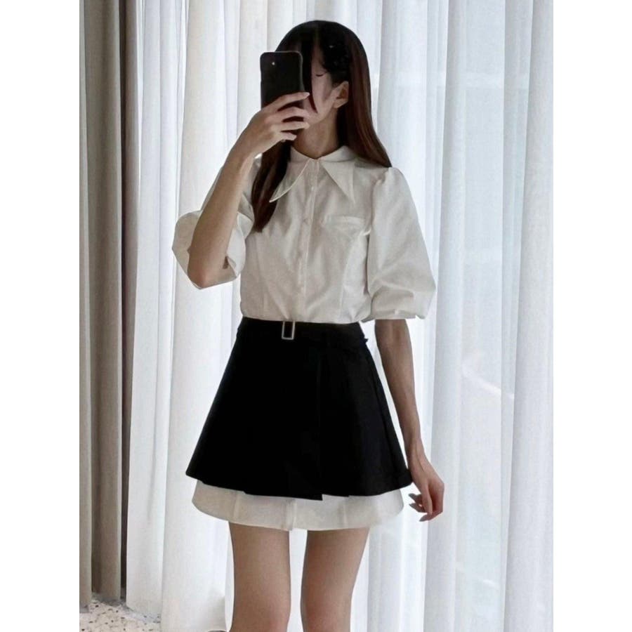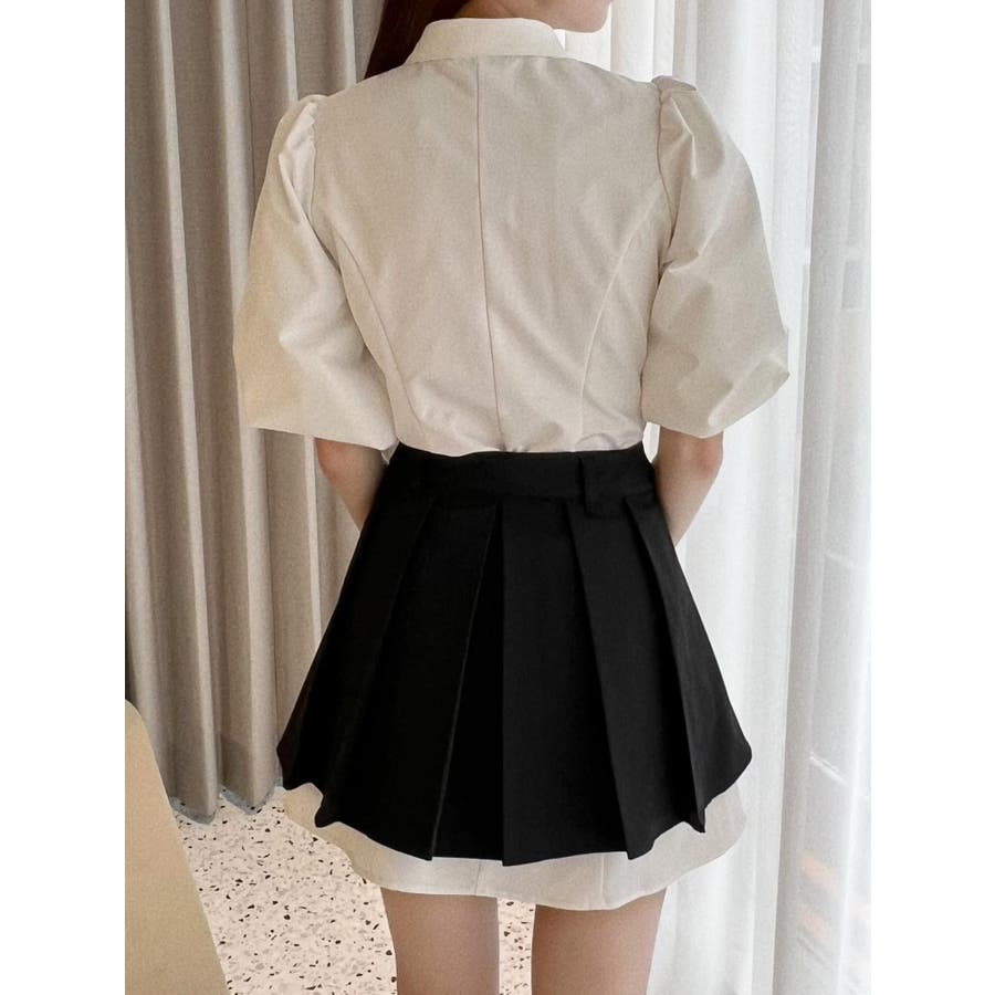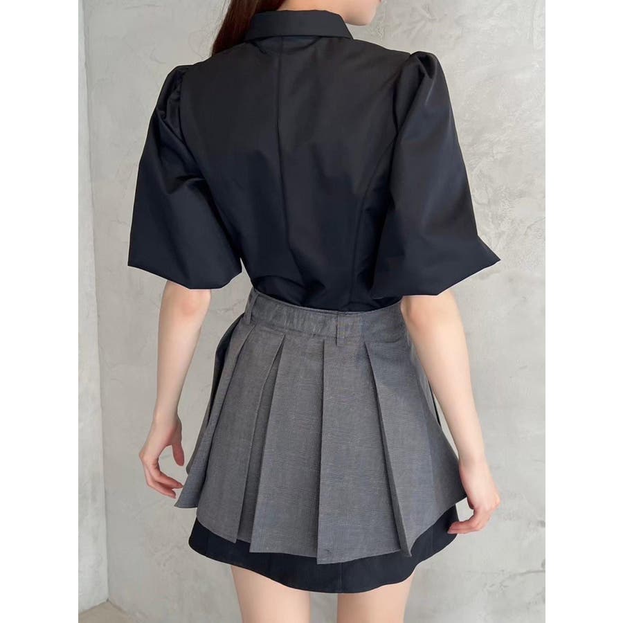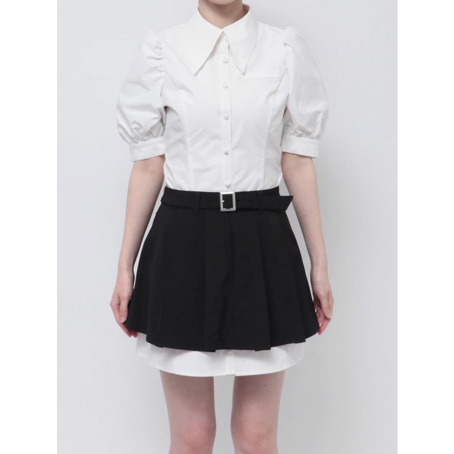 M: バスト[ワンピース]86cm/袖丈[ワンピース]30cm/肩幅[ワンピース]32cm/総丈[ワンピース]82.5[スカート]34.5cm/ウエスト[スカート]70cm/計量約524g
