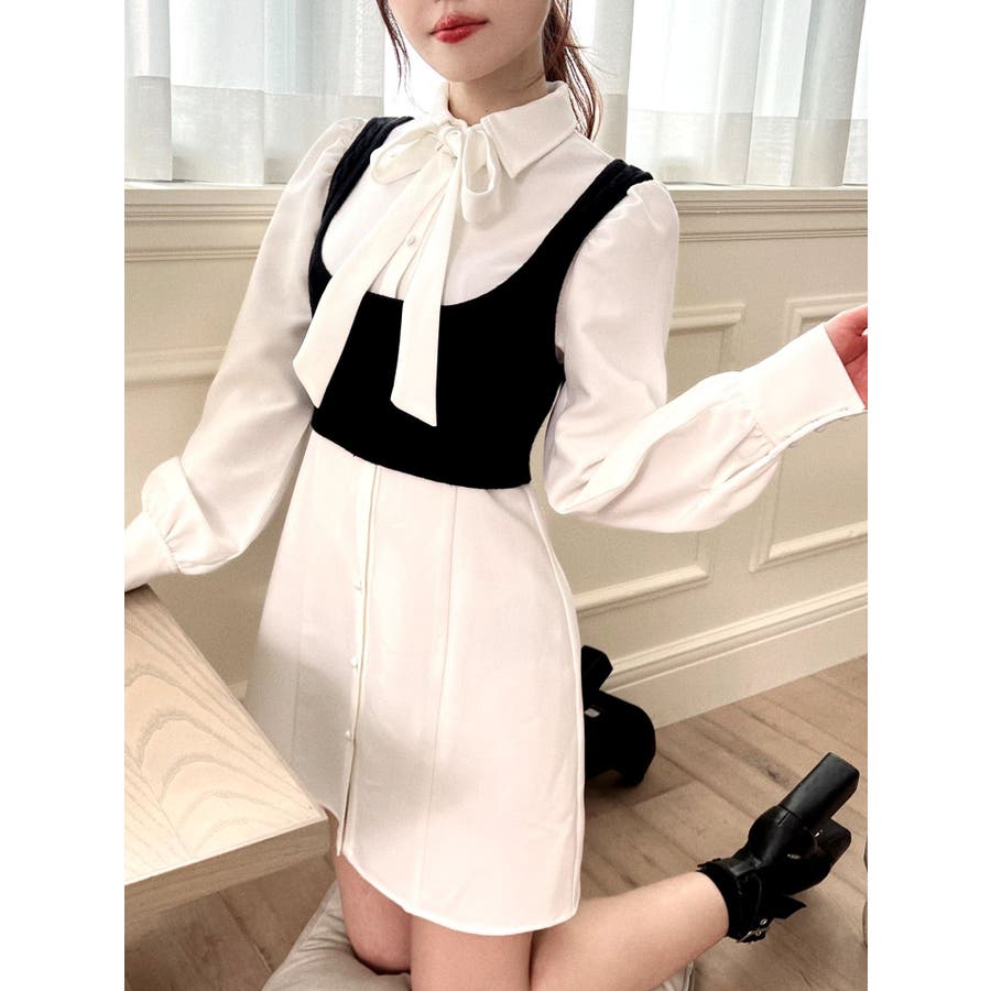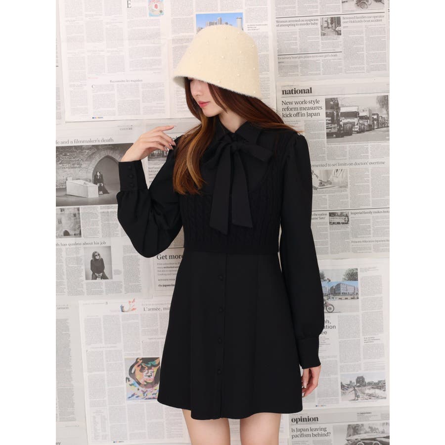 ニットベスト付きワンピース