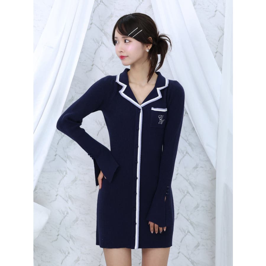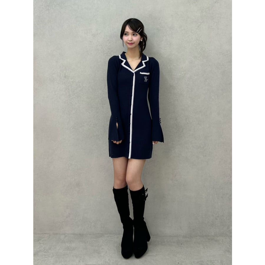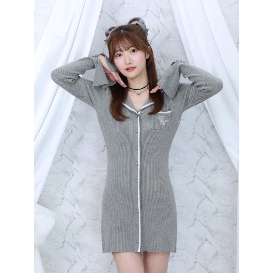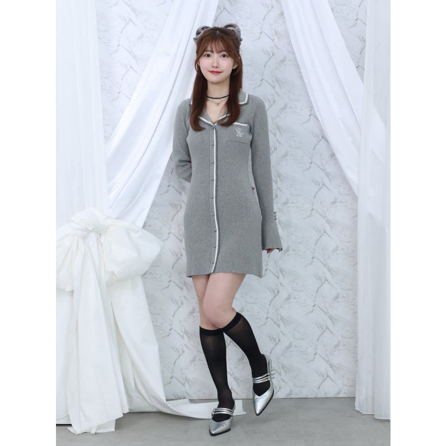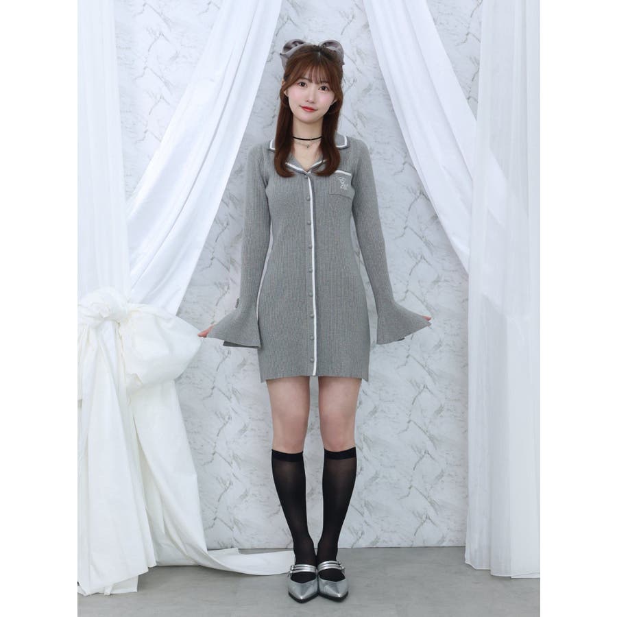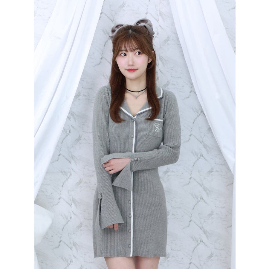 フロントボタンニットワンピース