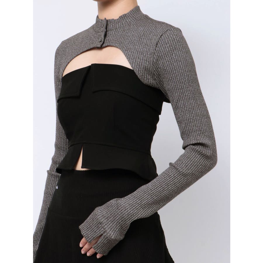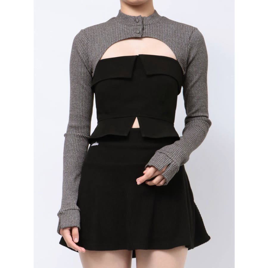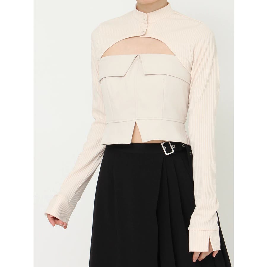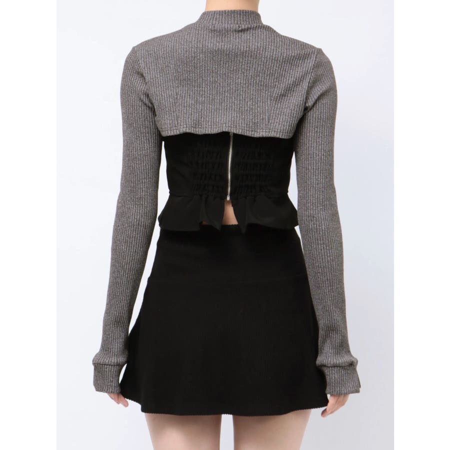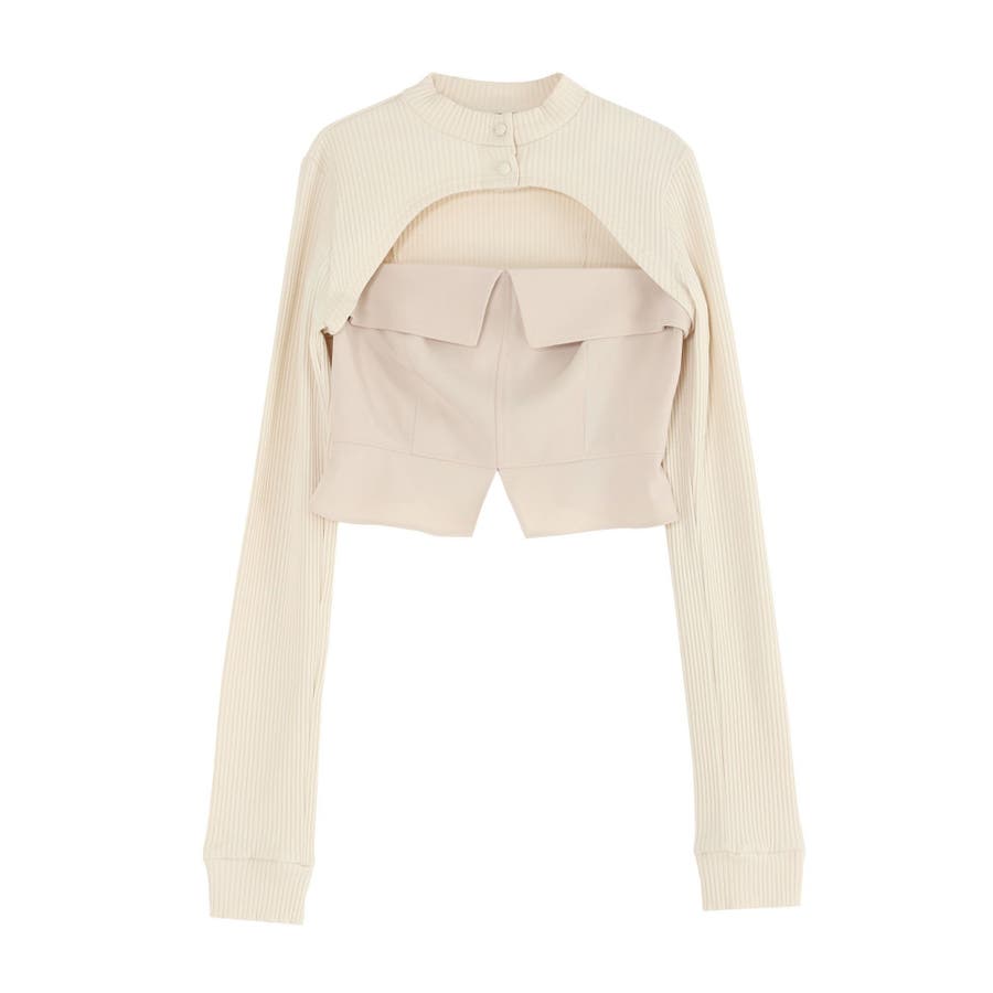 F: バスト[トップス]80[ビスチェ]一部ゴム仕様:78~88cm/着丈[トップス]22cm/袖丈[トップス]66.5cm/肩幅[トップス]33~cm/総丈[ビスチェ]25cm/計量約316g