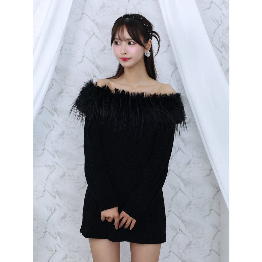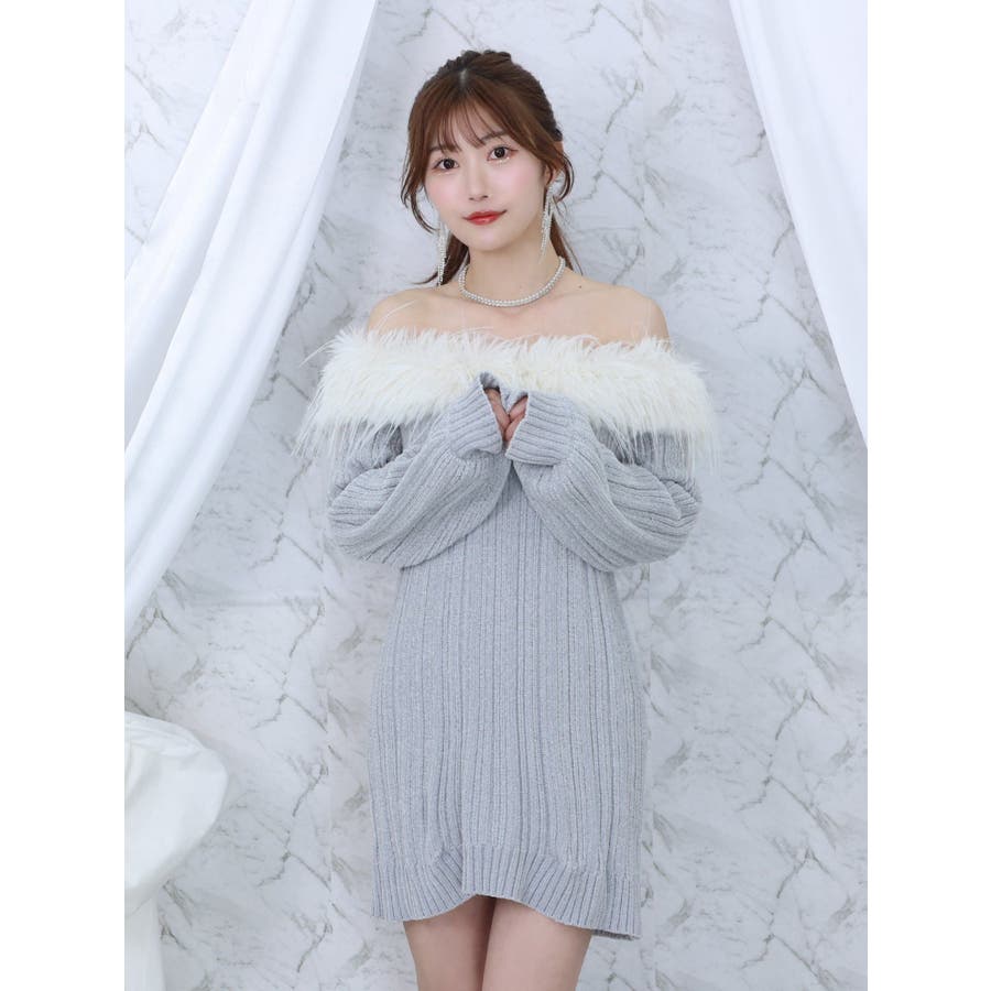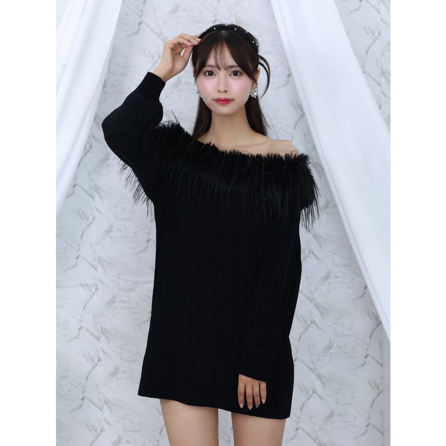 フェイクファーオフショルダーニットワンピ