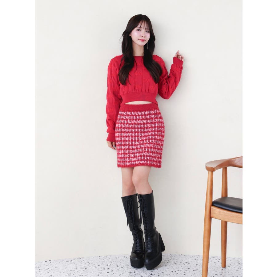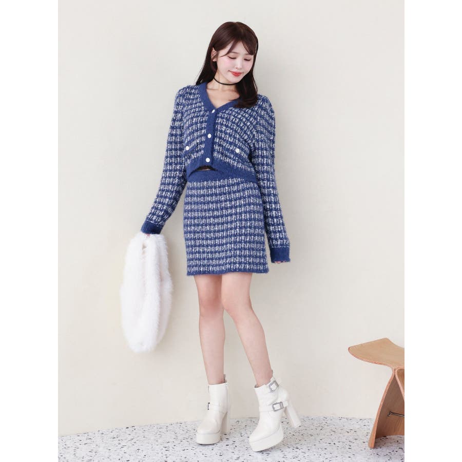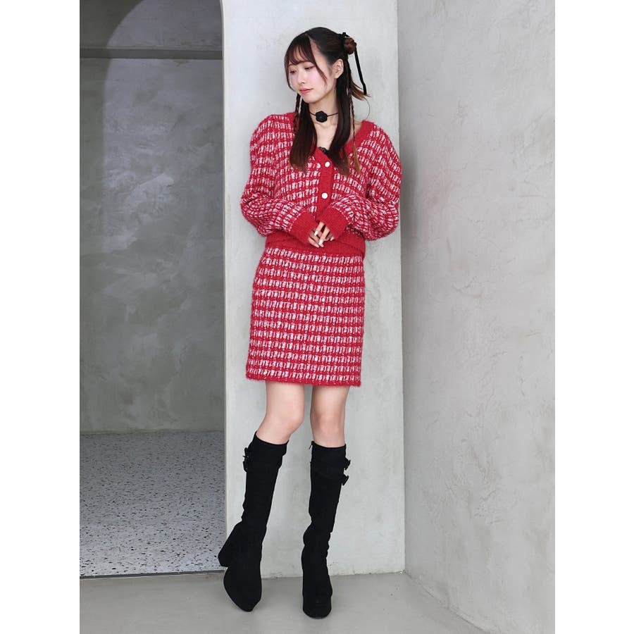 ツイードライクニットスカート(セットアップ可能)