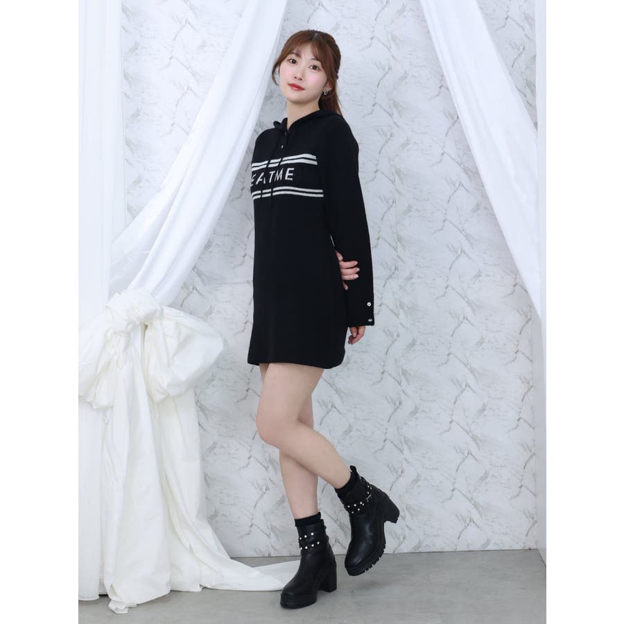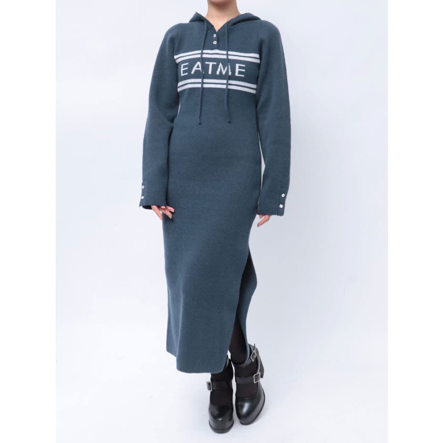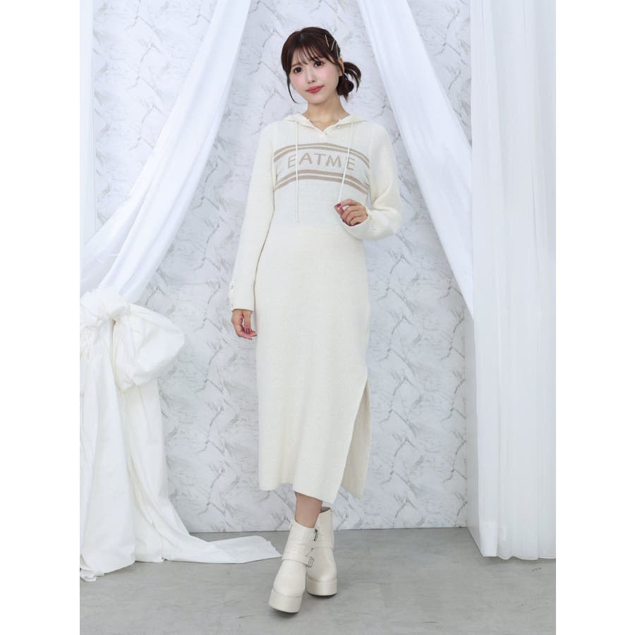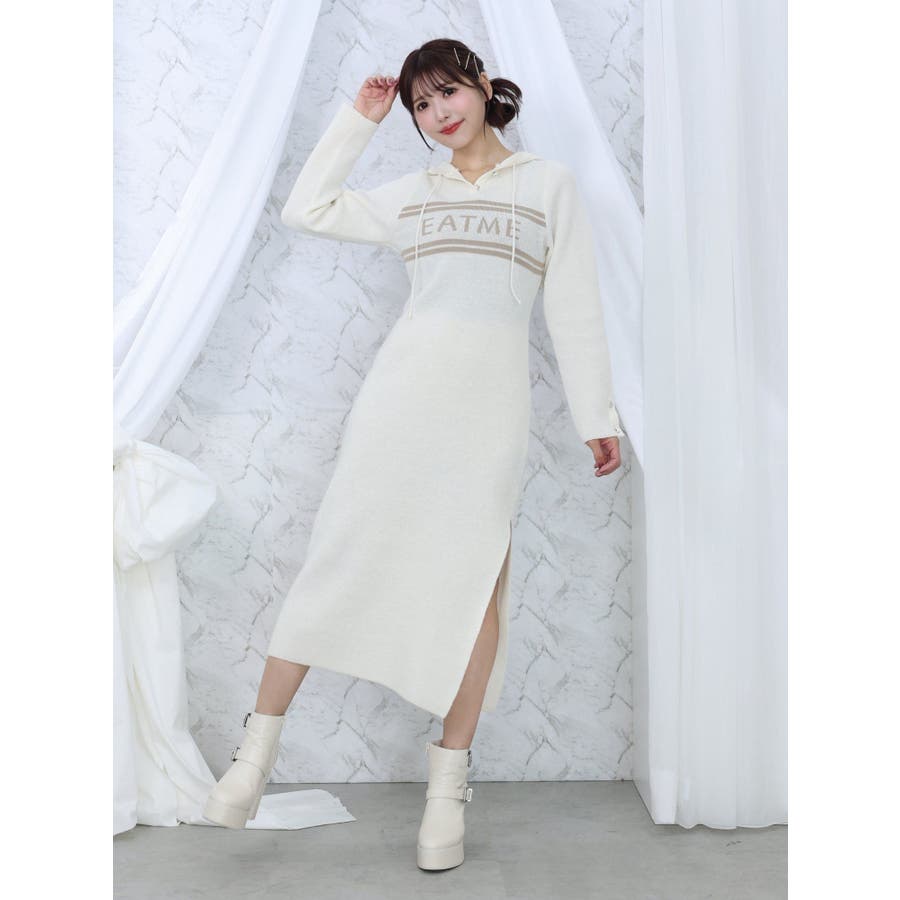 フーディーロゴニットワンピース