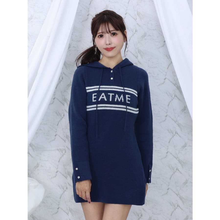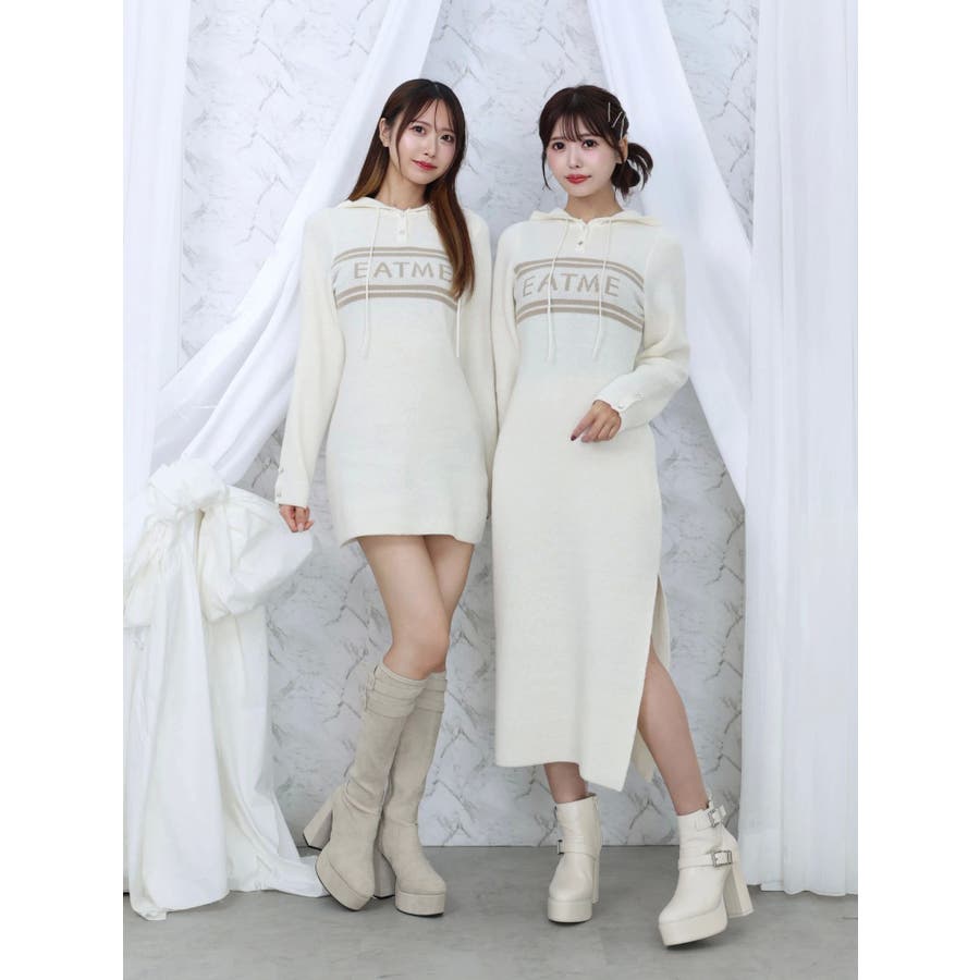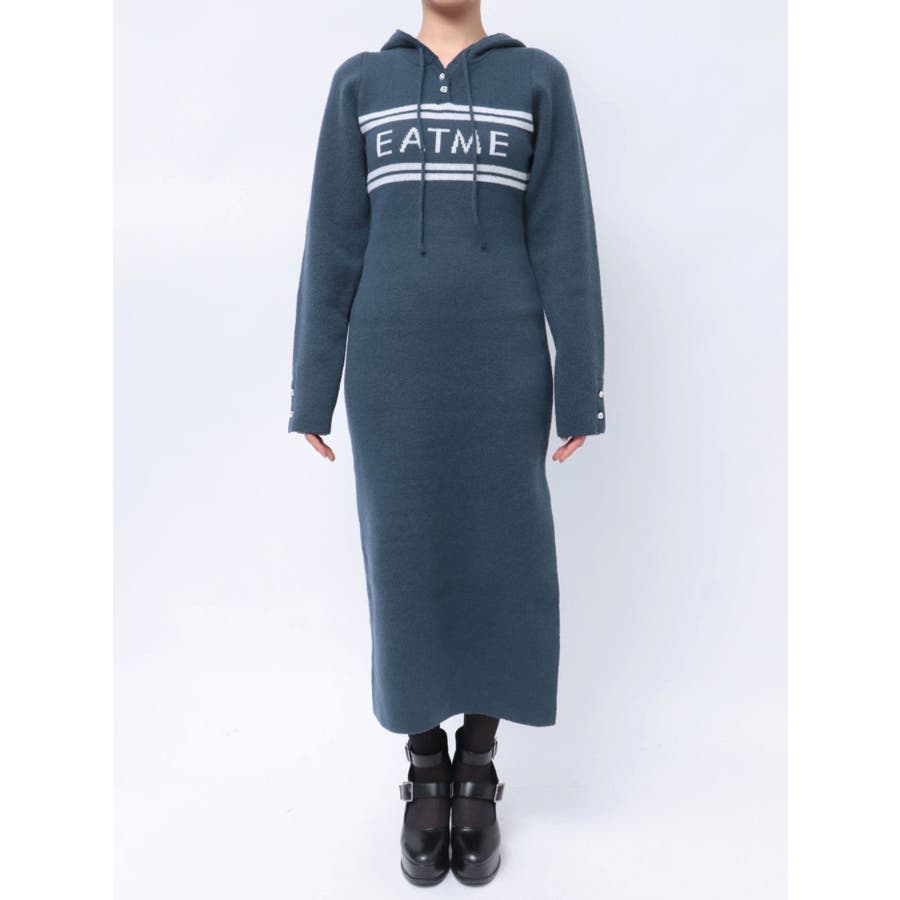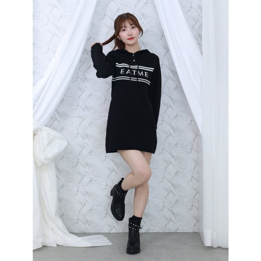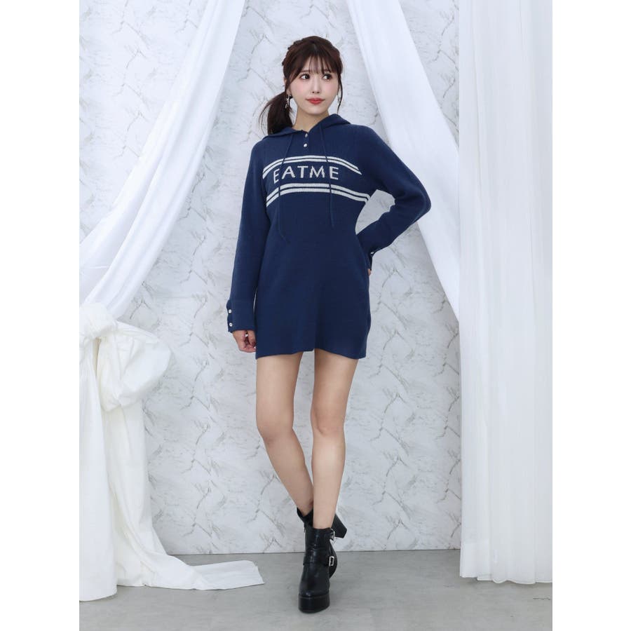 フーディーロゴニットワンピース
