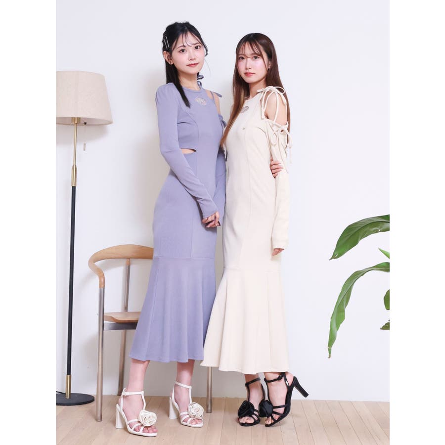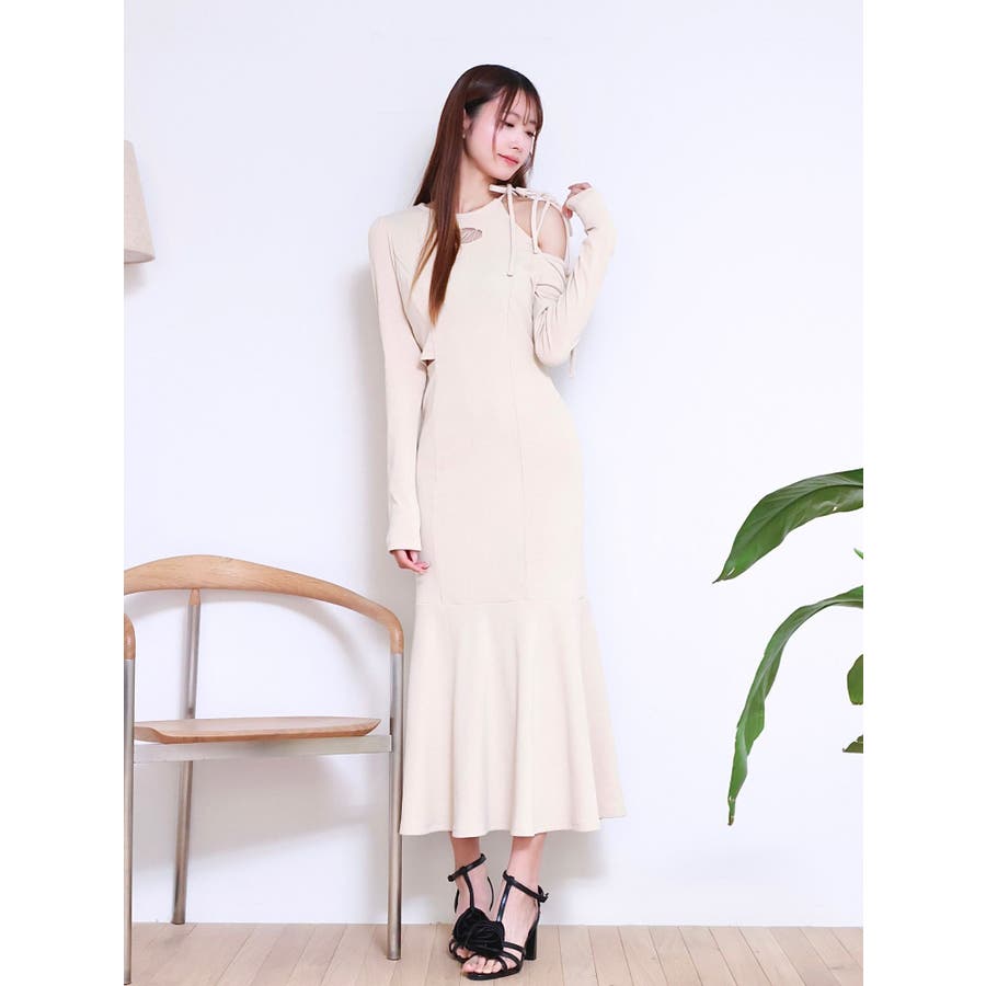 リボンカットアウトマーメイドワンピース