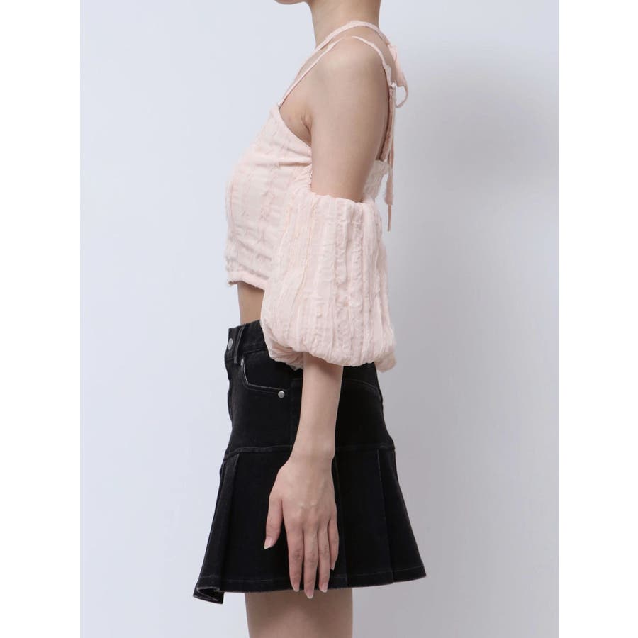 F: バスト76cm/袖丈取り外し可能、22cm/前下がり取り外し、調節可能cm/総丈27cm/計量約164g
