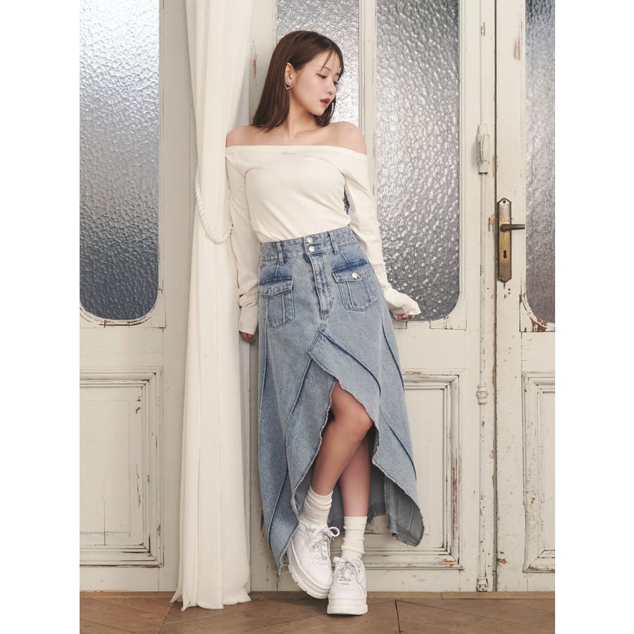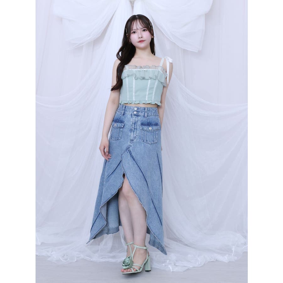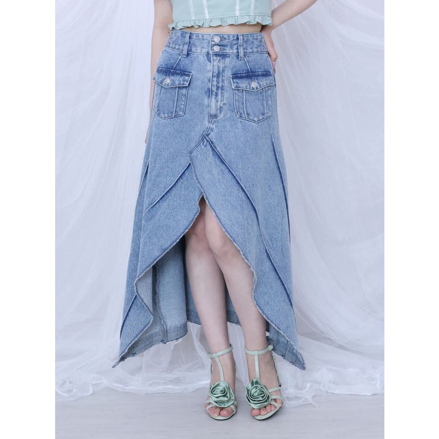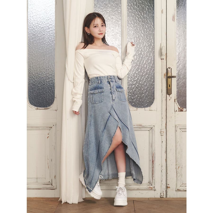 FRONTスリットロングデニムスカート