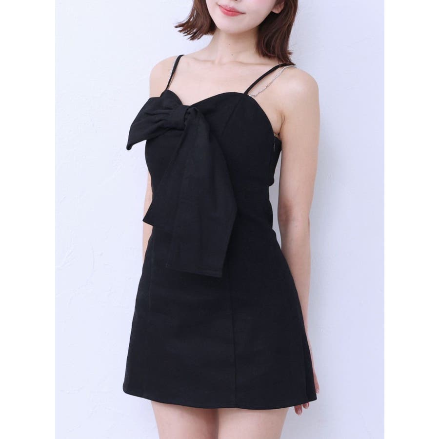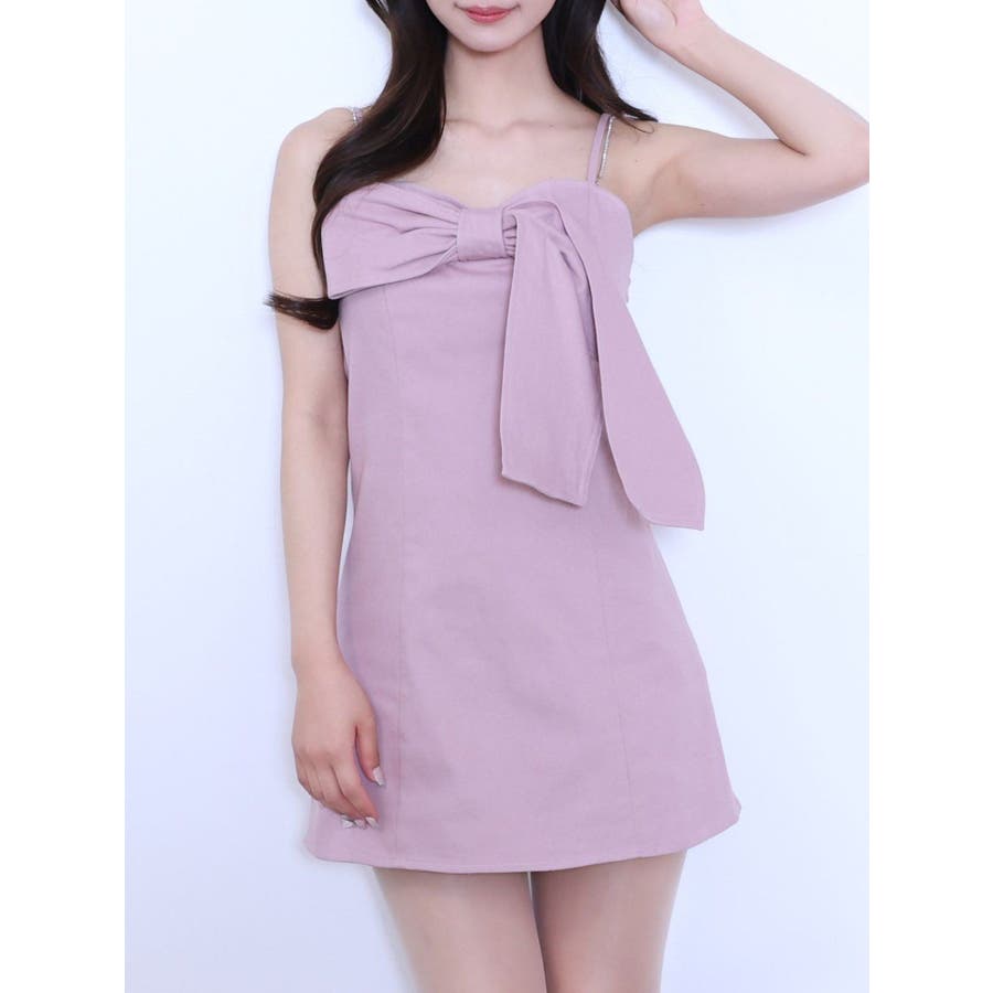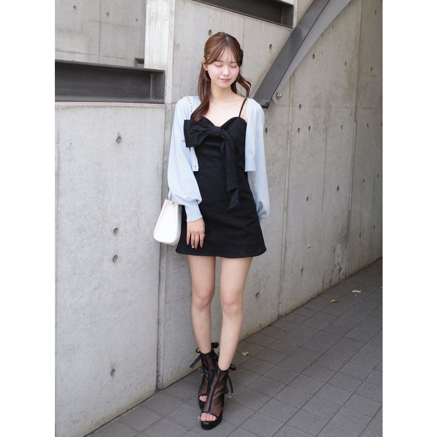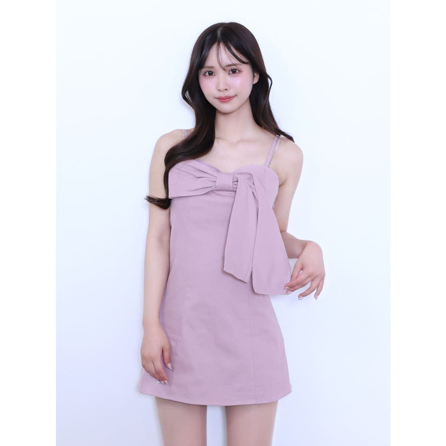 ストーンストラップリボンワンピース