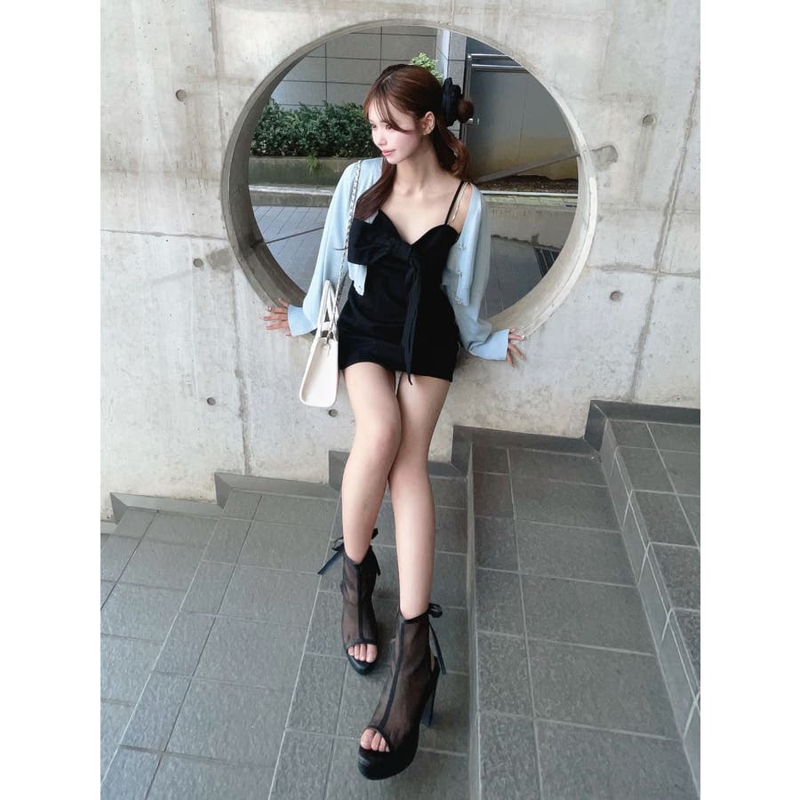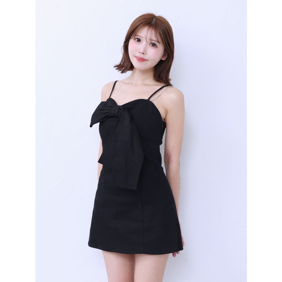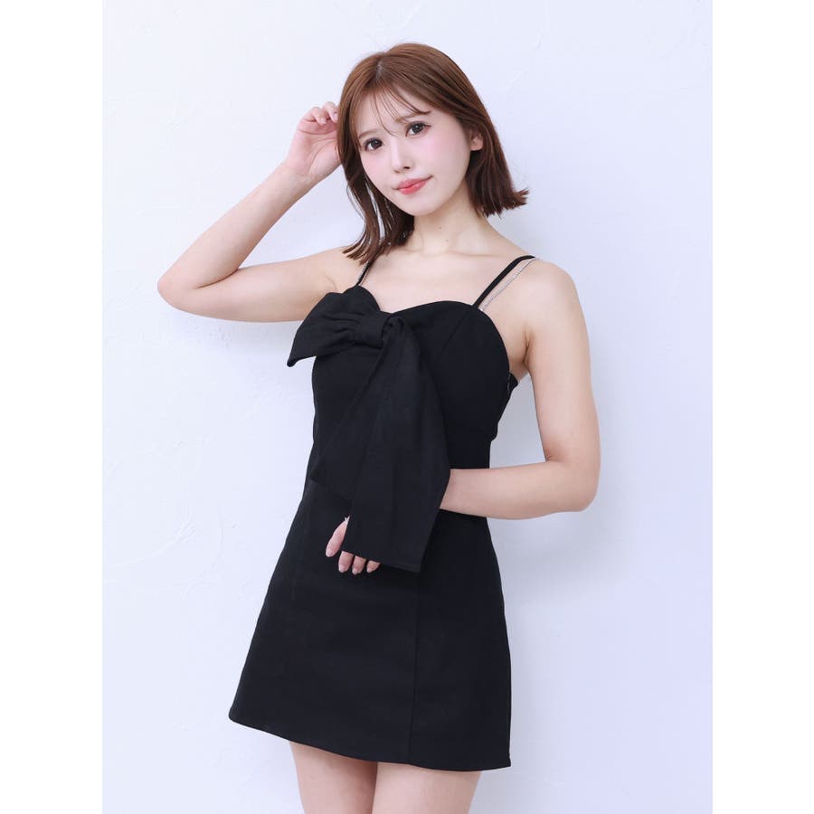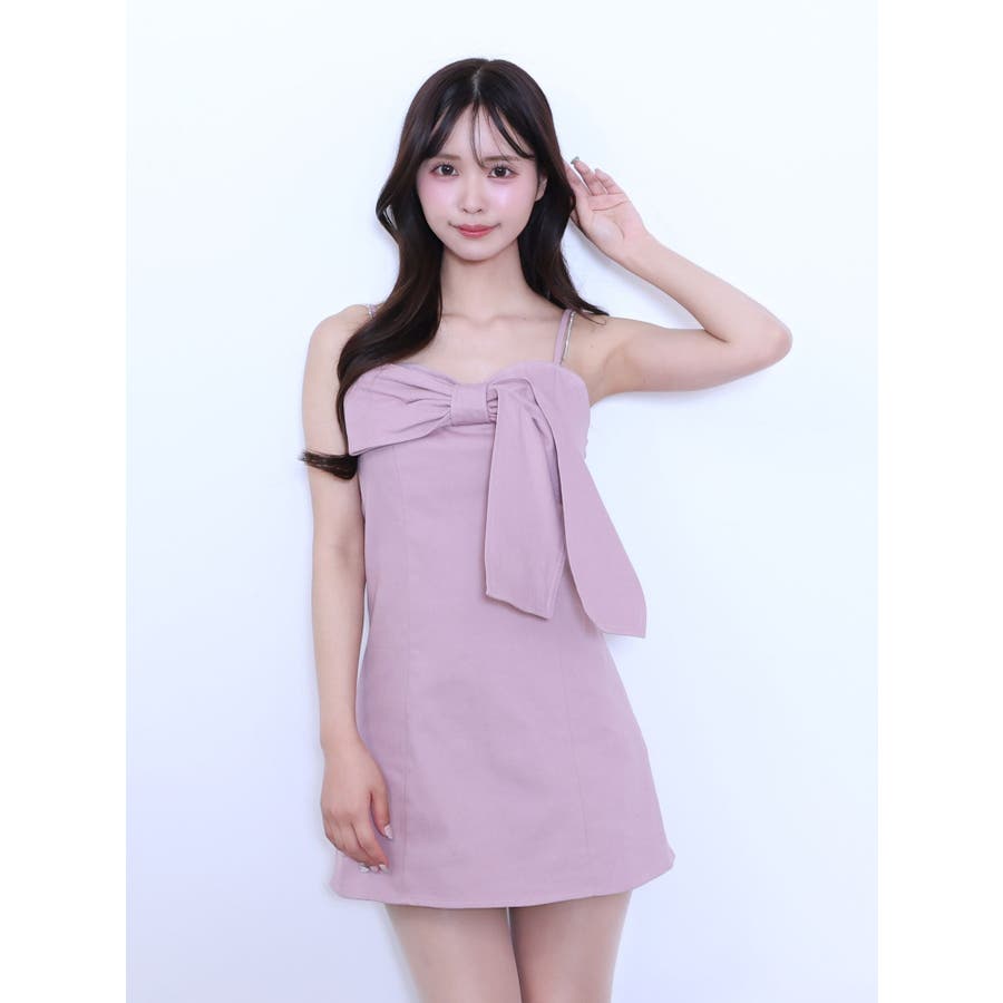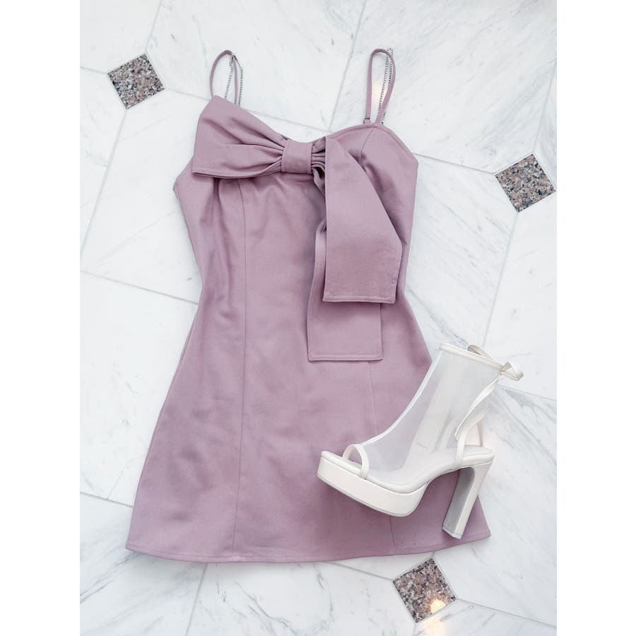 ストーンストラップリボンワンピース