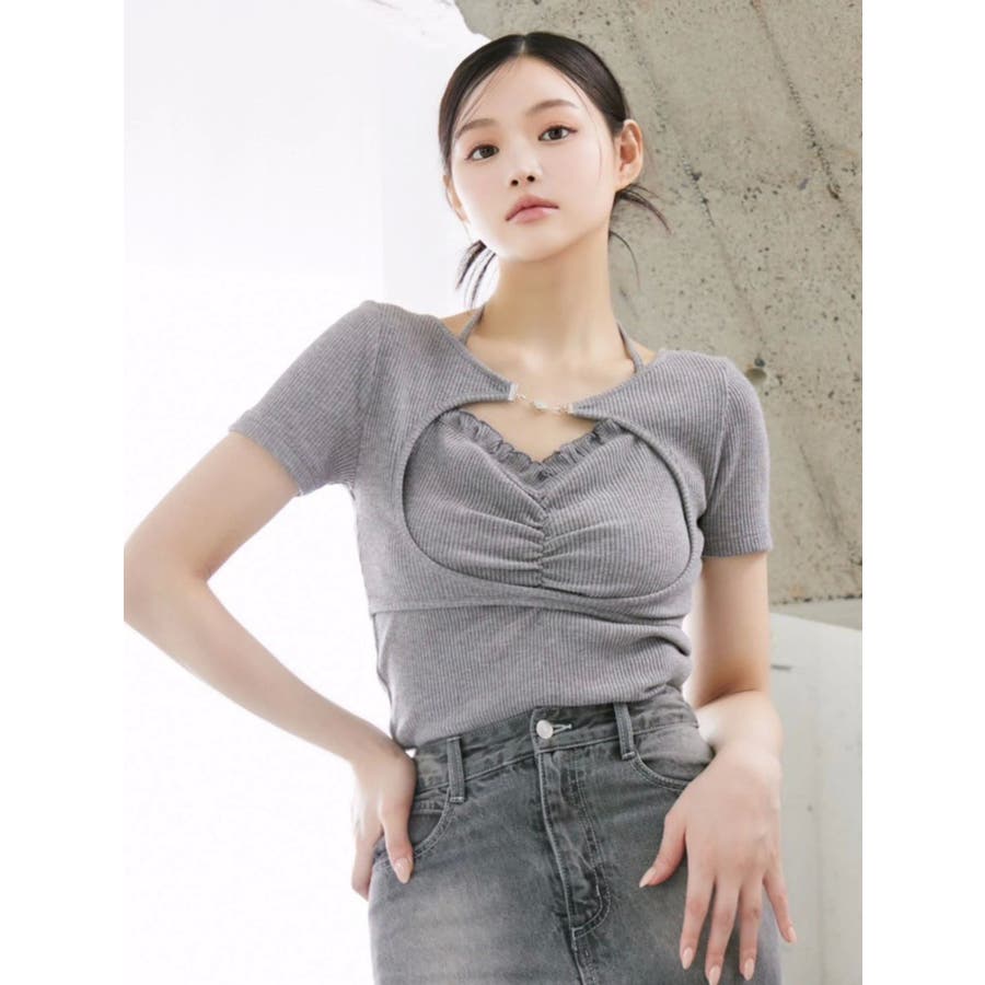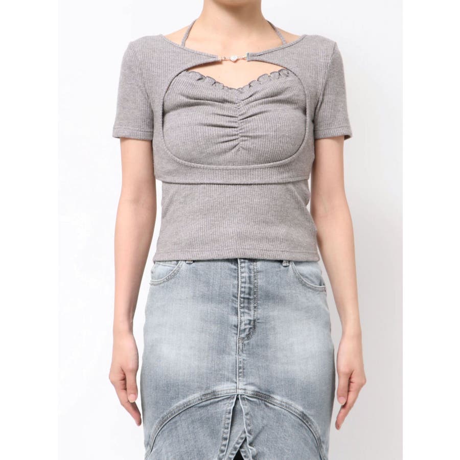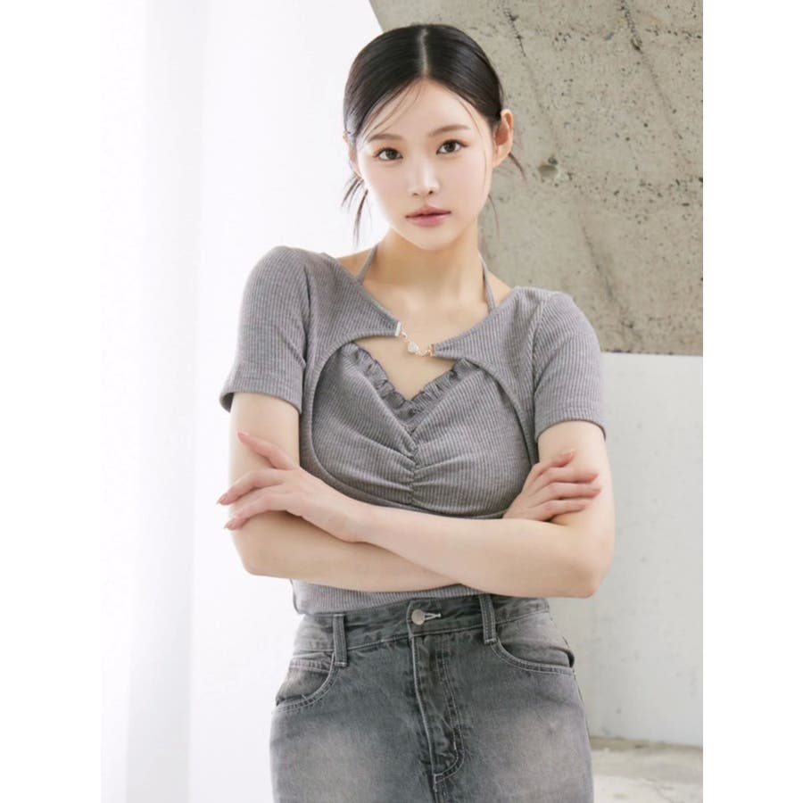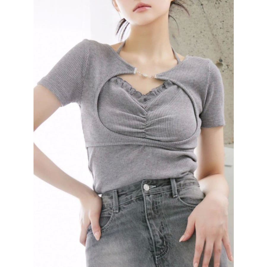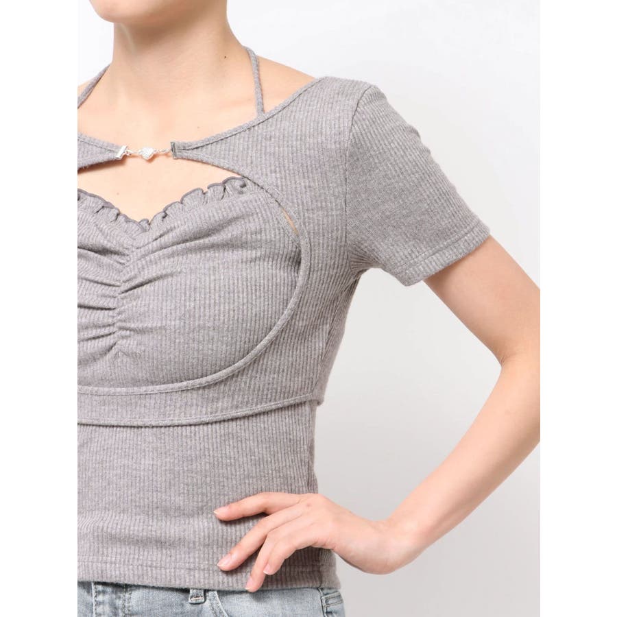 ホルターネックレイヤードリブTOP