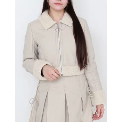 【キャメル】フェイクムートンショートブルゾン
