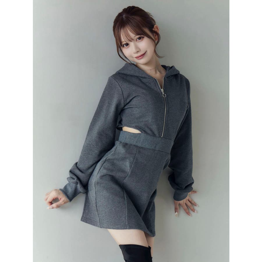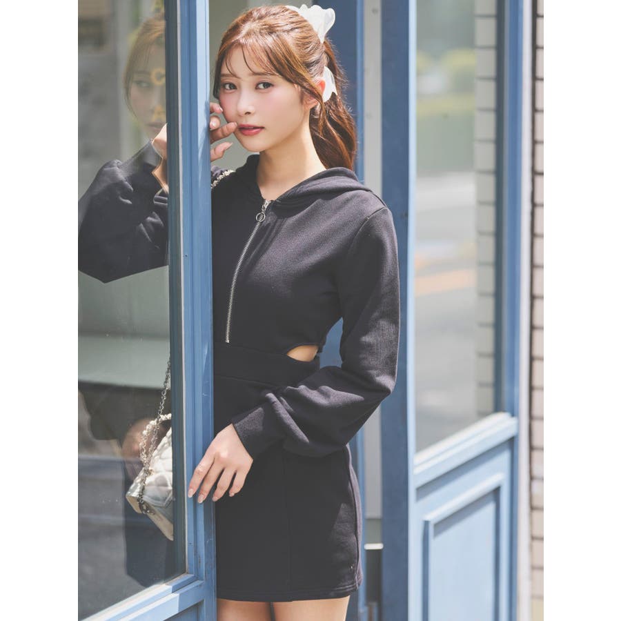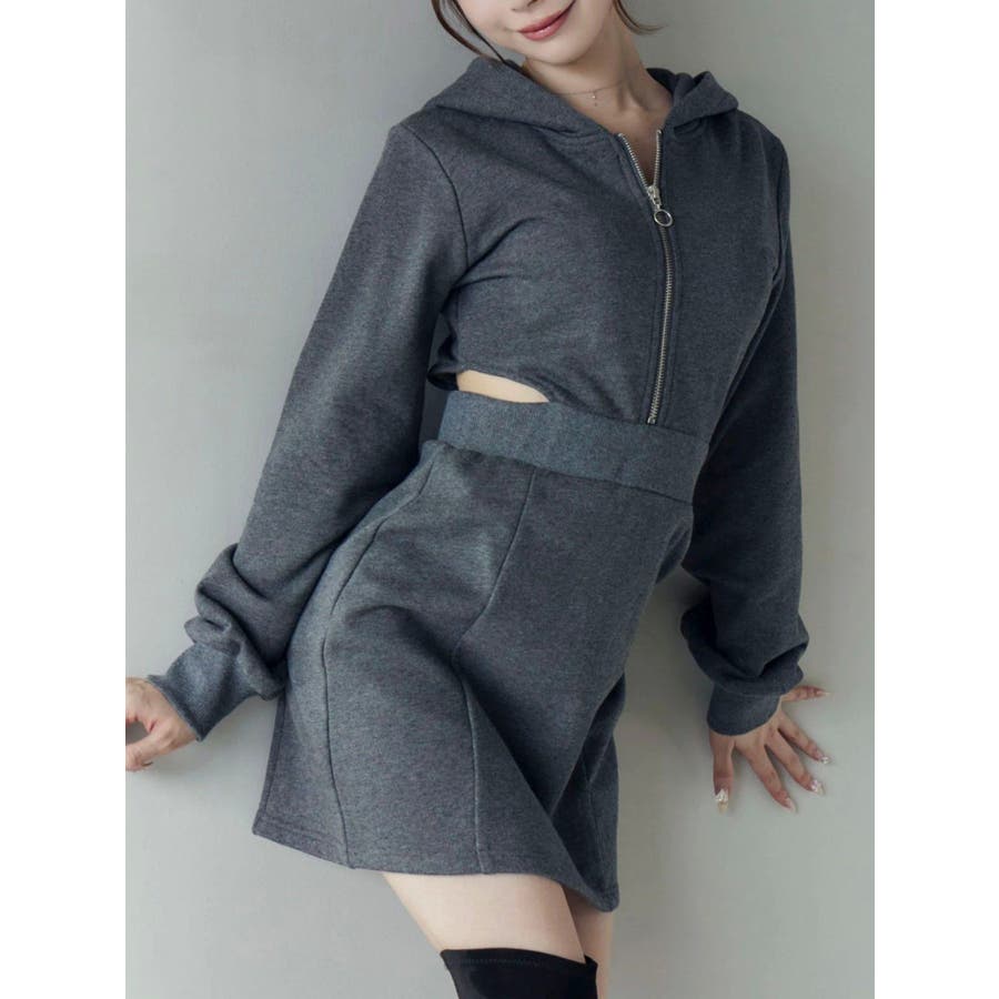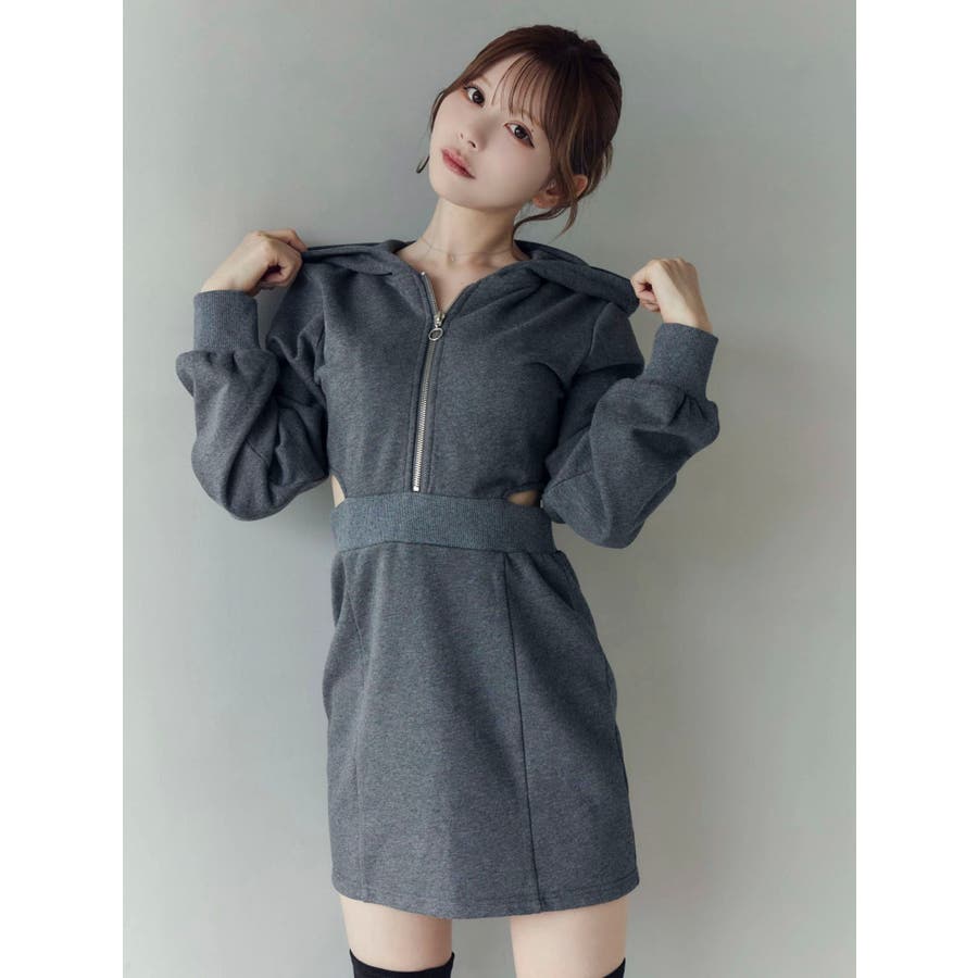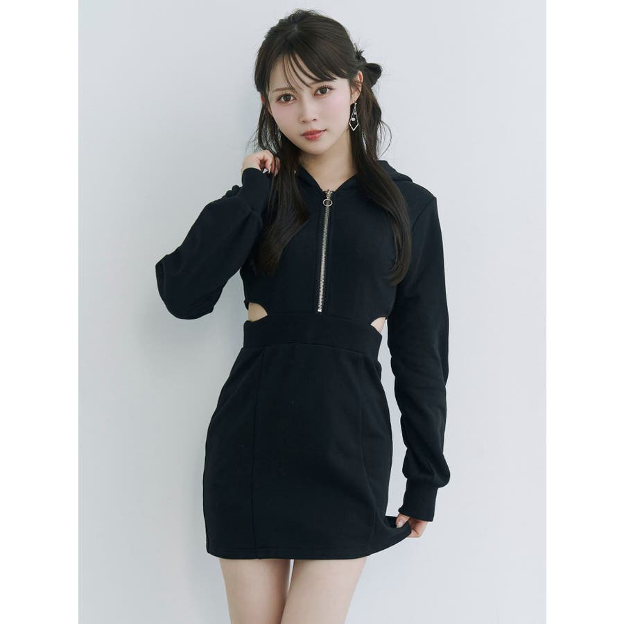 カットアウトフーディーワンピース