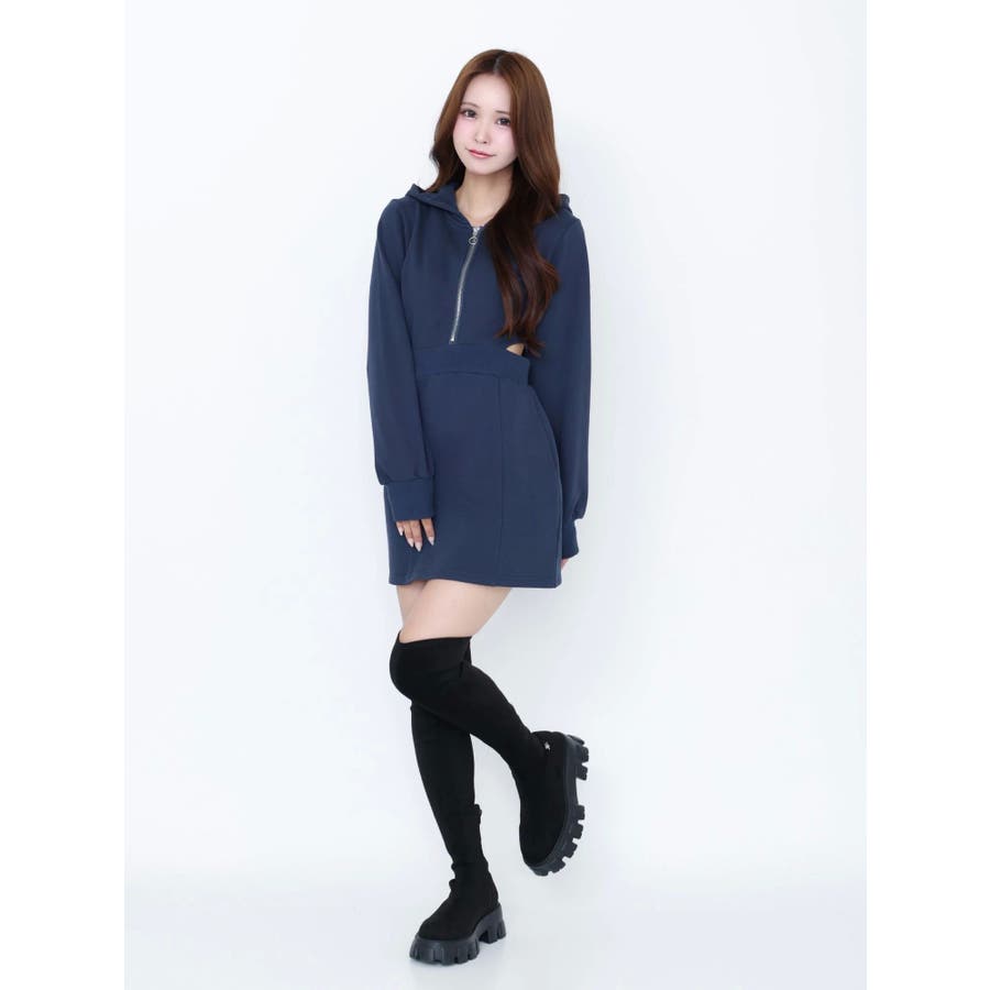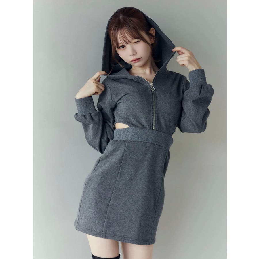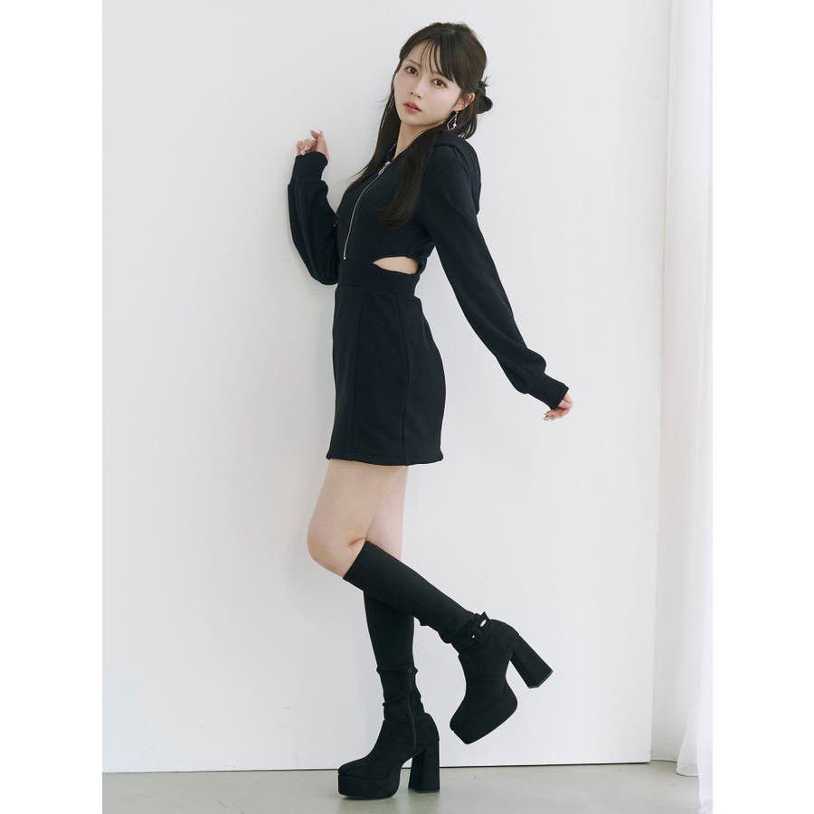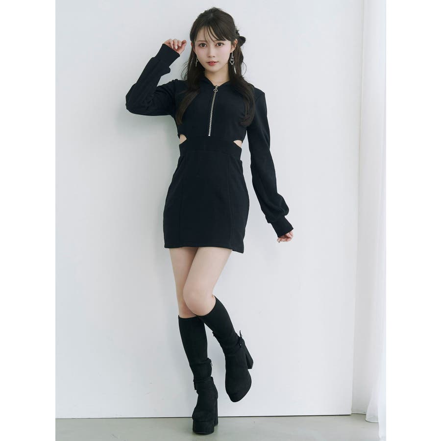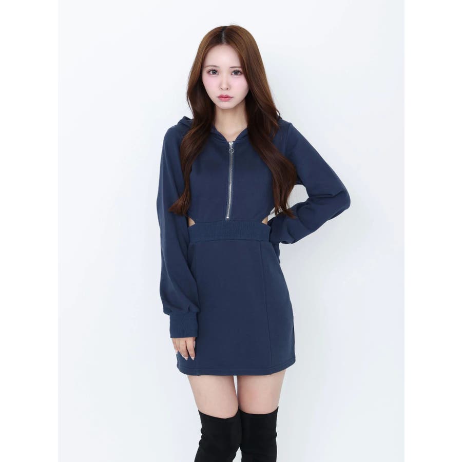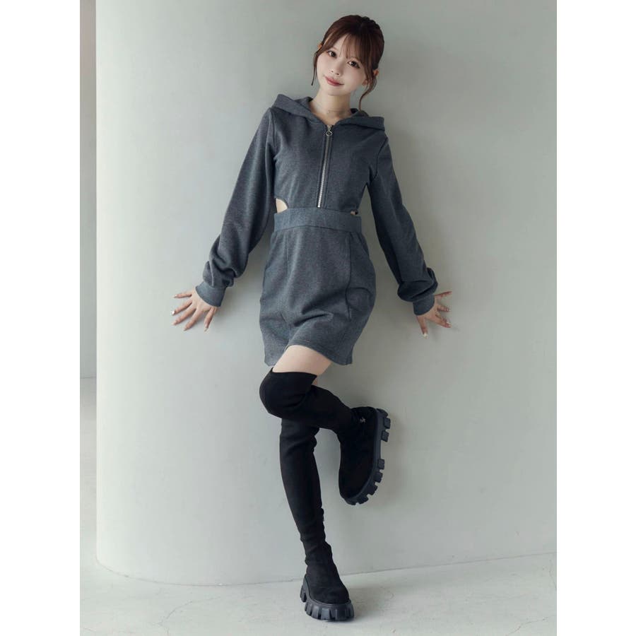 カットアウトフーディーワンピース