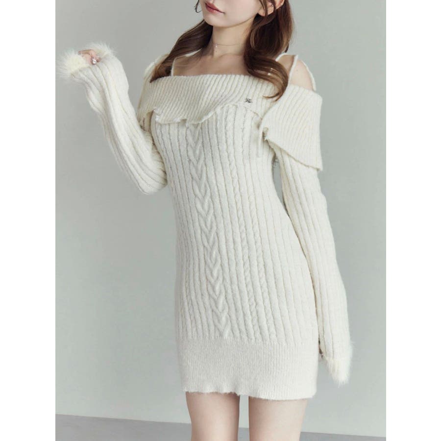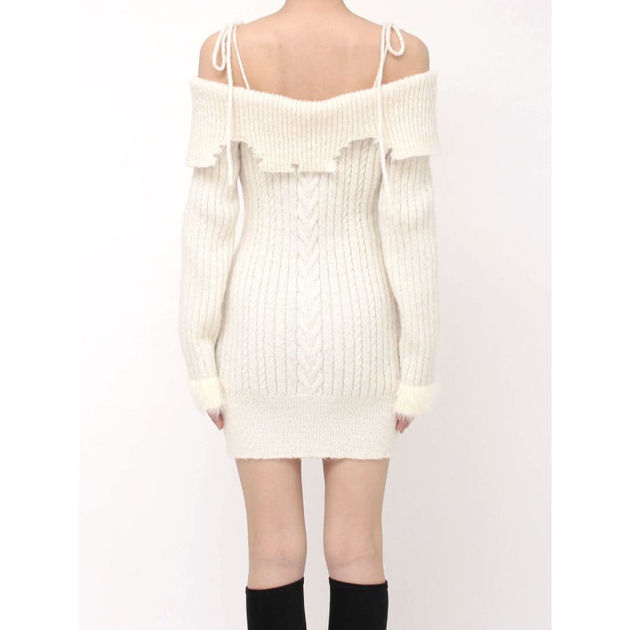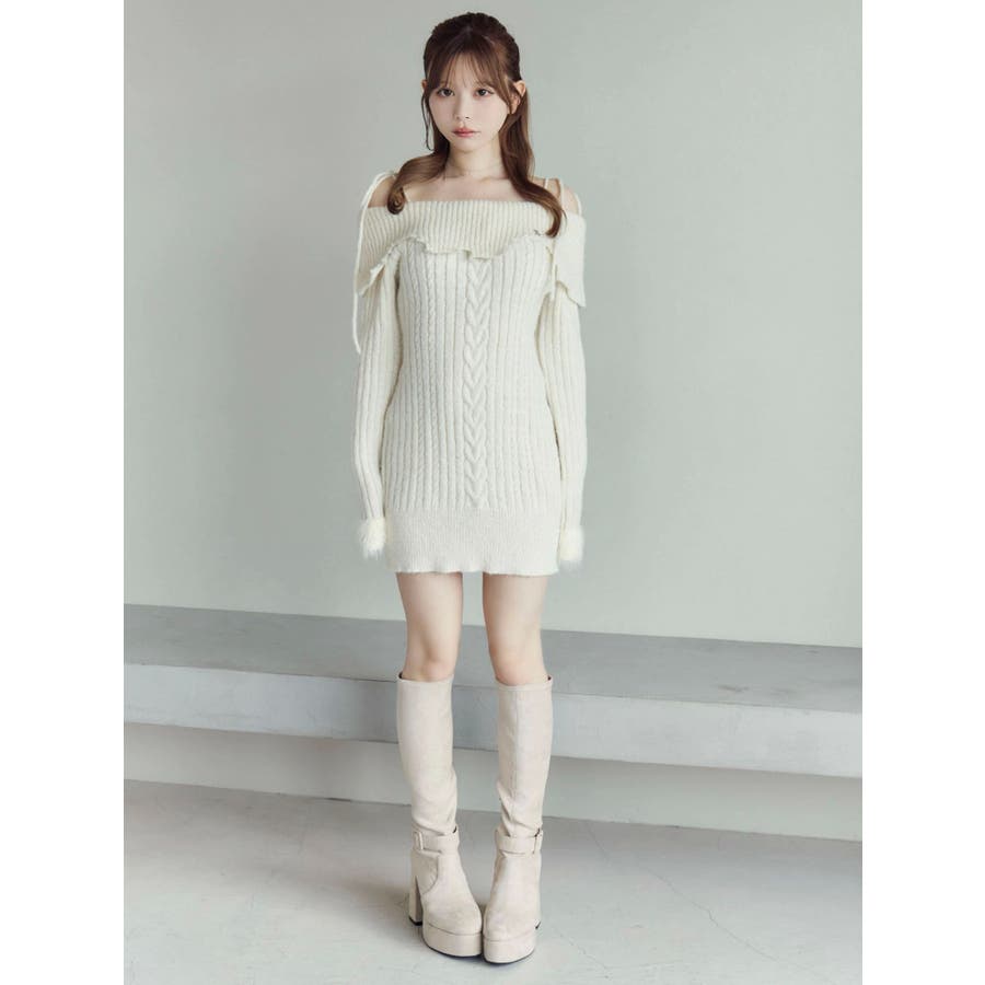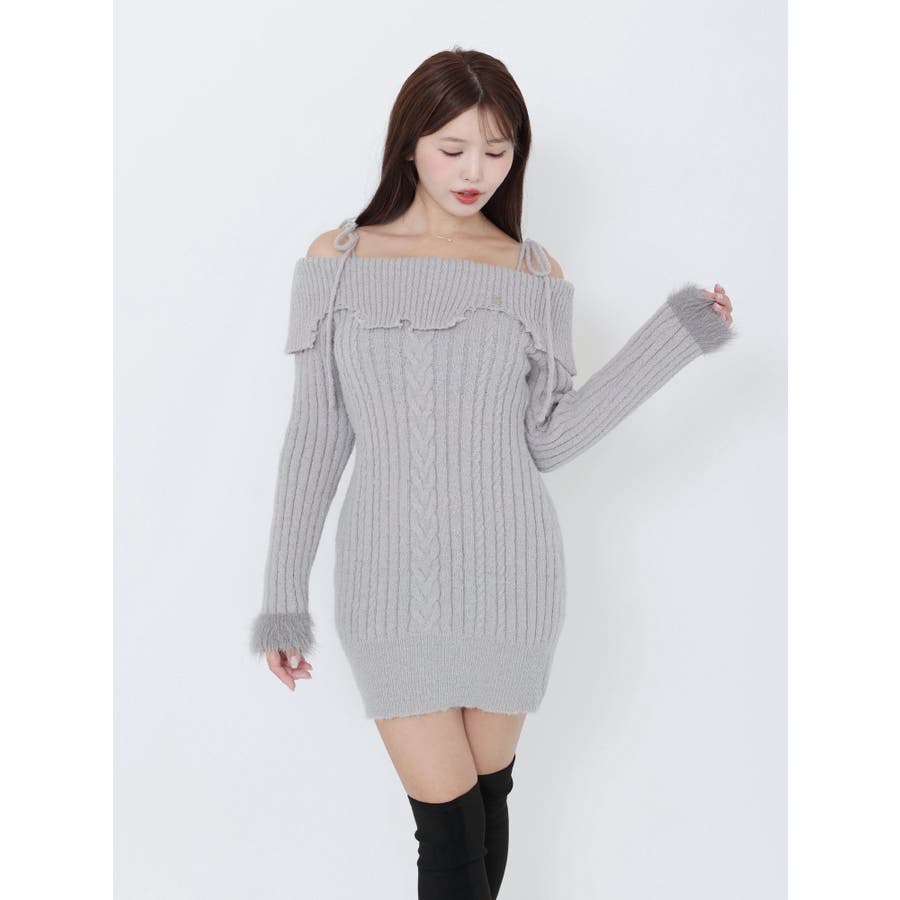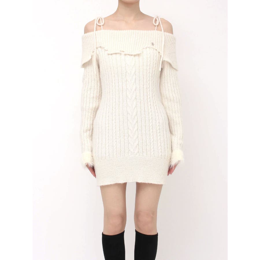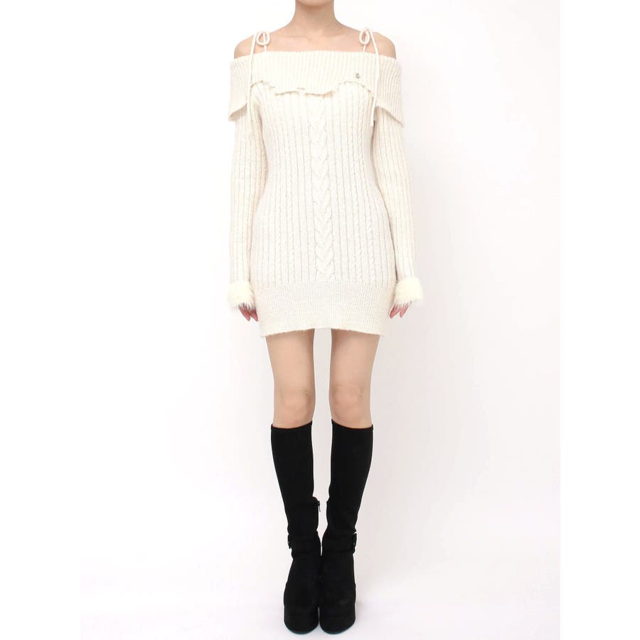 ヘムシャギーオフショルニットワンピース