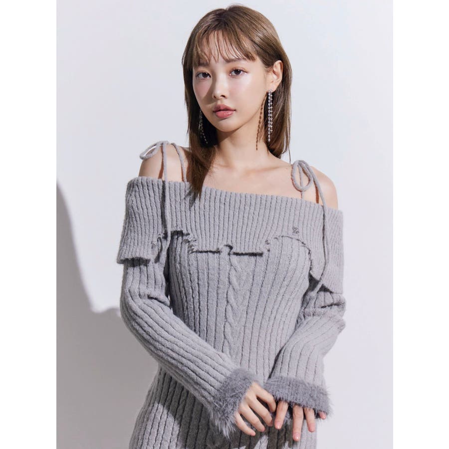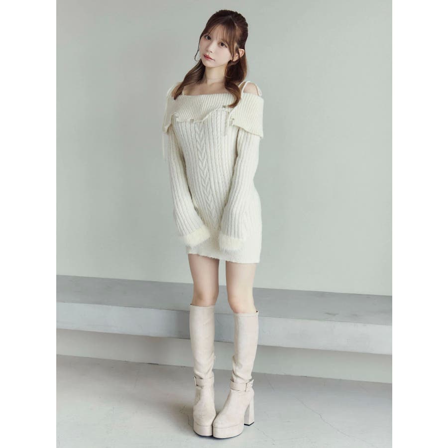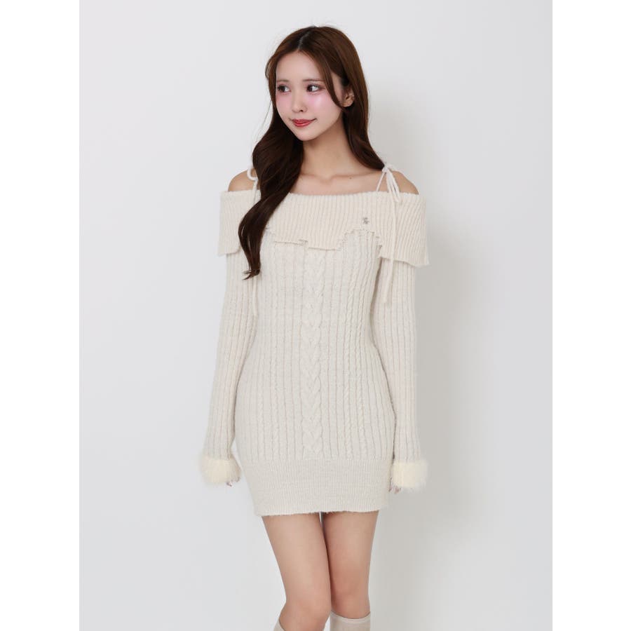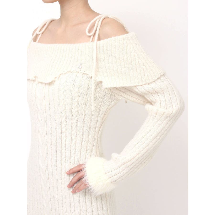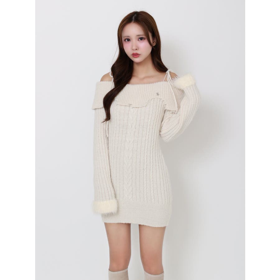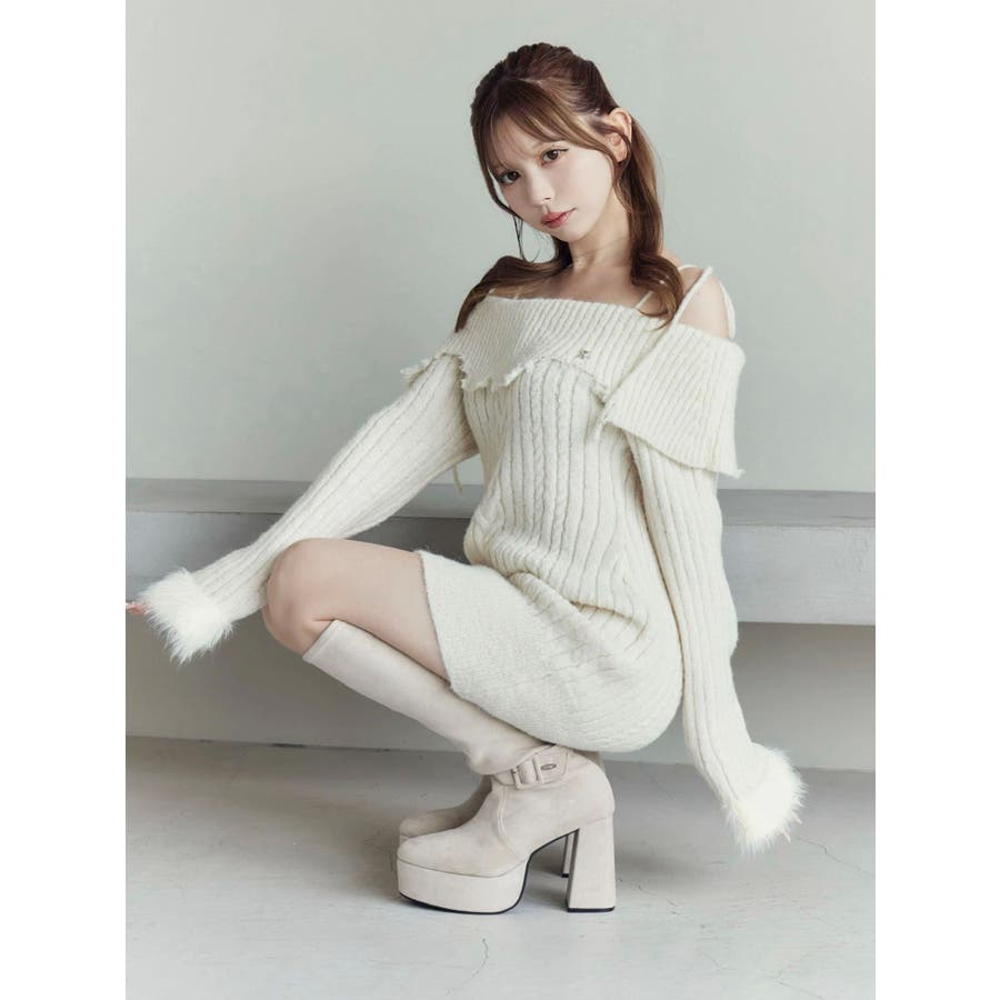 ヘムシャギーオフショルニットワンピース