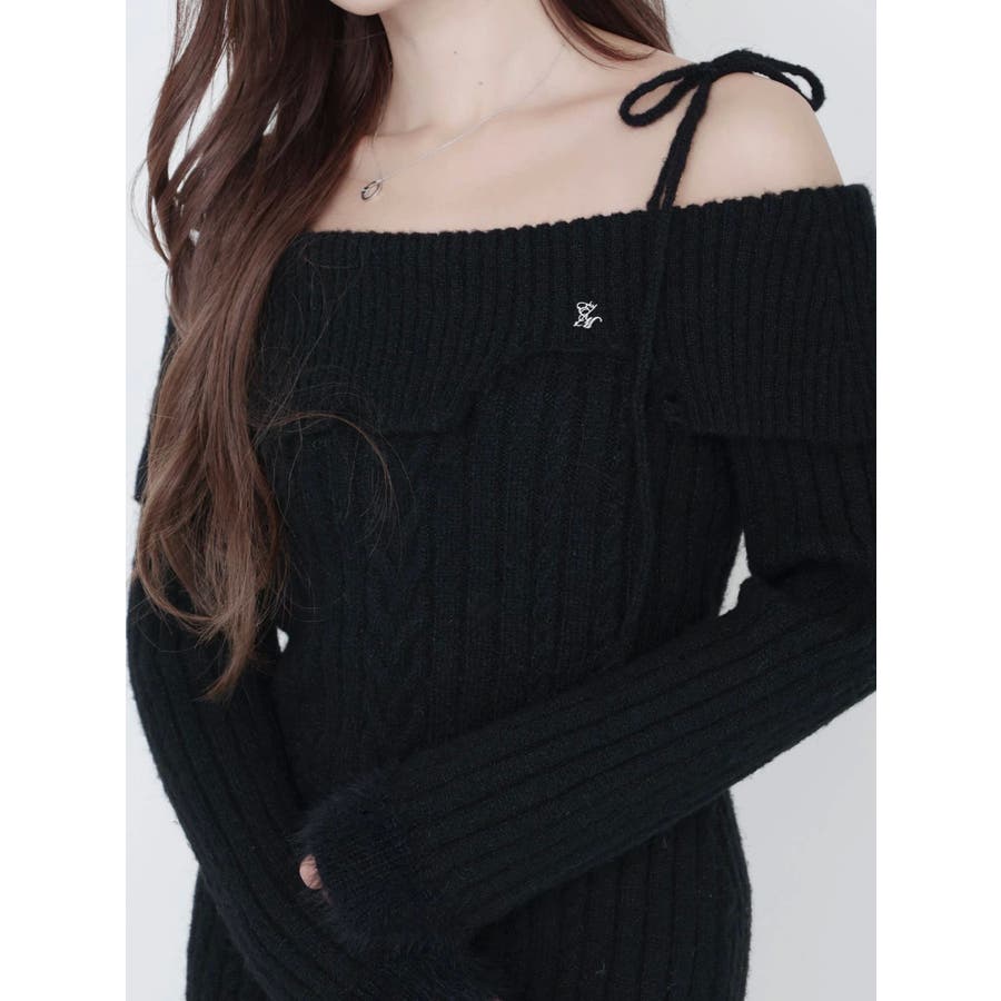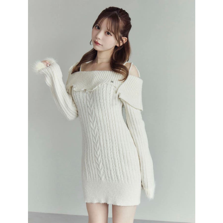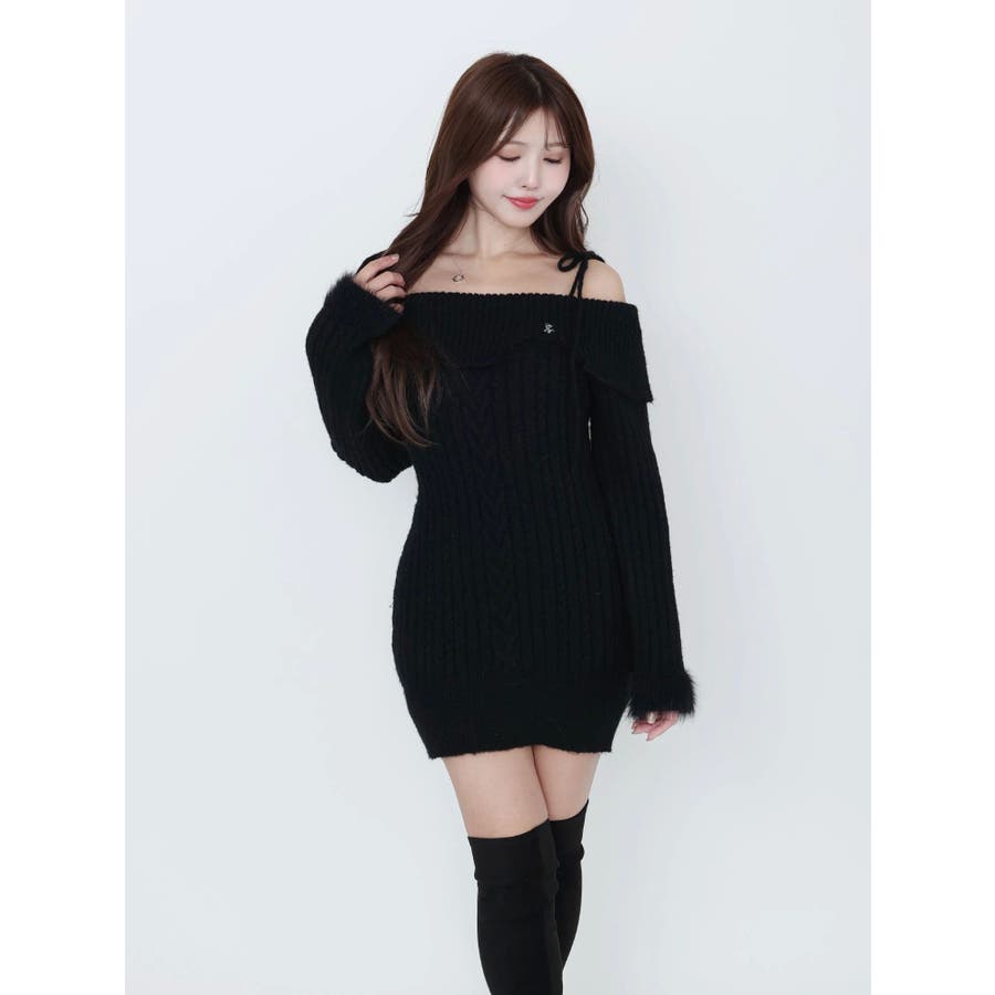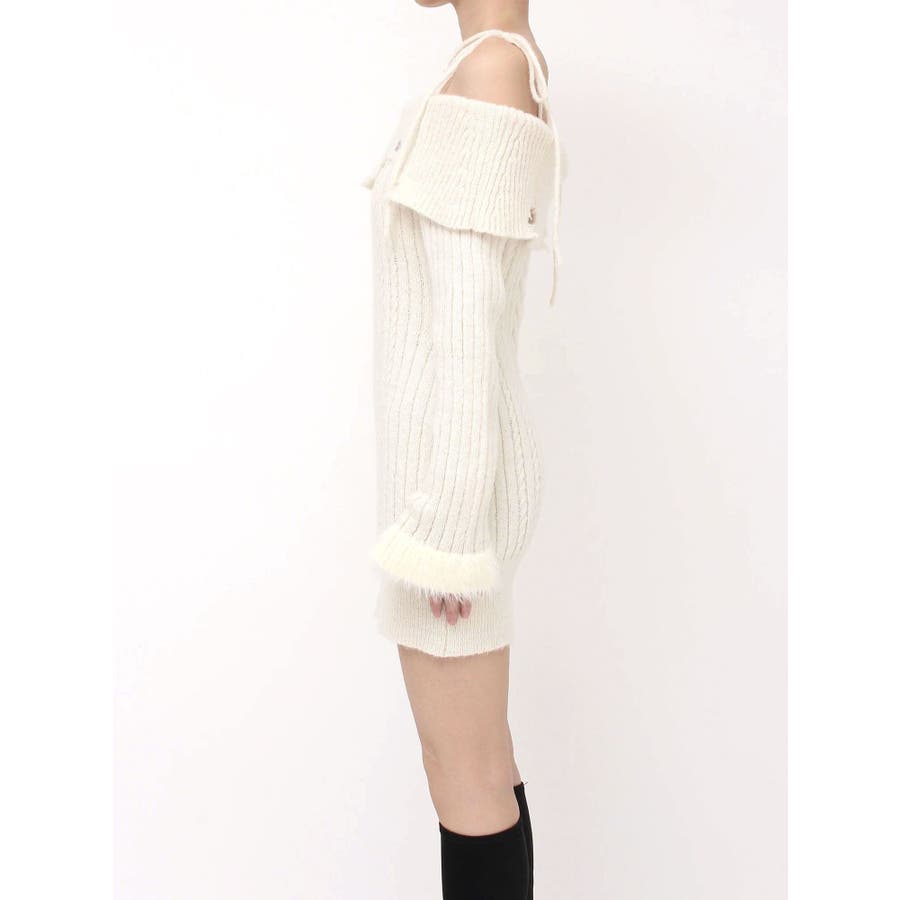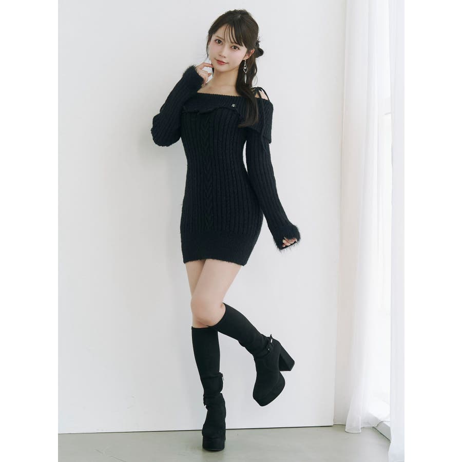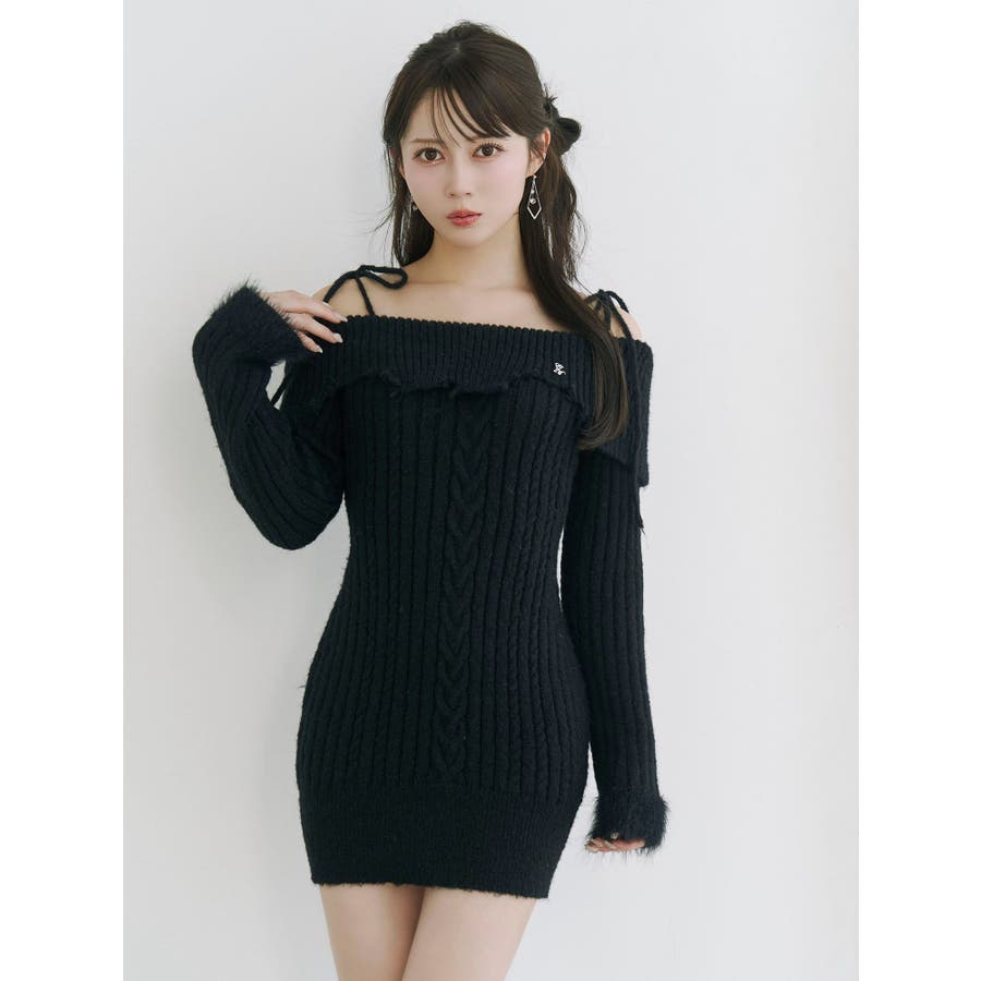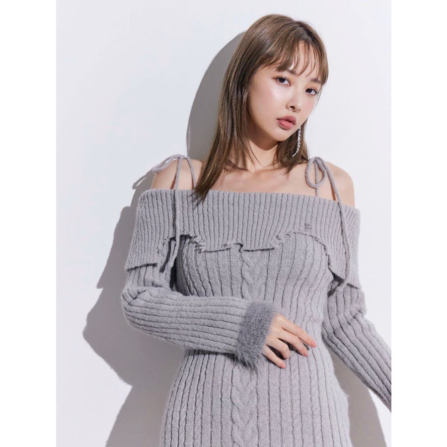 ヘムシャギーオフショルニットワンピース