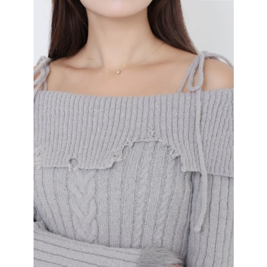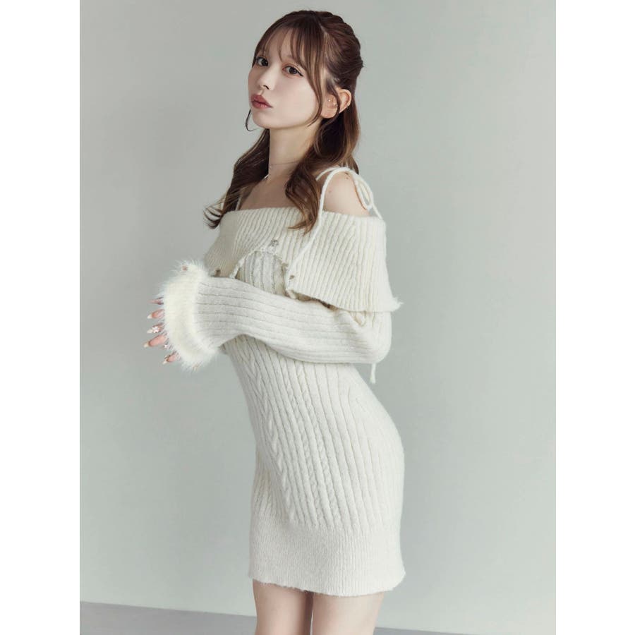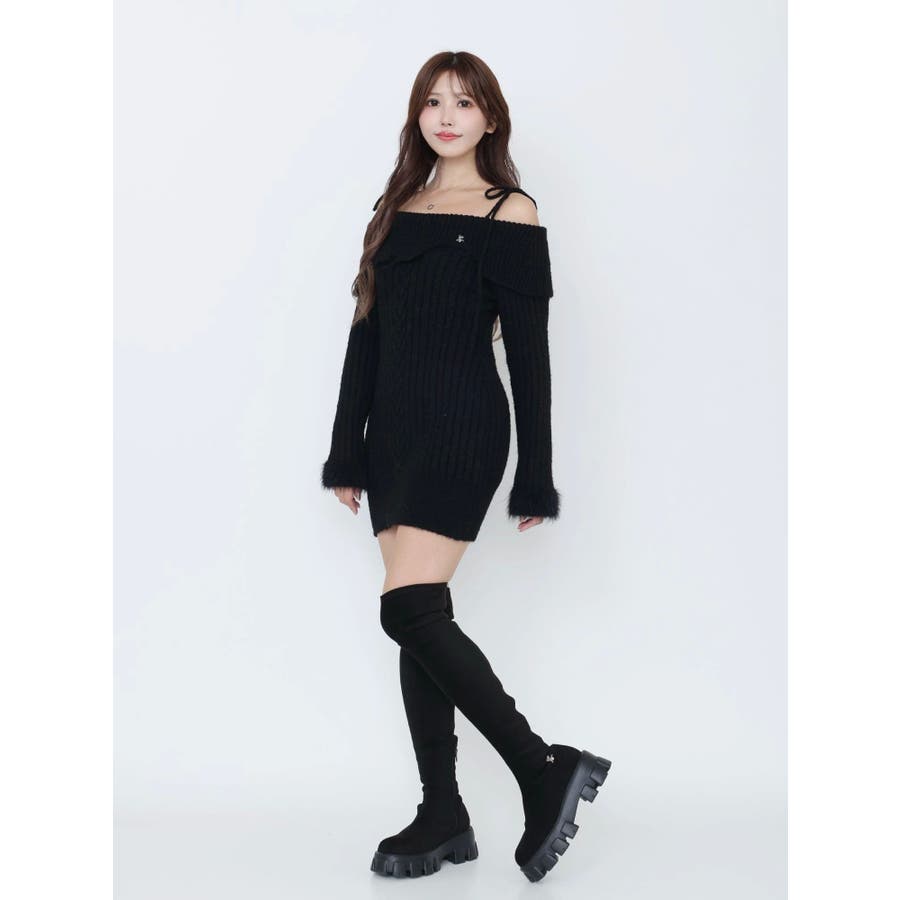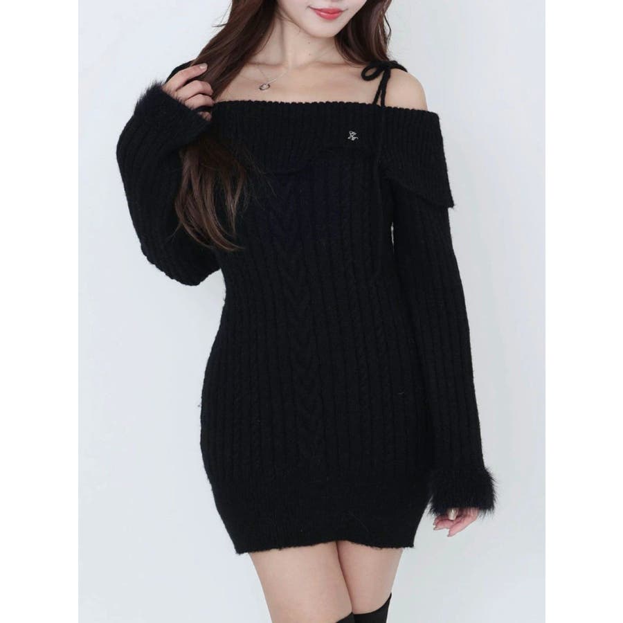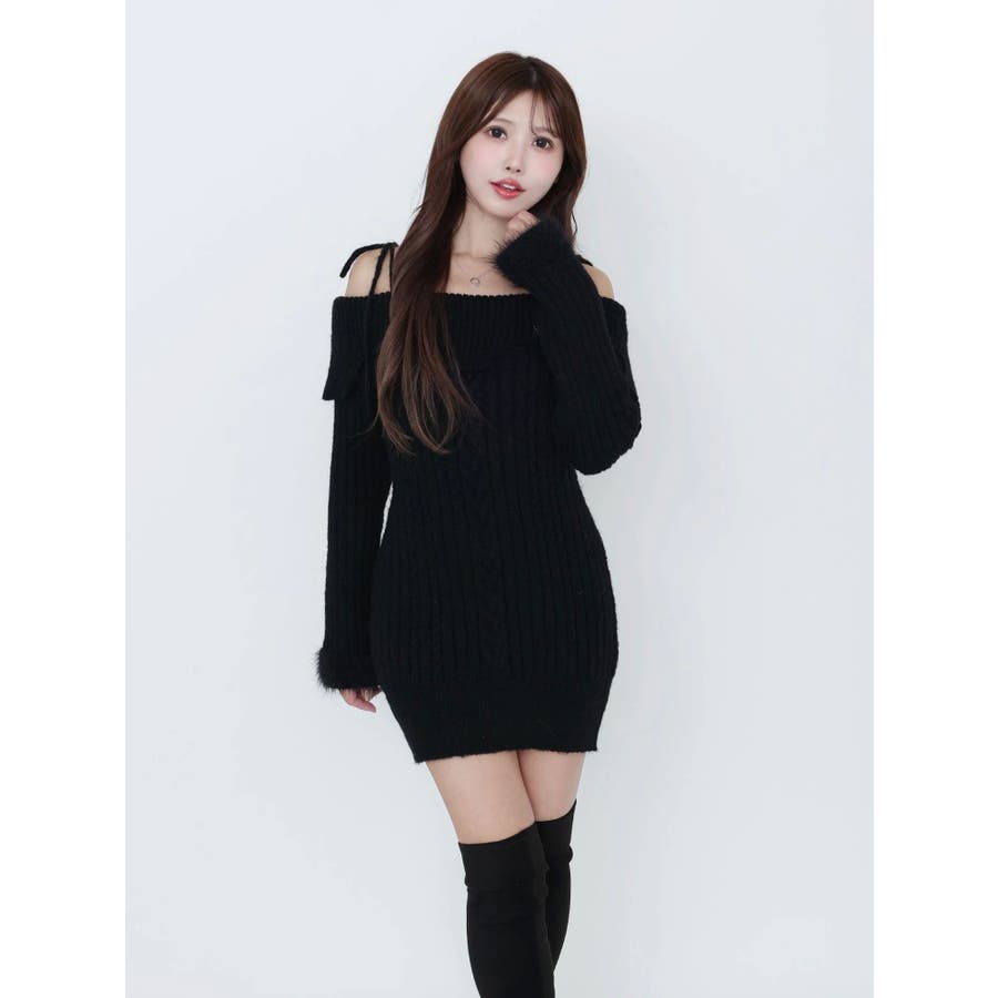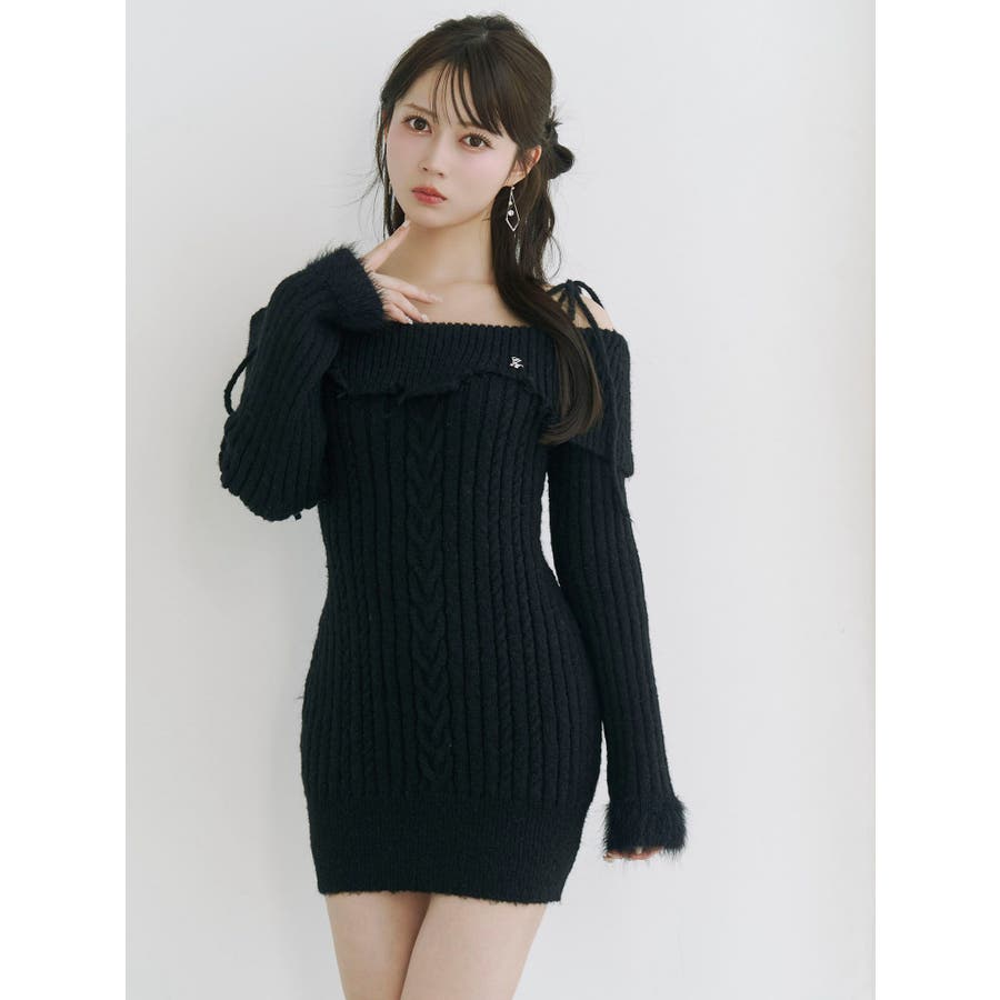 ヘムシャギーオフショルニットワンピース