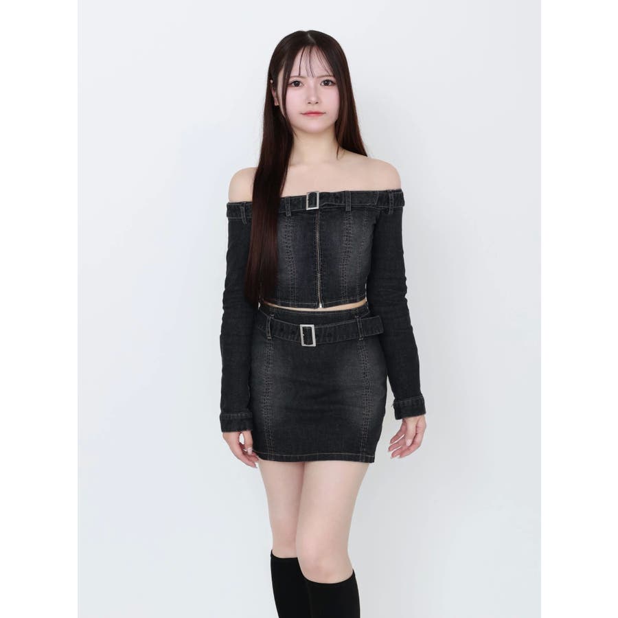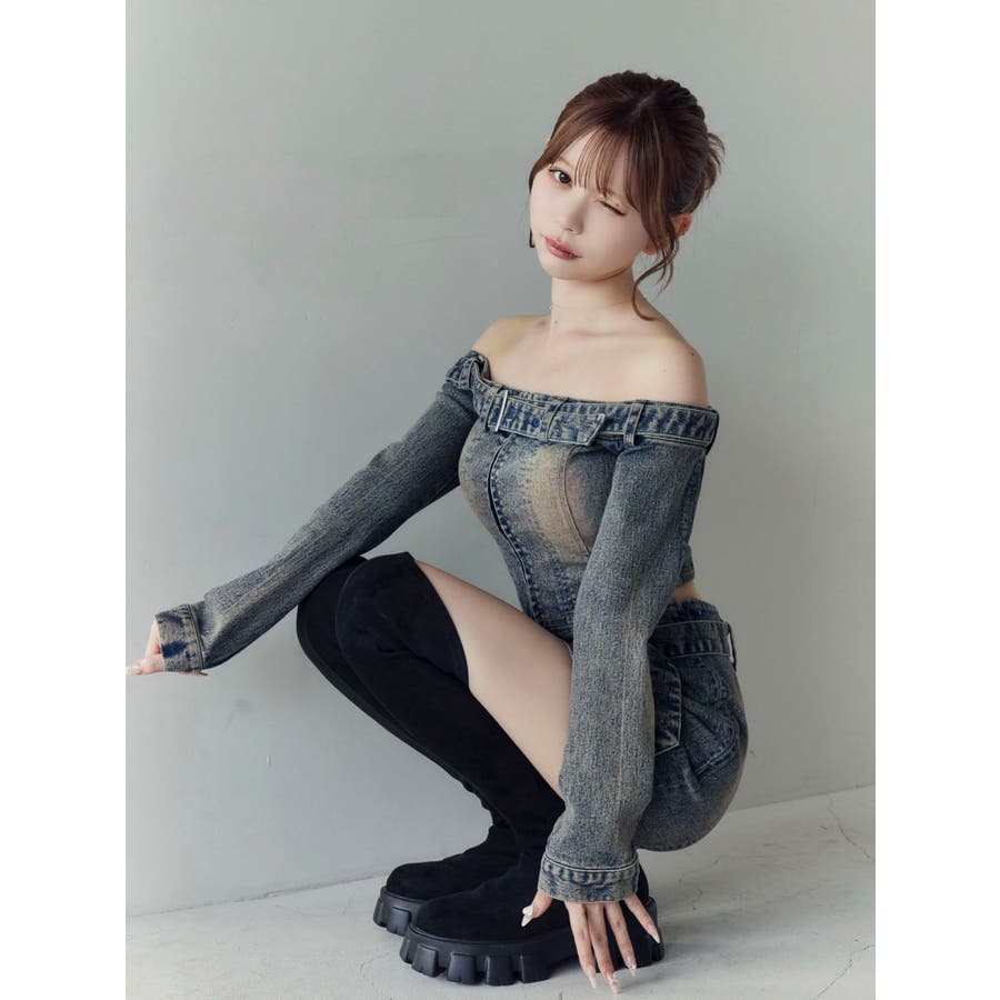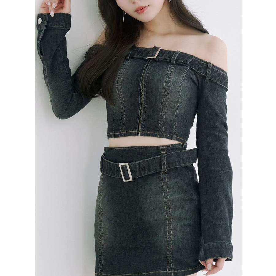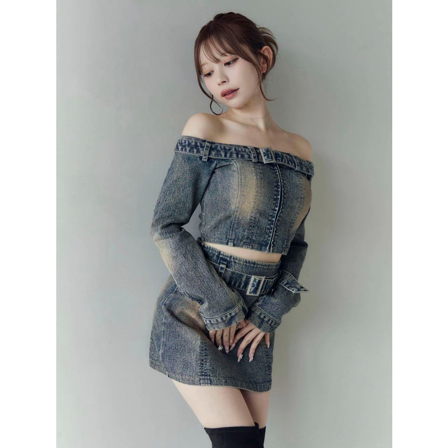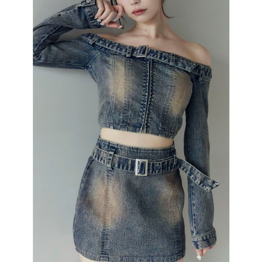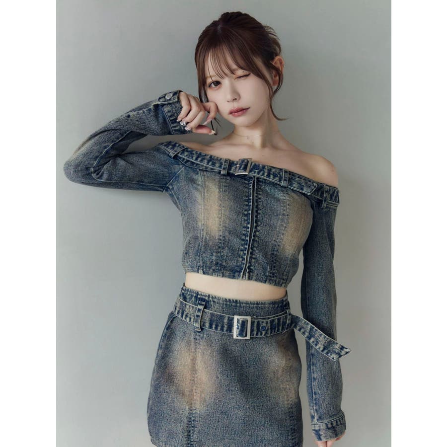 ベルトオフショルデニムTOP