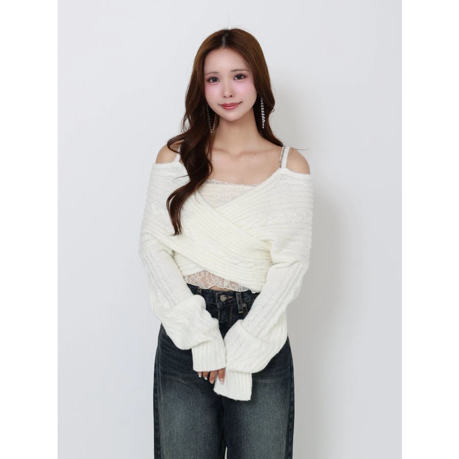 BACKリボンカシュクールニットTOP