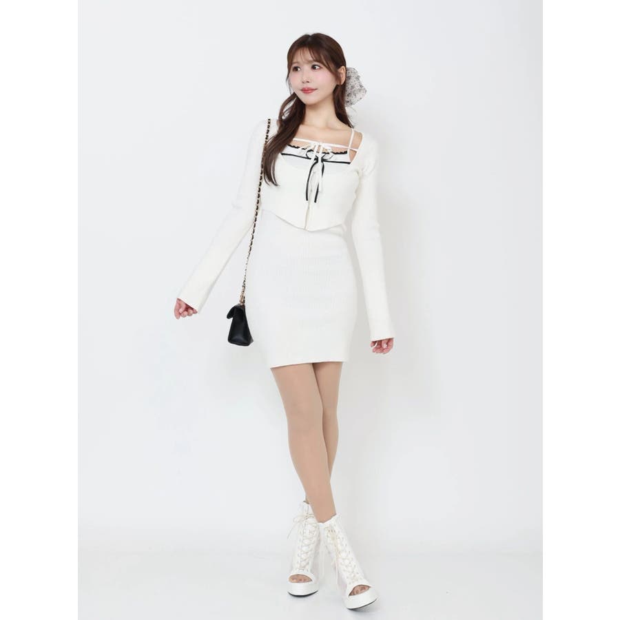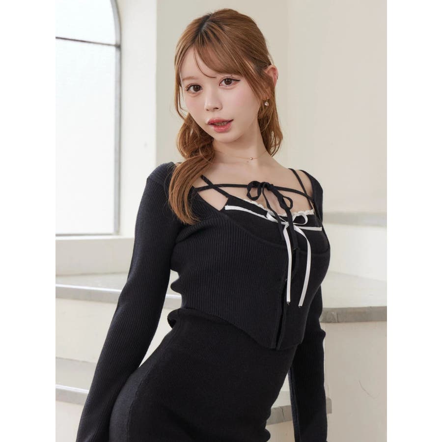 | 素材 | 本体:ナイロン43% レーヨン36% ポリエステル21% ワンピース 本体:ナイロン43% レーヨン36% ポリエステル21% レース:綿100% リボン:ポリエステル100% |