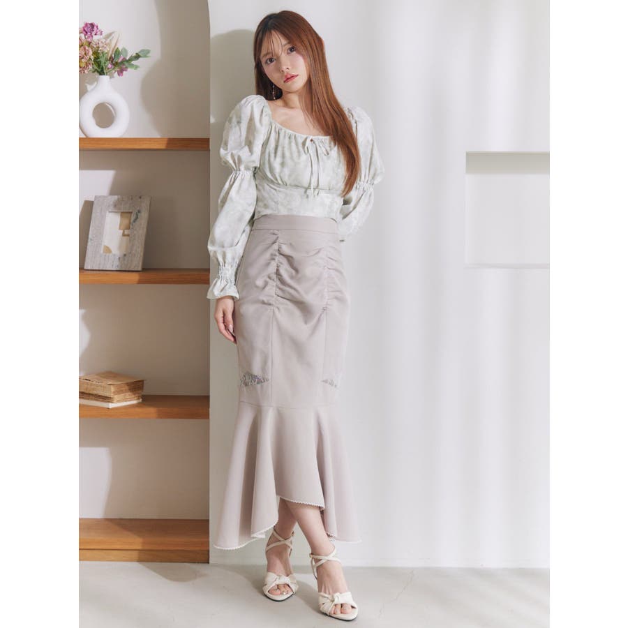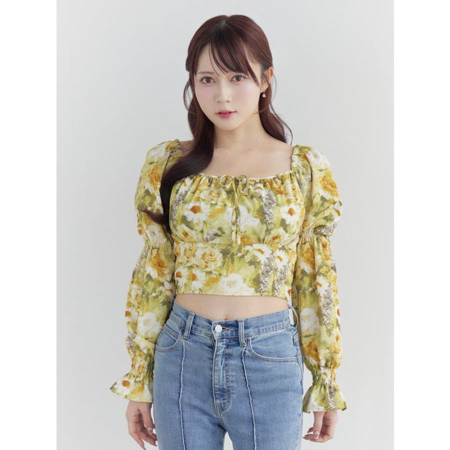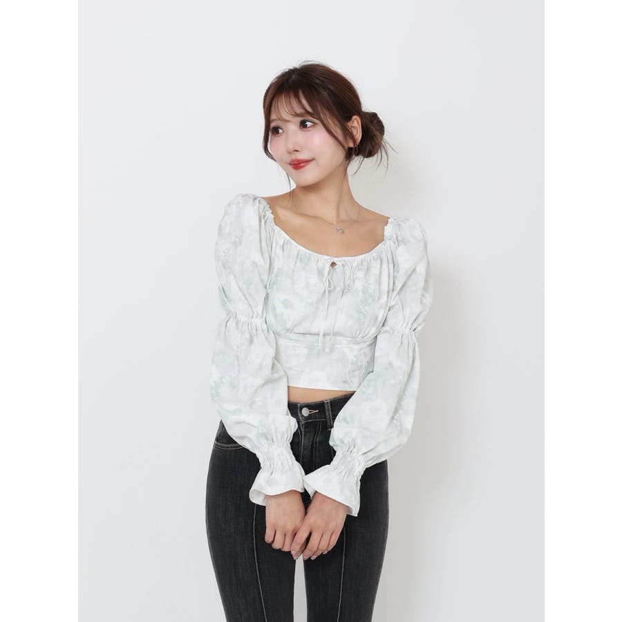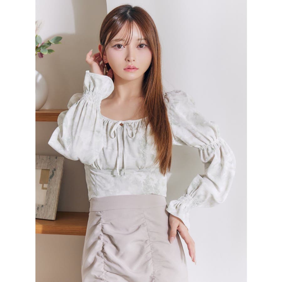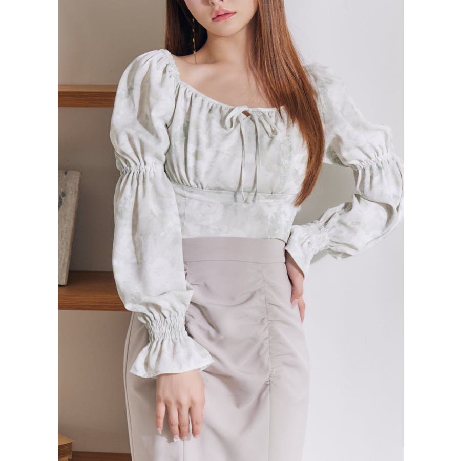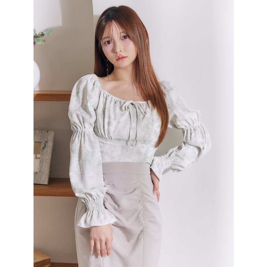 スクエアネックシャーリングブラウス