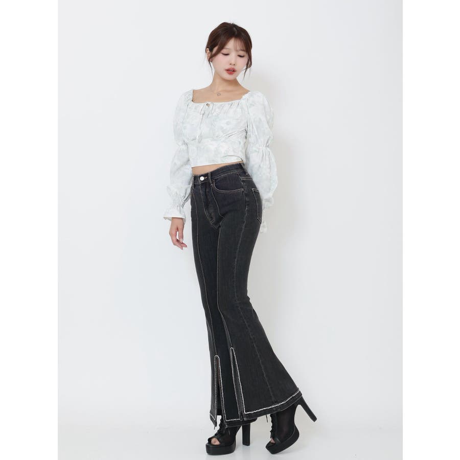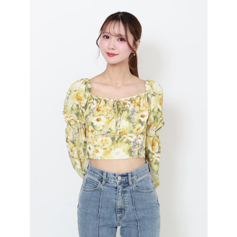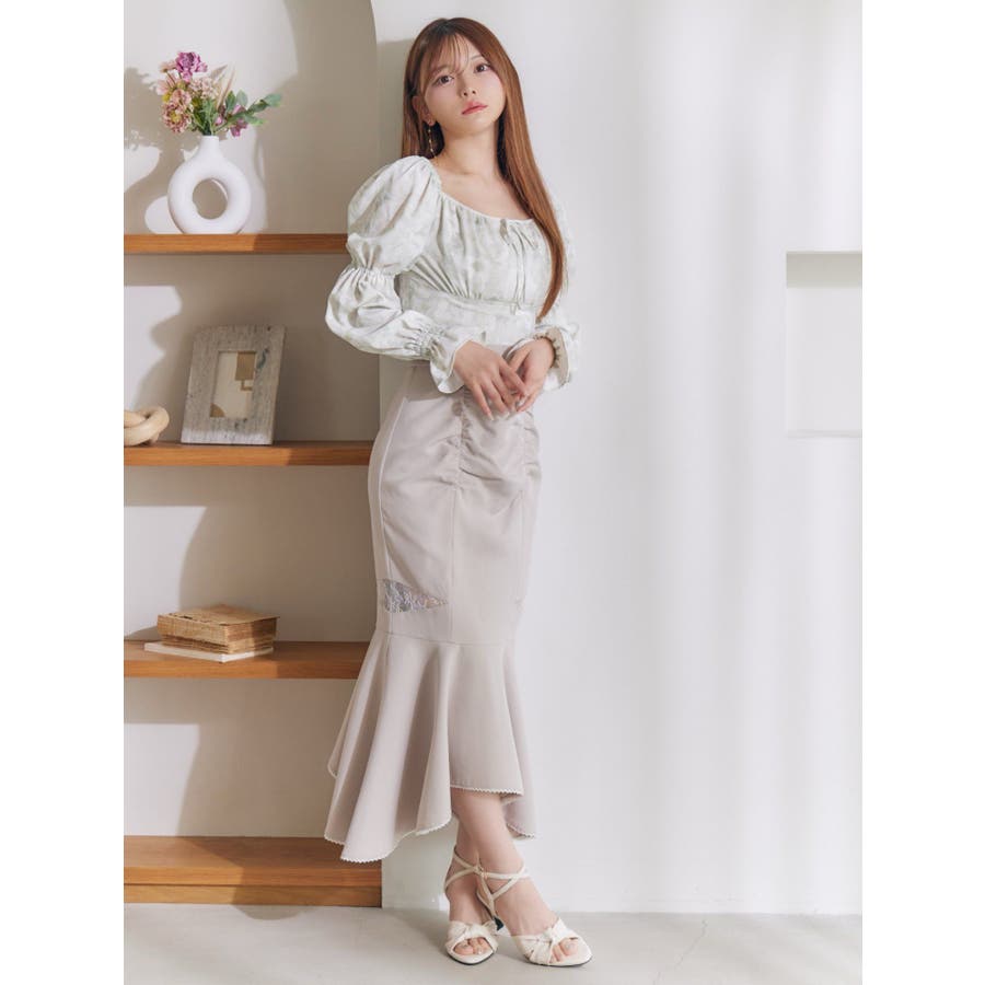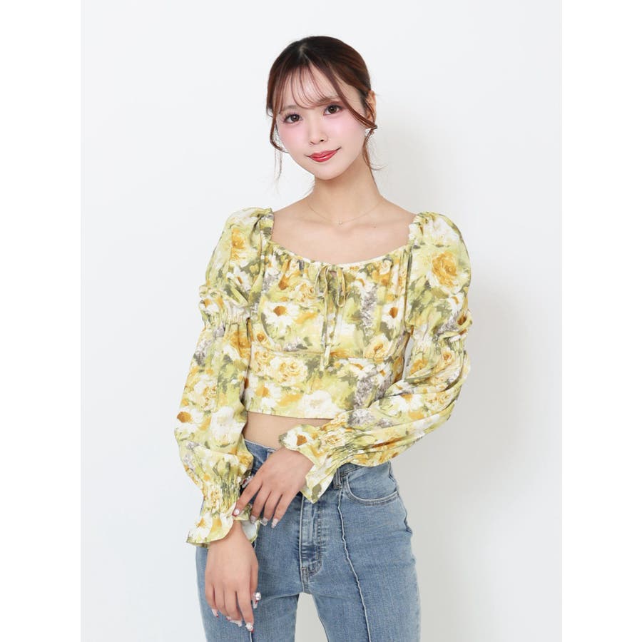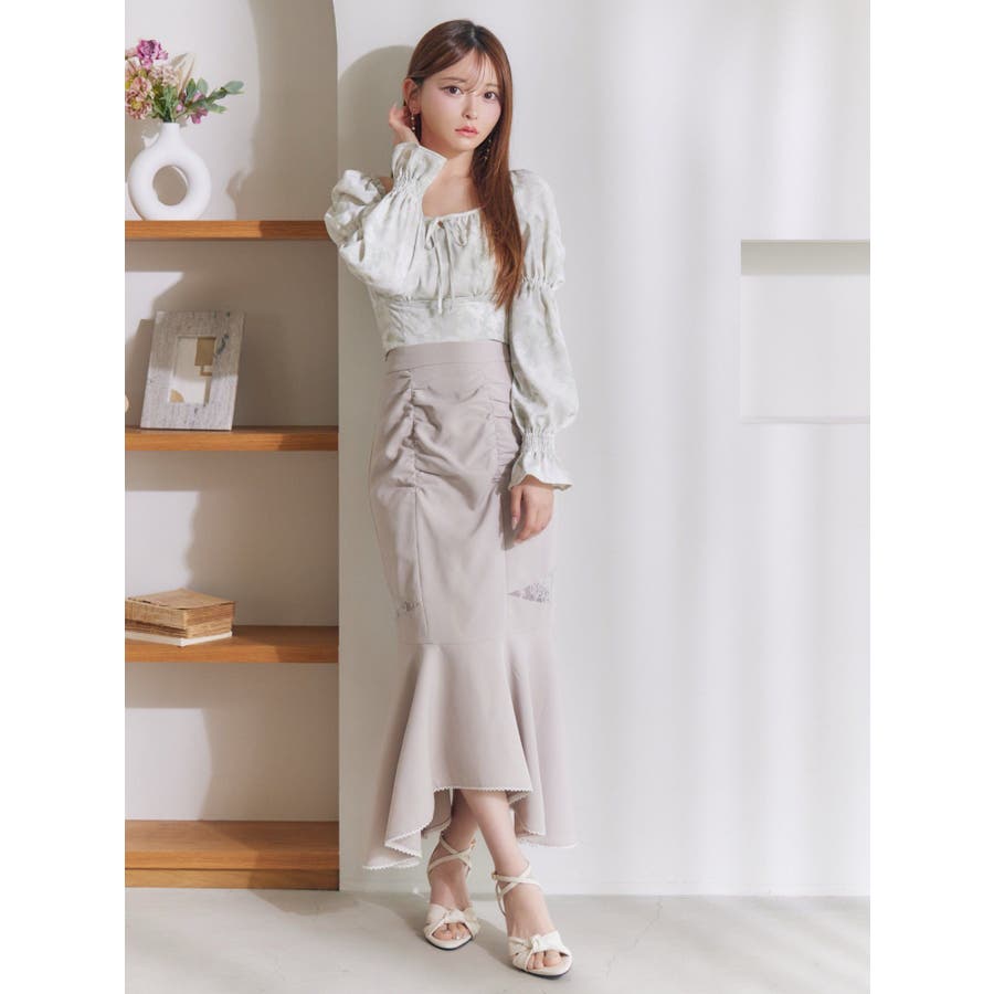 スクエアネックシャーリングブラウス